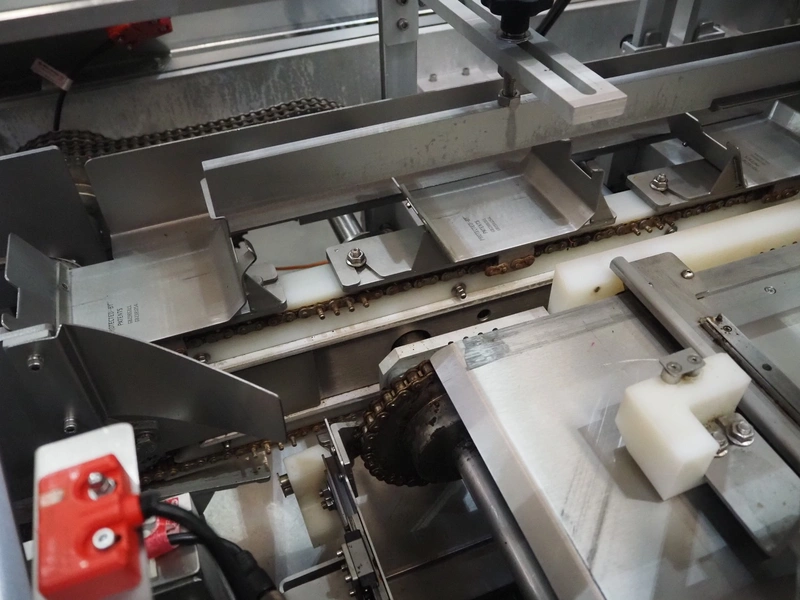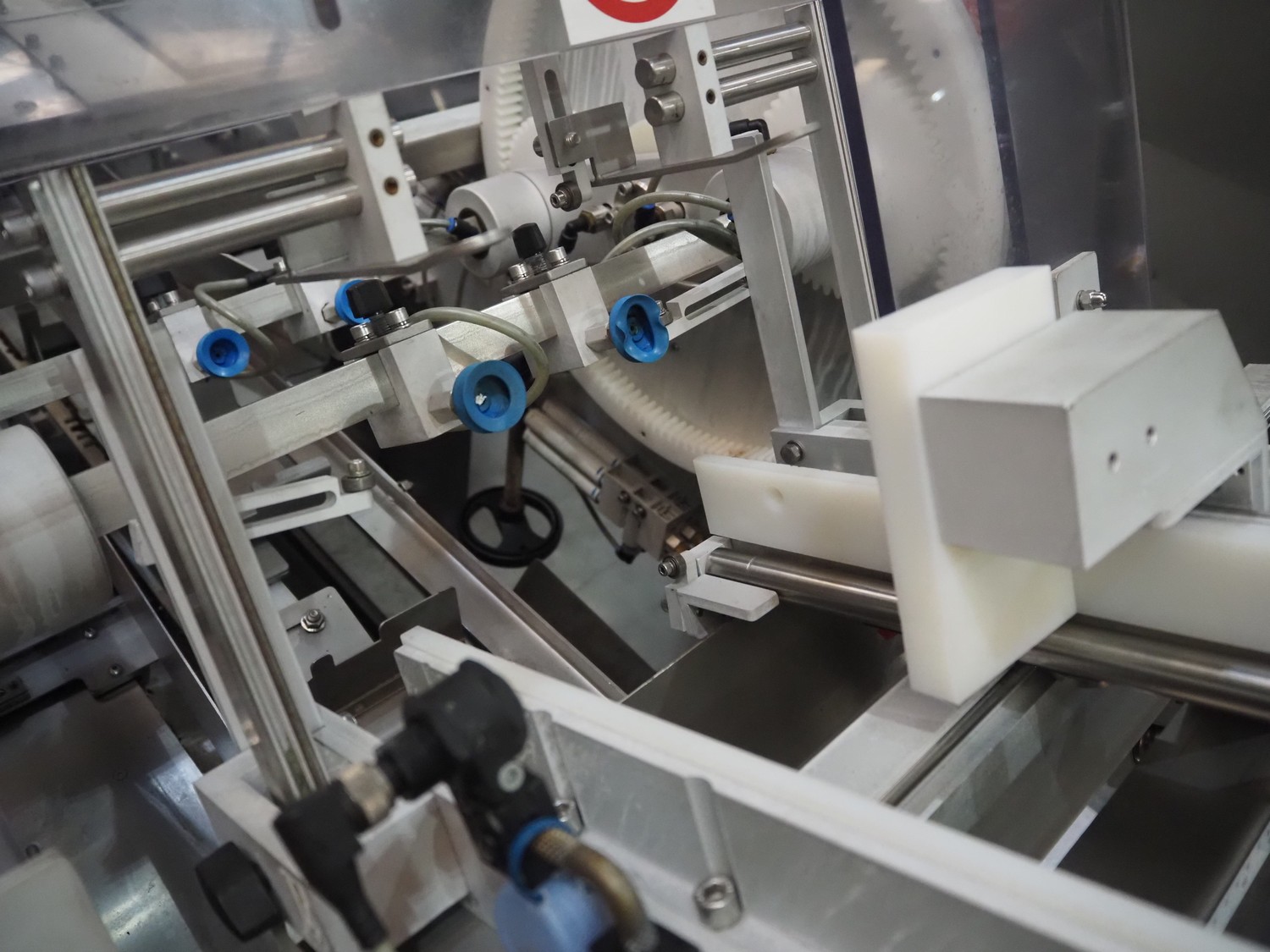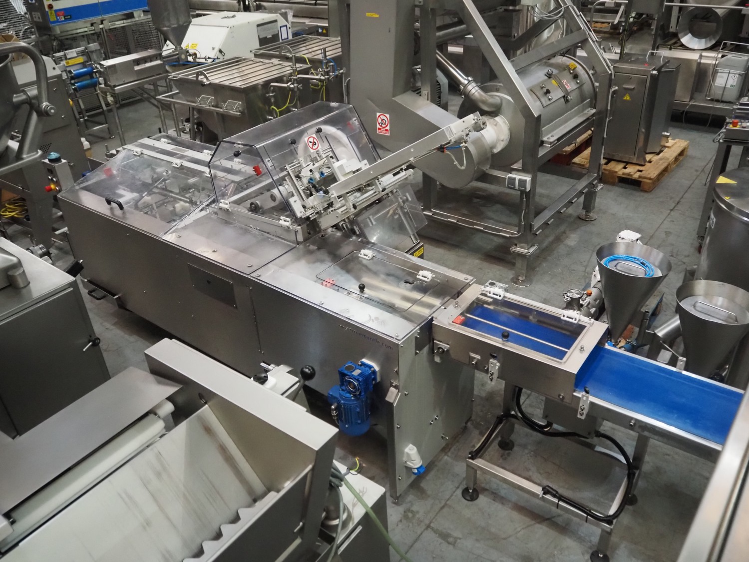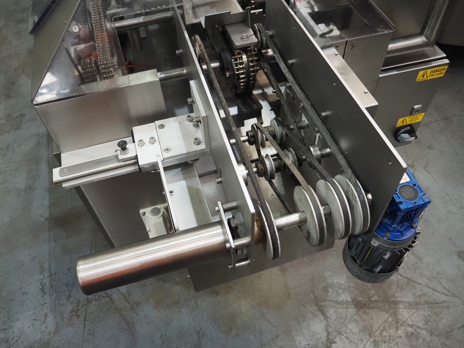 Freemantle sleever, model: S23, serial number: 13-745, year of construction: 2013, 240 V, 1 Ph, maximum box dimensions: 150 mm x 130 mm x 80 mm, plastic belt, belt width: 300 mm, total dimensions: 4700 mm x 1350 mm x 1650 mm.