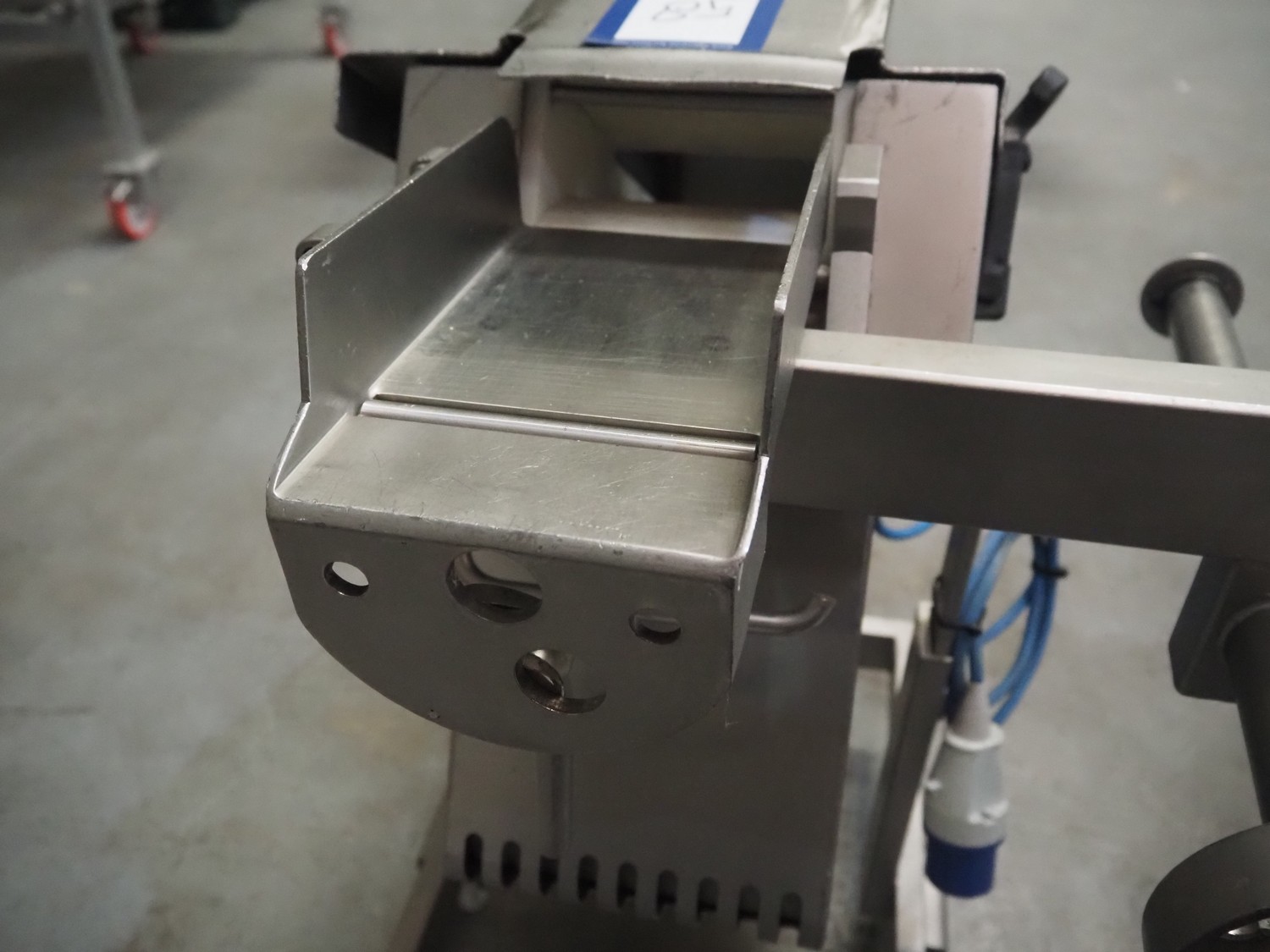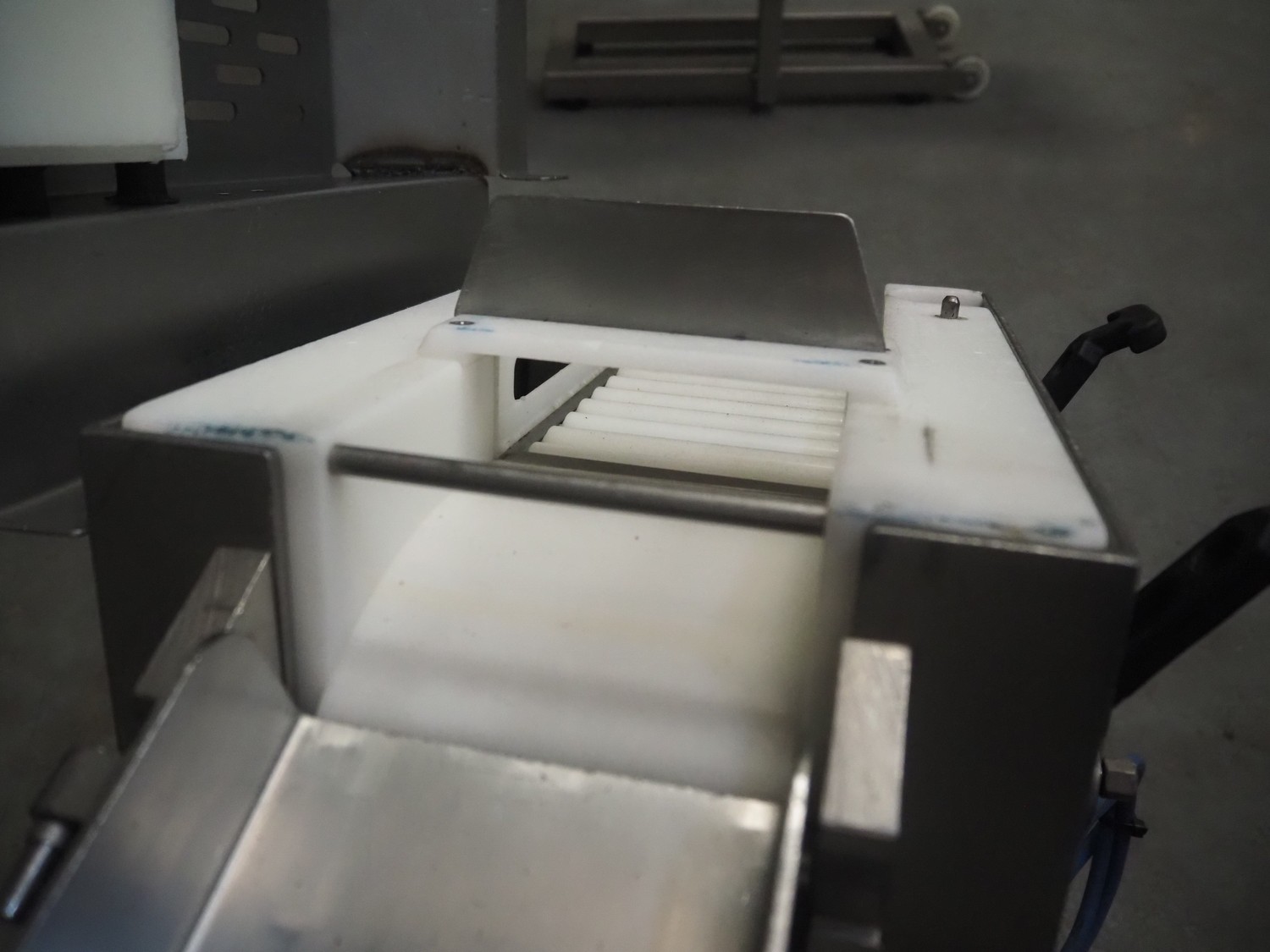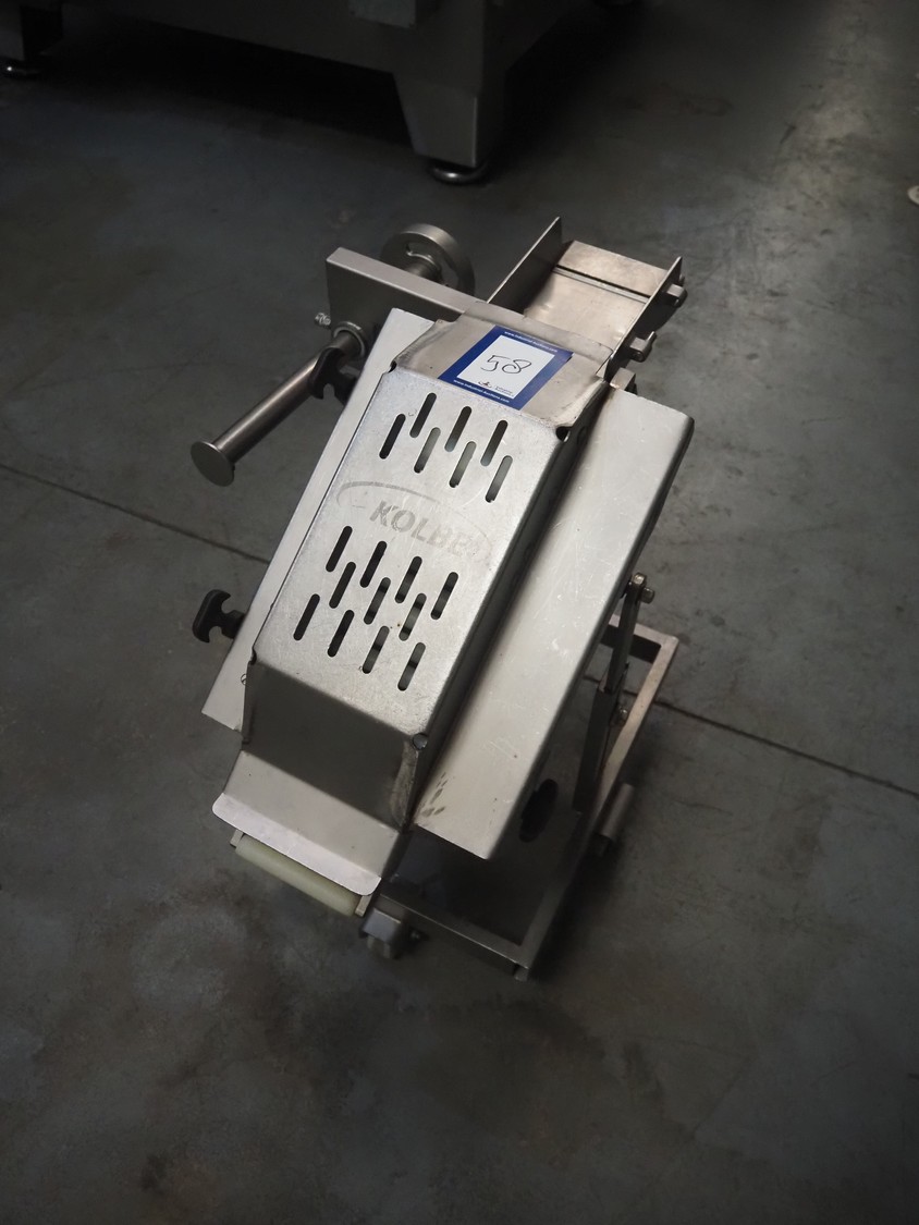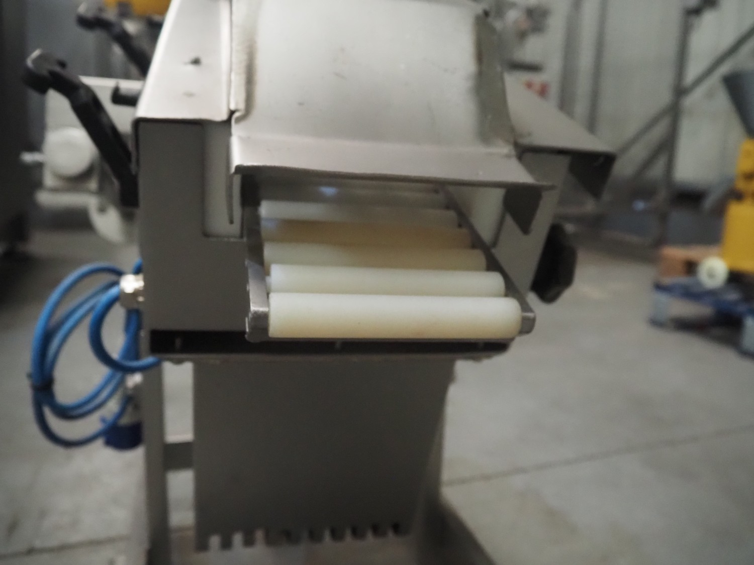 Kolbe mobile portioning machine, clearance: 125 mm x 40 mm, plastic rollers, roller width: 120 mm, total dimensions: 700 mm x 500 mm x 730 mm.