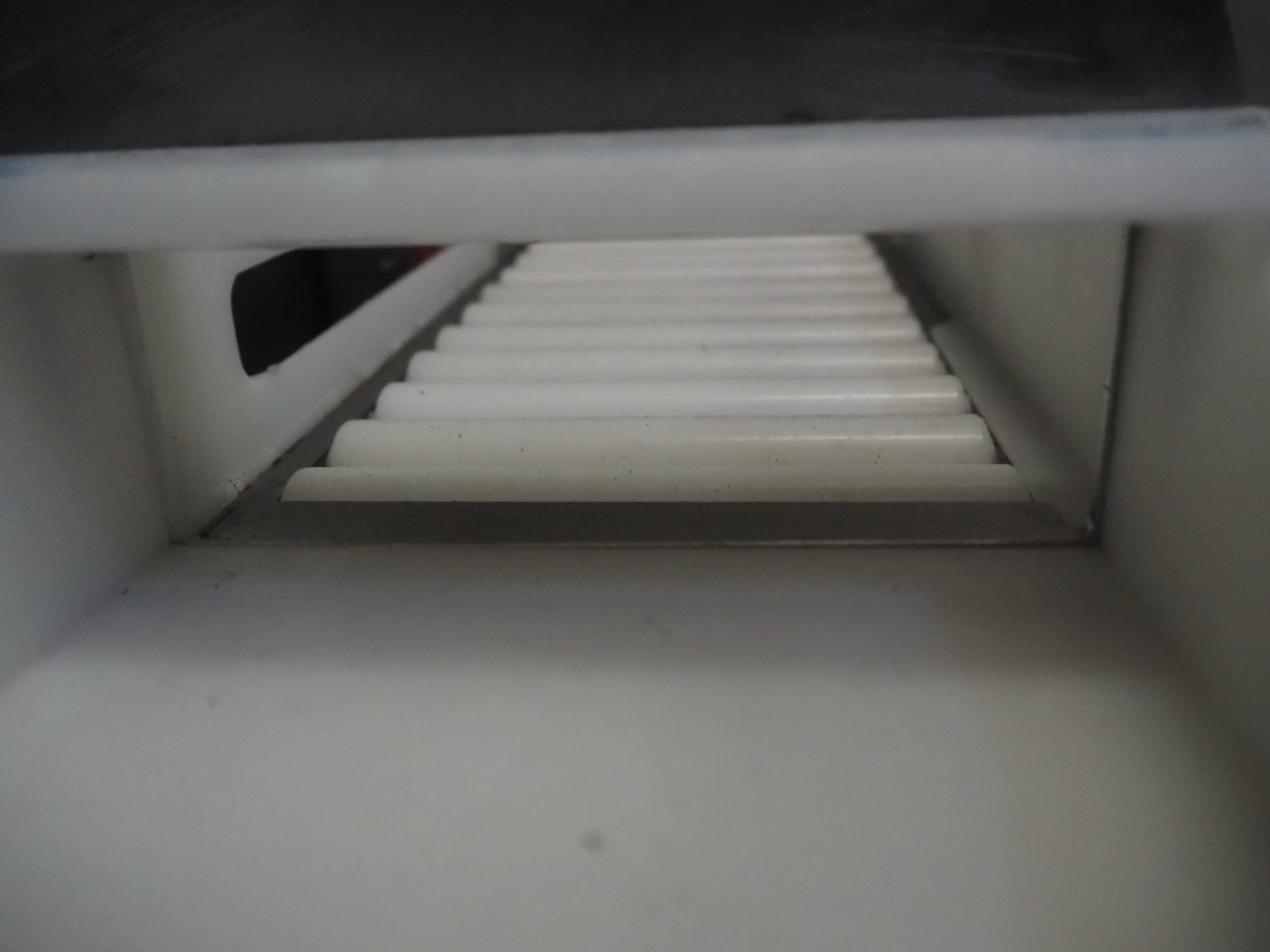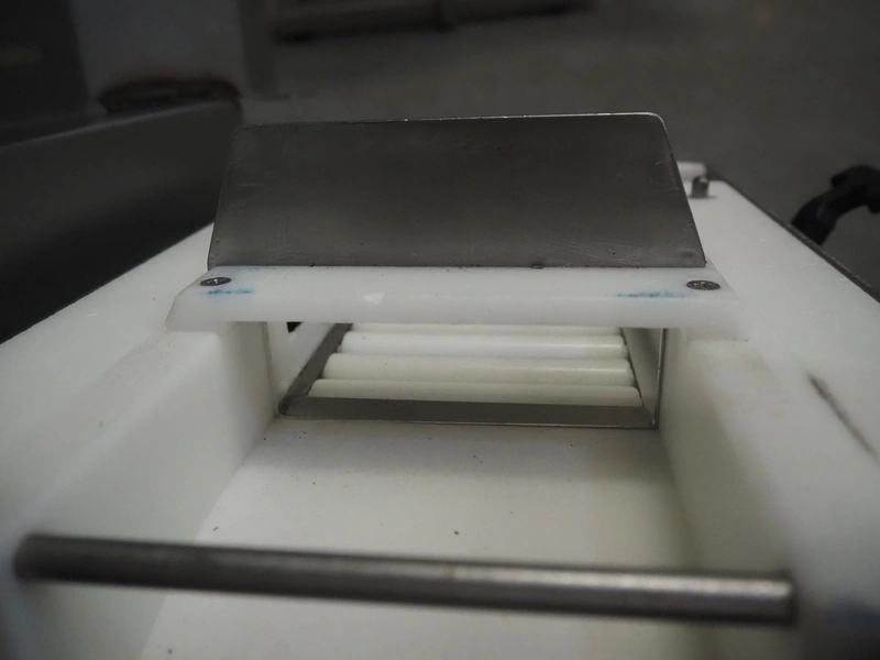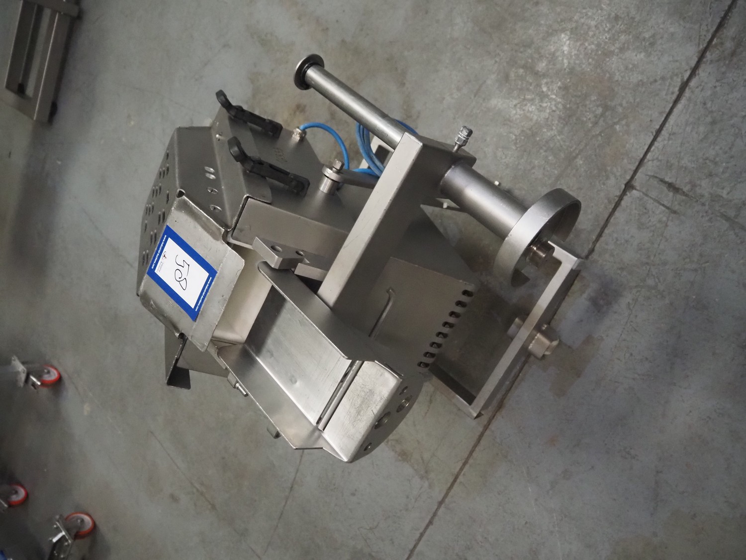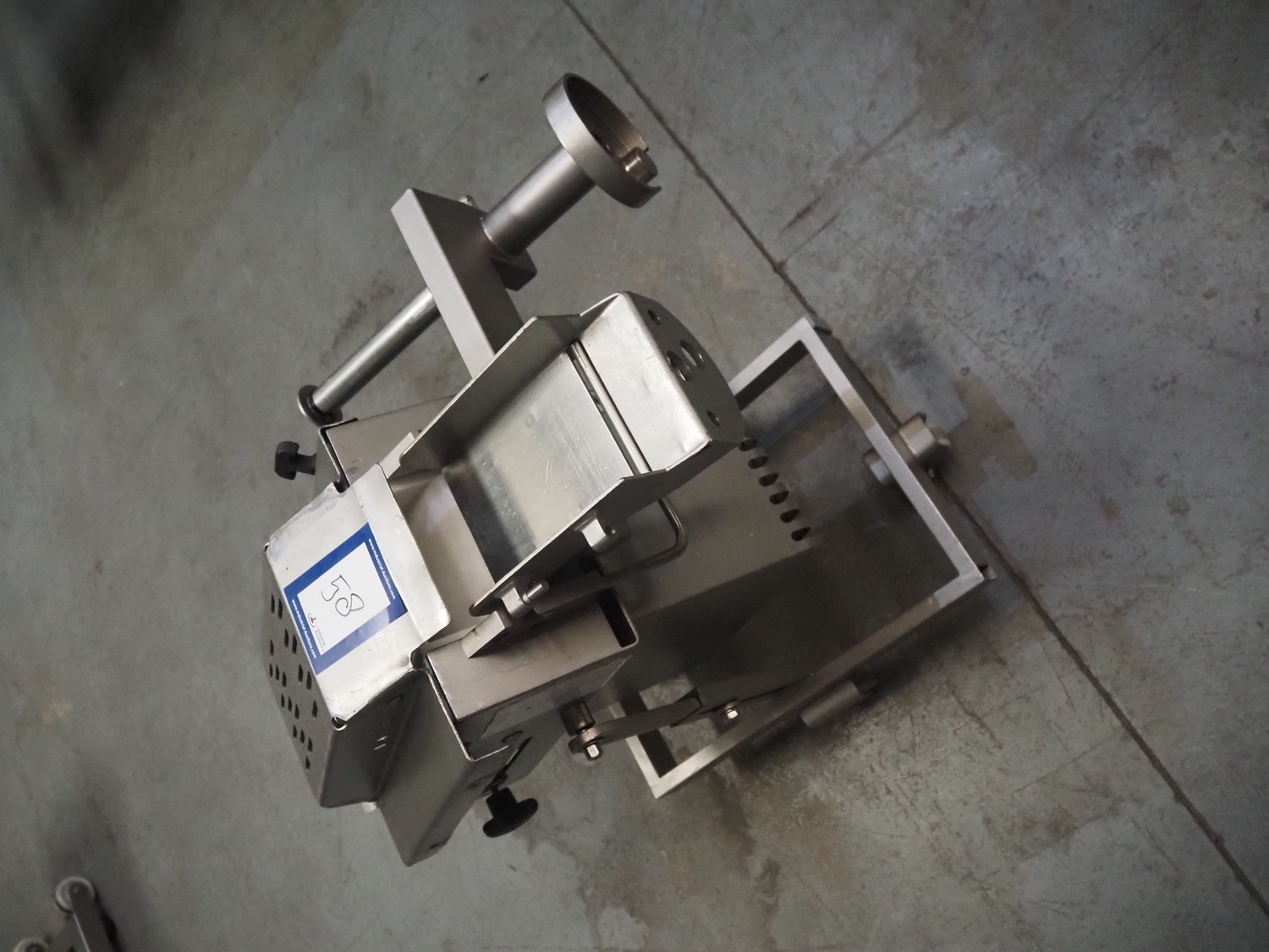 Kolbe mobile portioning machine, clearance: 125 mm x 40 mm, plastic rollers, roller width: 120 mm, total dimensions: 700 mm x 500 mm x 730 mm.