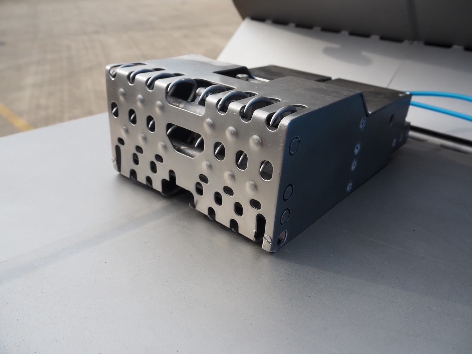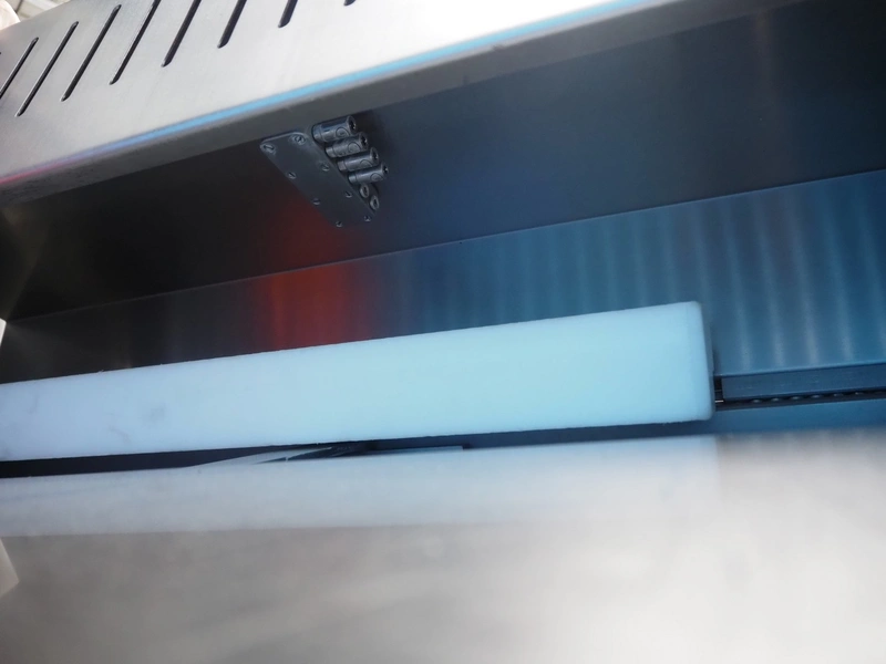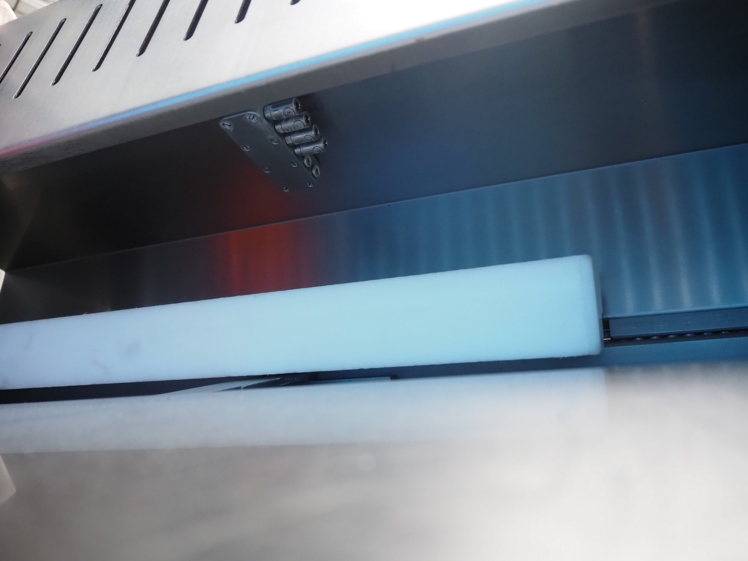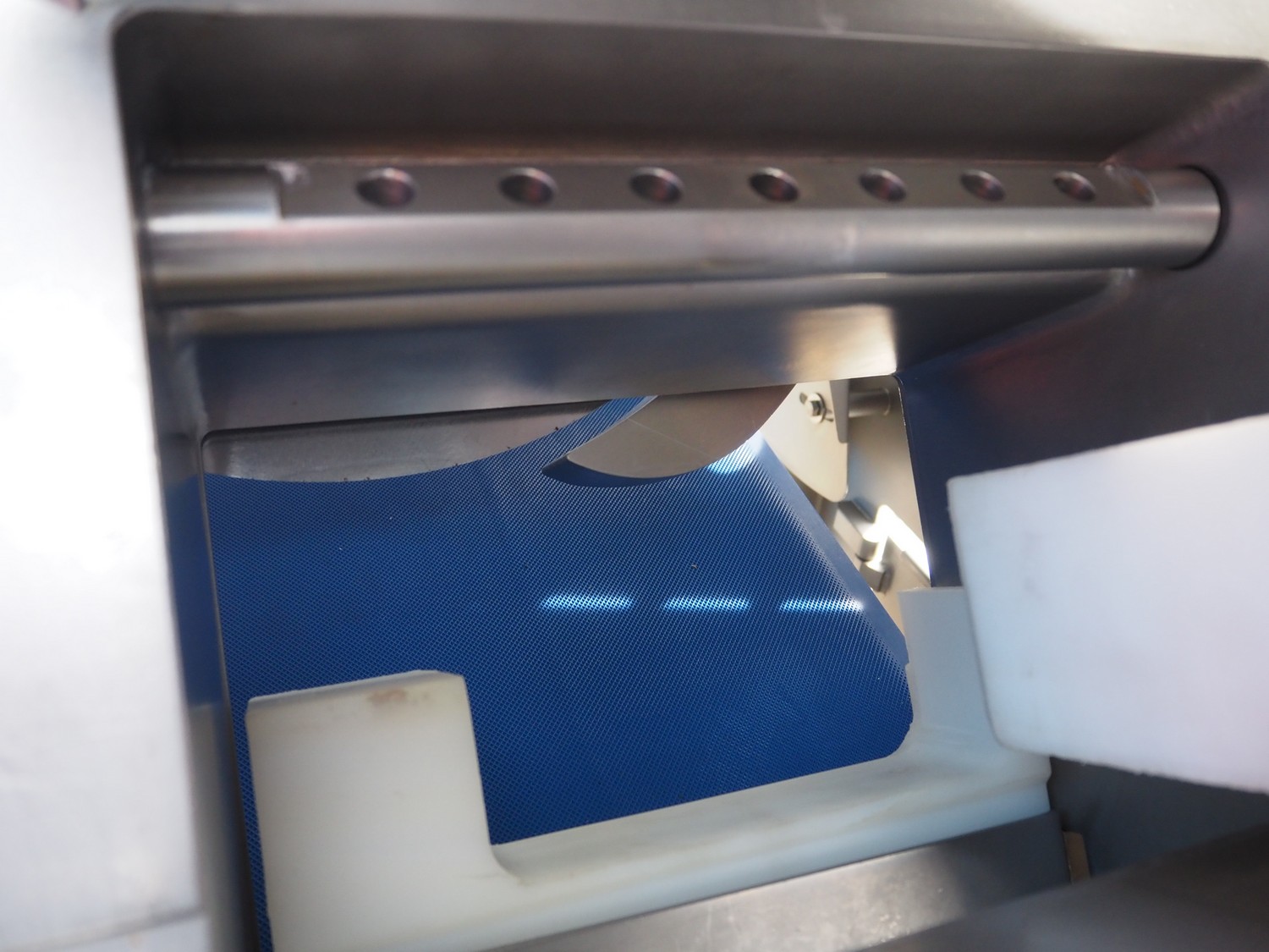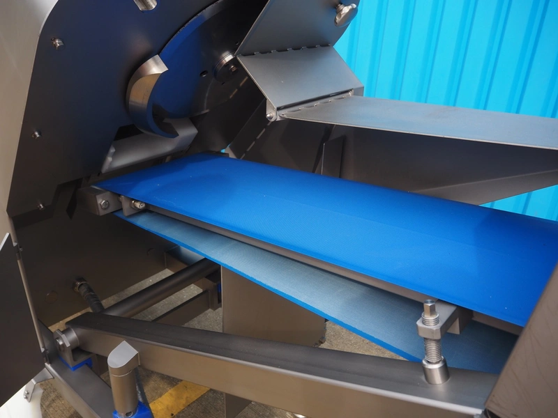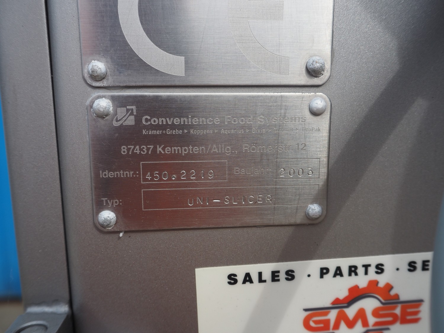 CFS slicer, type: UNI-SLICER, year of construction: 2003, plastic belt, belt width: 350 mm, total dimensions: 4000 mm x 900 mm x 2200 mm.