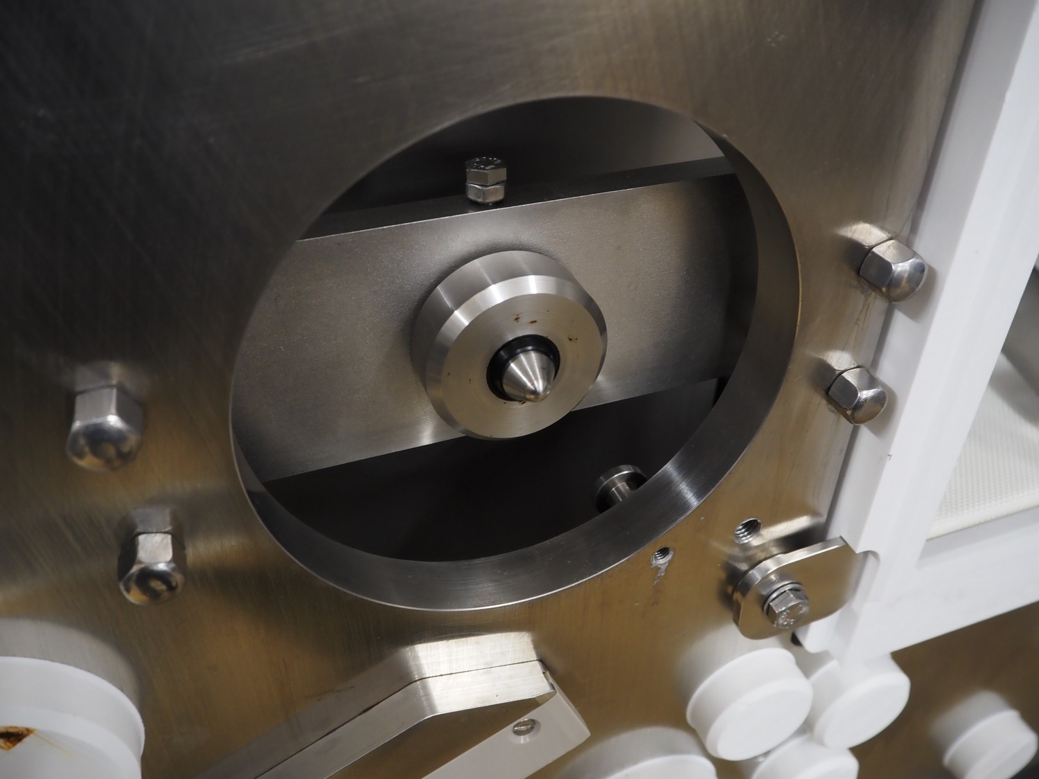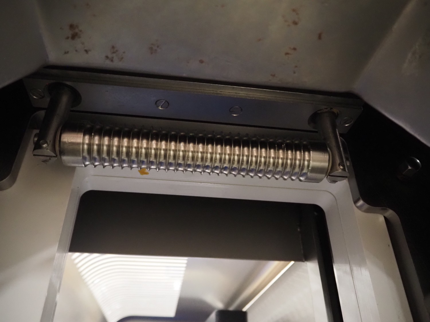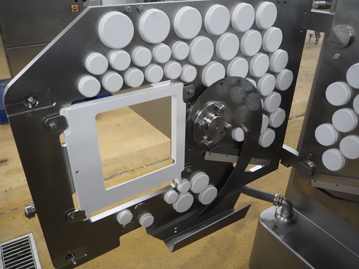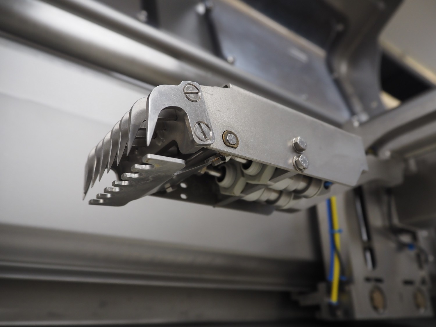 Treif Maschinenbau GmbH slicer and portion cutter, model: FALCON CONTI, machine number: 461007.162571.113261, year of construction: November 2013, 380-480 V, 3 Ph, 50/60 Hz, 22-18 A, 8.6/11.7 kW, weight: 750 kg, plastic belt, belt width: 220 mm, total dimensions: 4520 mm x 1300 mm x 1850 mm.