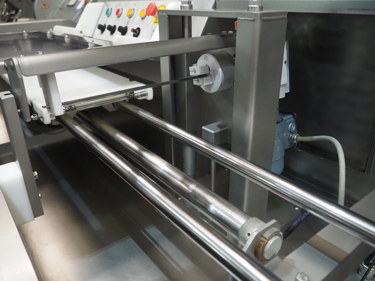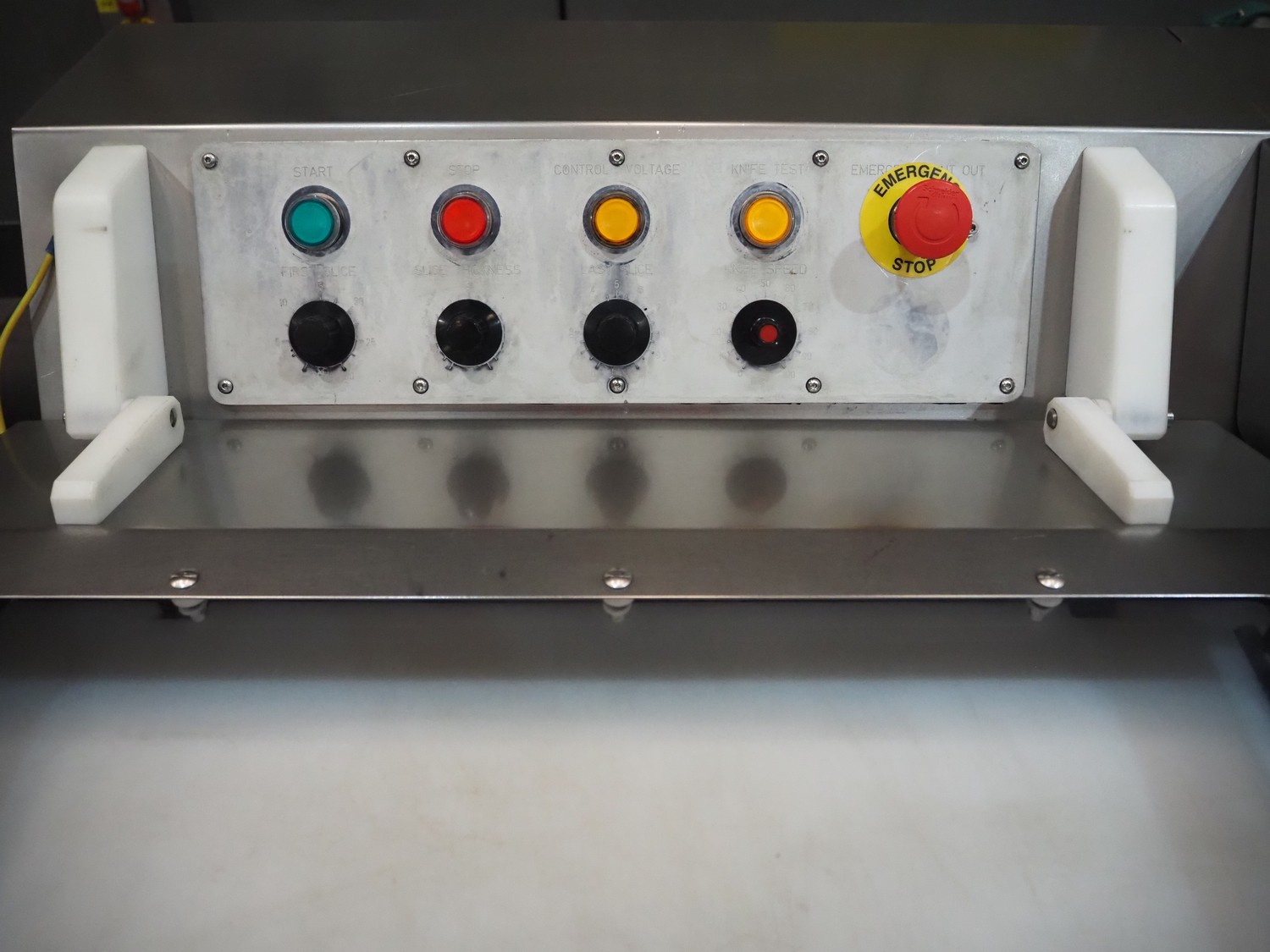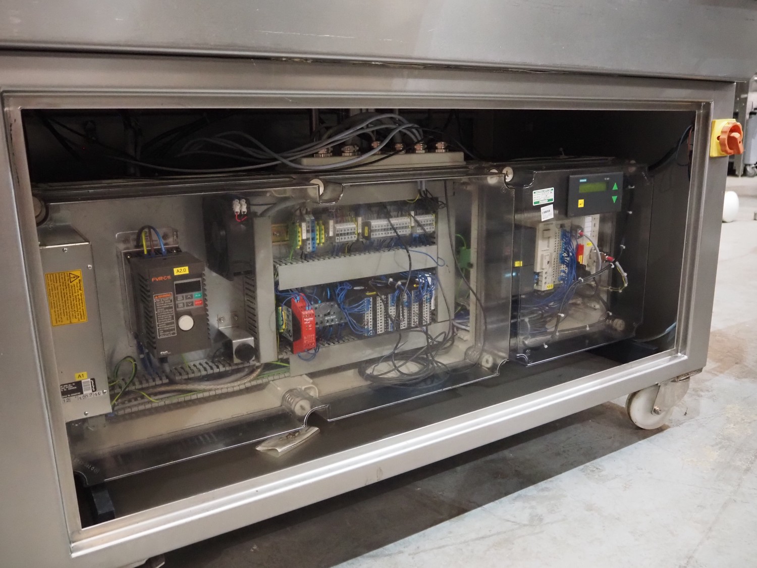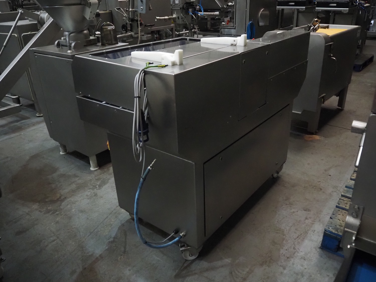 GEBA GmbH & Co. KG salmon slicer, type: HS 240, number: 2400234, year of construction: 2002, 220-240 V, 50/60 Hz, 1.4 kW, weight: 250 kg, working width: 250 mm, total dimensions: 1580 mm x 800 mm x 1250 mm.