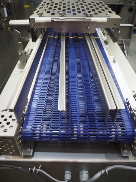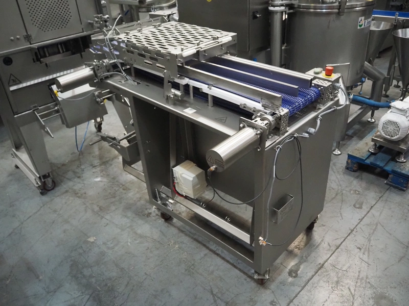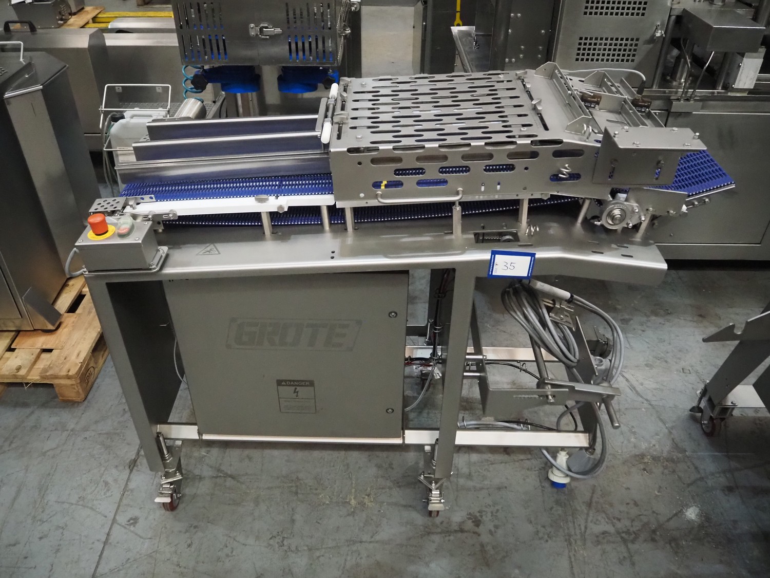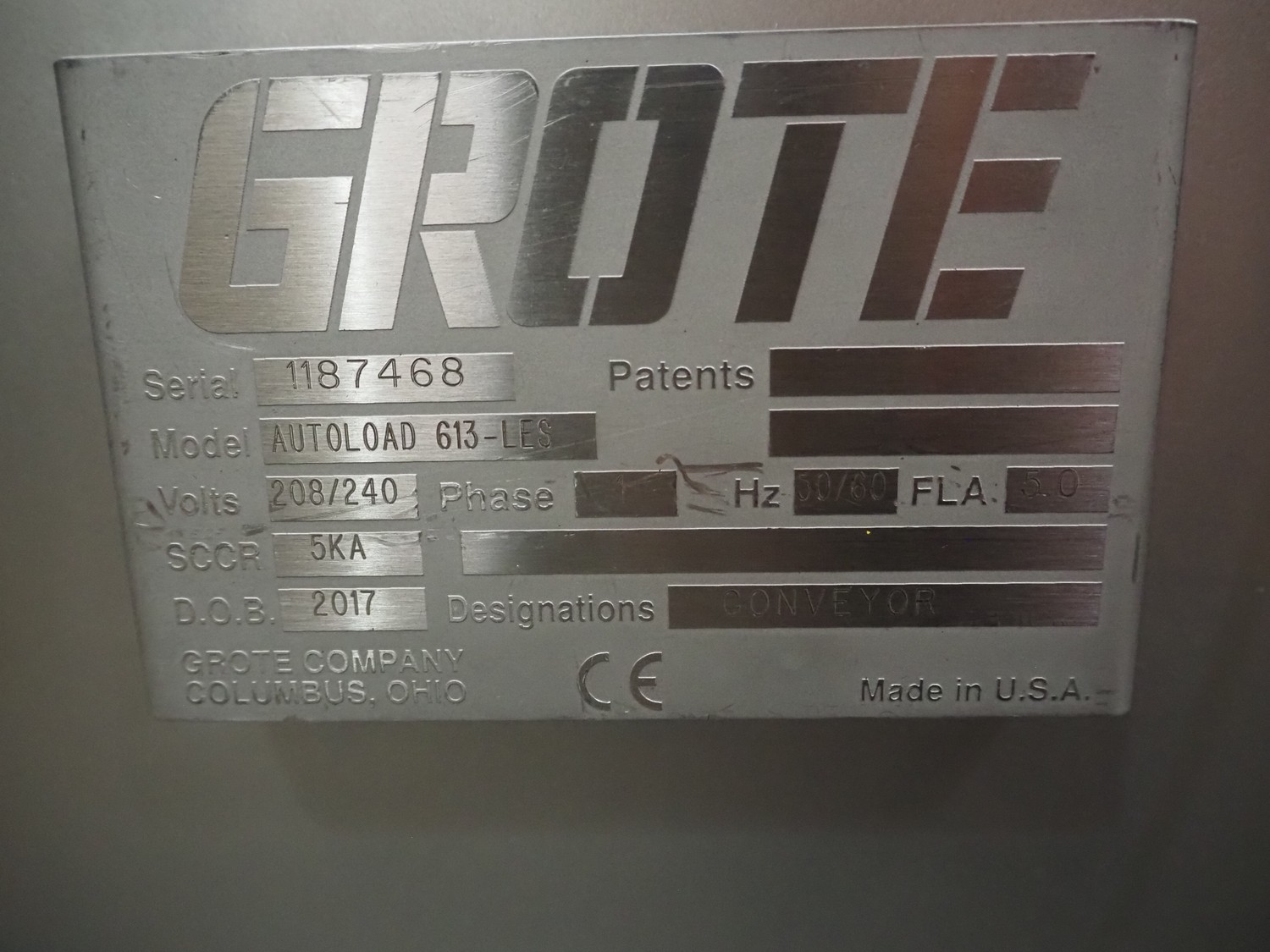 Grote mobile slicer outfeed conveyor, model: AUTOLOAD 613-LES, serial number: 1187468, year of construction: 2017, 208/240 V, 1 Ph, 50/60 Hz, plastic mesh belt, belt width: 300 mm, total dimensions: 1600 mm x 1000 mm x 1270 mm.