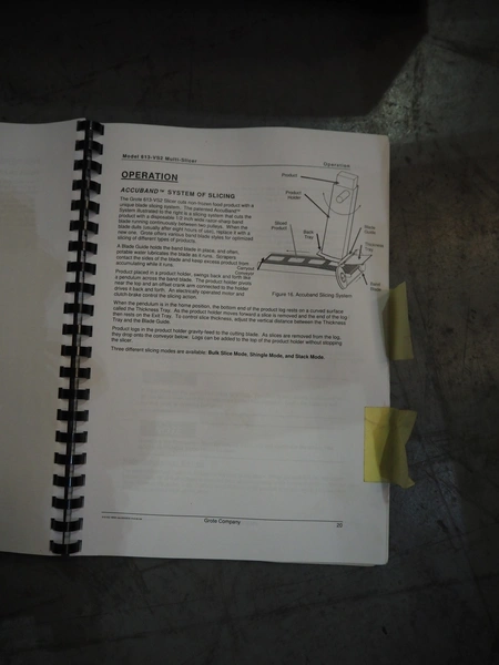 Grote slicer, model: 613-VS2, serial number: 1199547, year of construction: 2018, 208/240 V, 1 Ph, 50/60 Hz, working width: 350 mm, total dimensions: 1050 mm x 850 mm x 1650 mm.