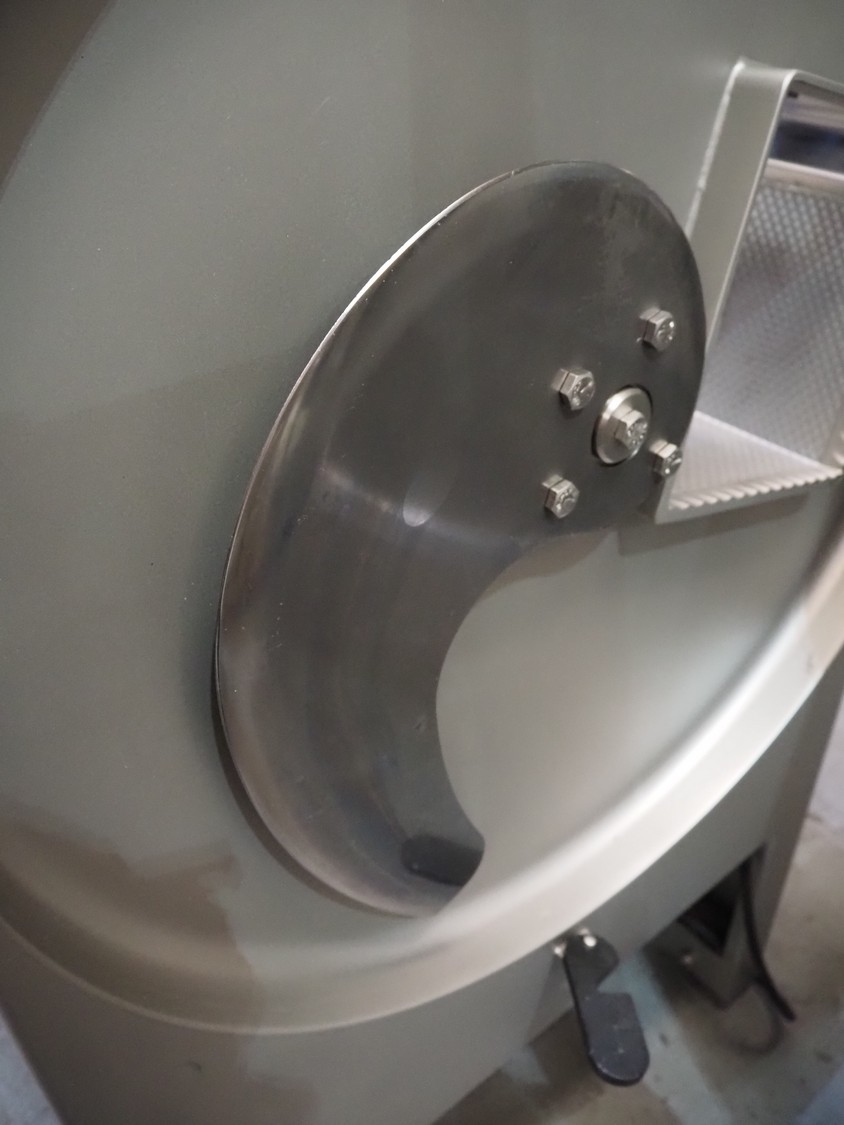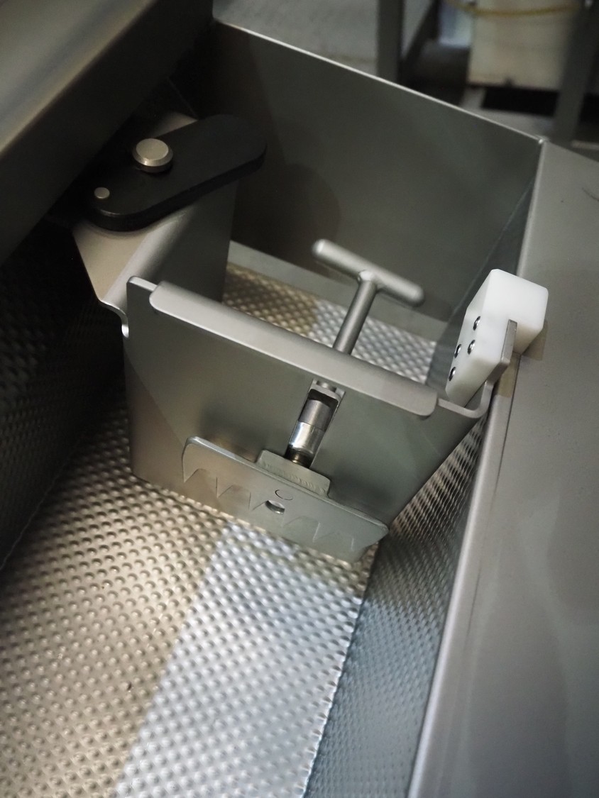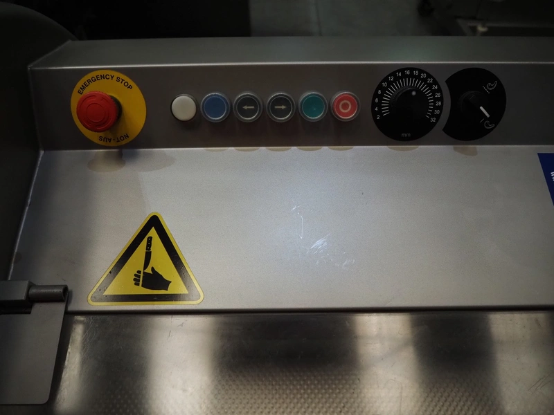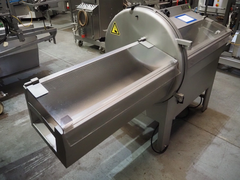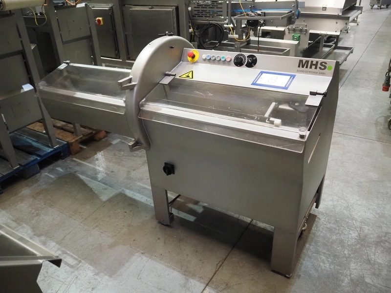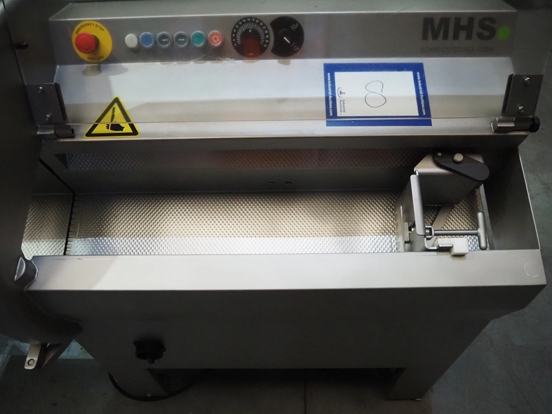 MHS Schneidetechnik slicer, type: PCE 70/21 K, serial number: 041911, year of construction: 2011, 400 V, 6.5 A, 2.6 kW, dimensions chamber: 200 mm x 200 mm, total dimensions: 1850 mm x 800 mm x 1250 mm.