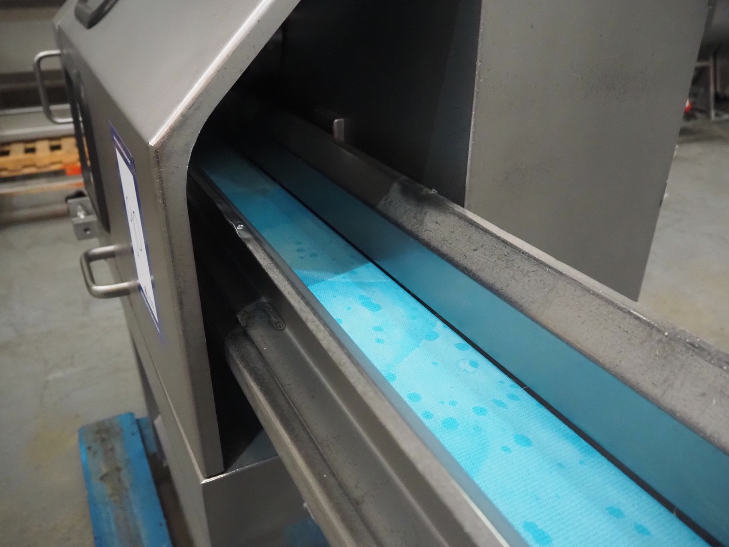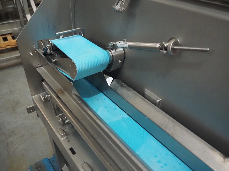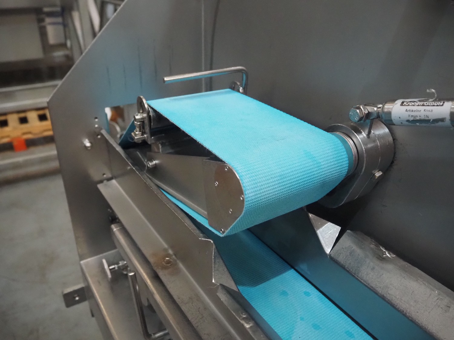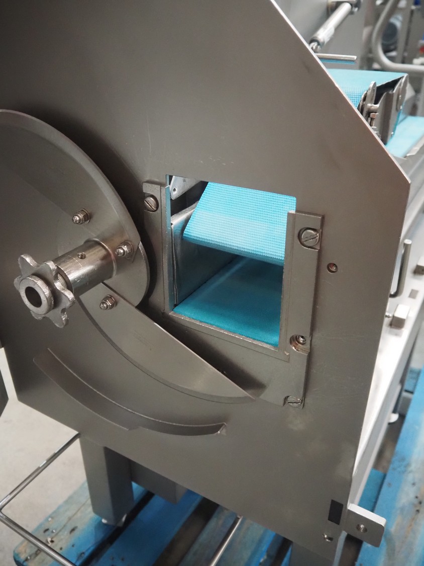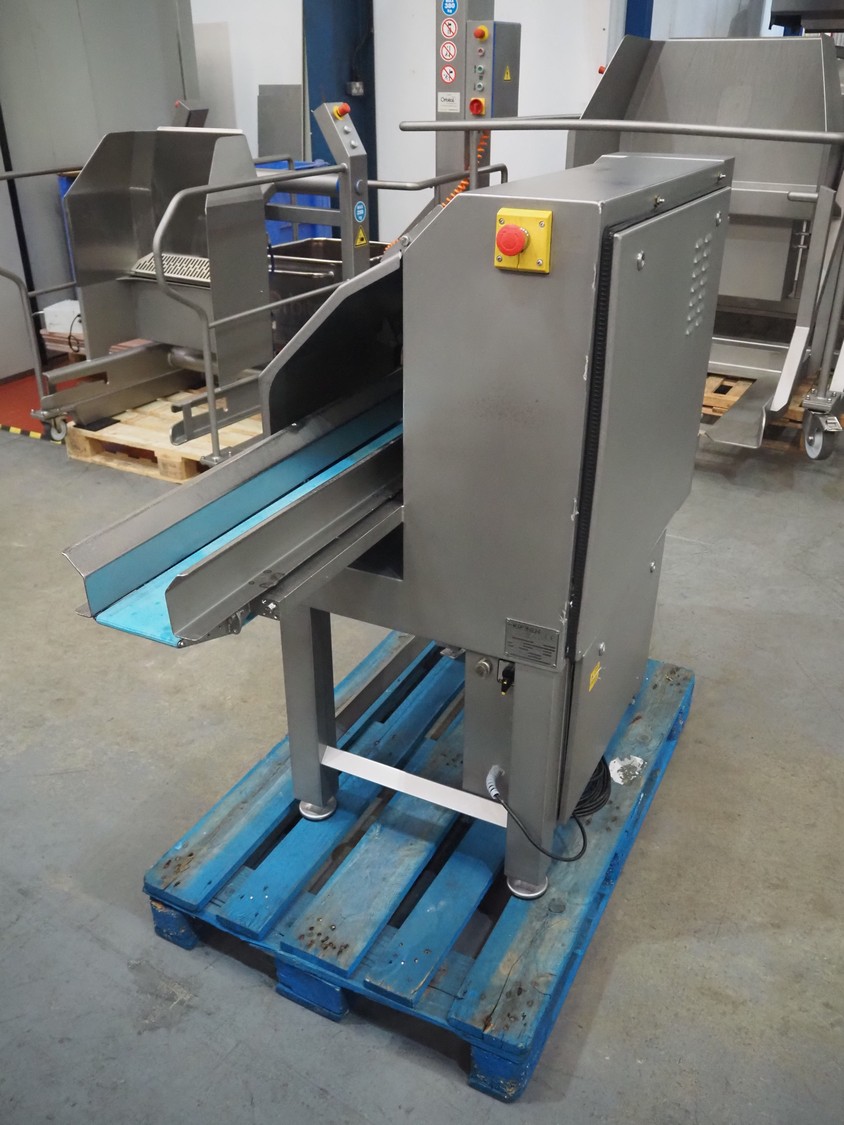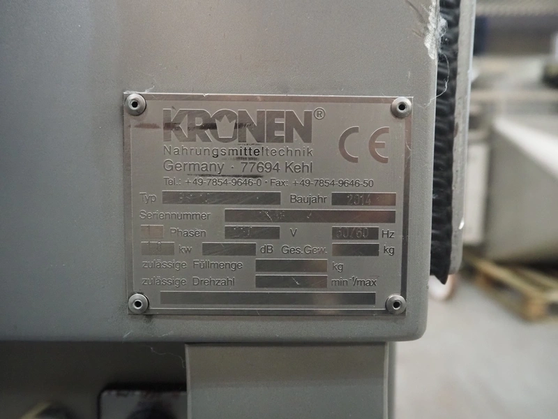 Kronen slicer, type: GS10, serial number: 2248, year of construction: 2014, 230 V, 1 Ph, 50/60 Hz, 1.8 kW, plastic belt, belt width: (2x) 120 mm, total dimensions: 1500 mm x 600 mm x 1250 mm.