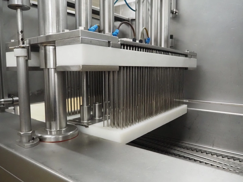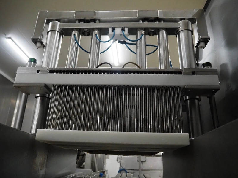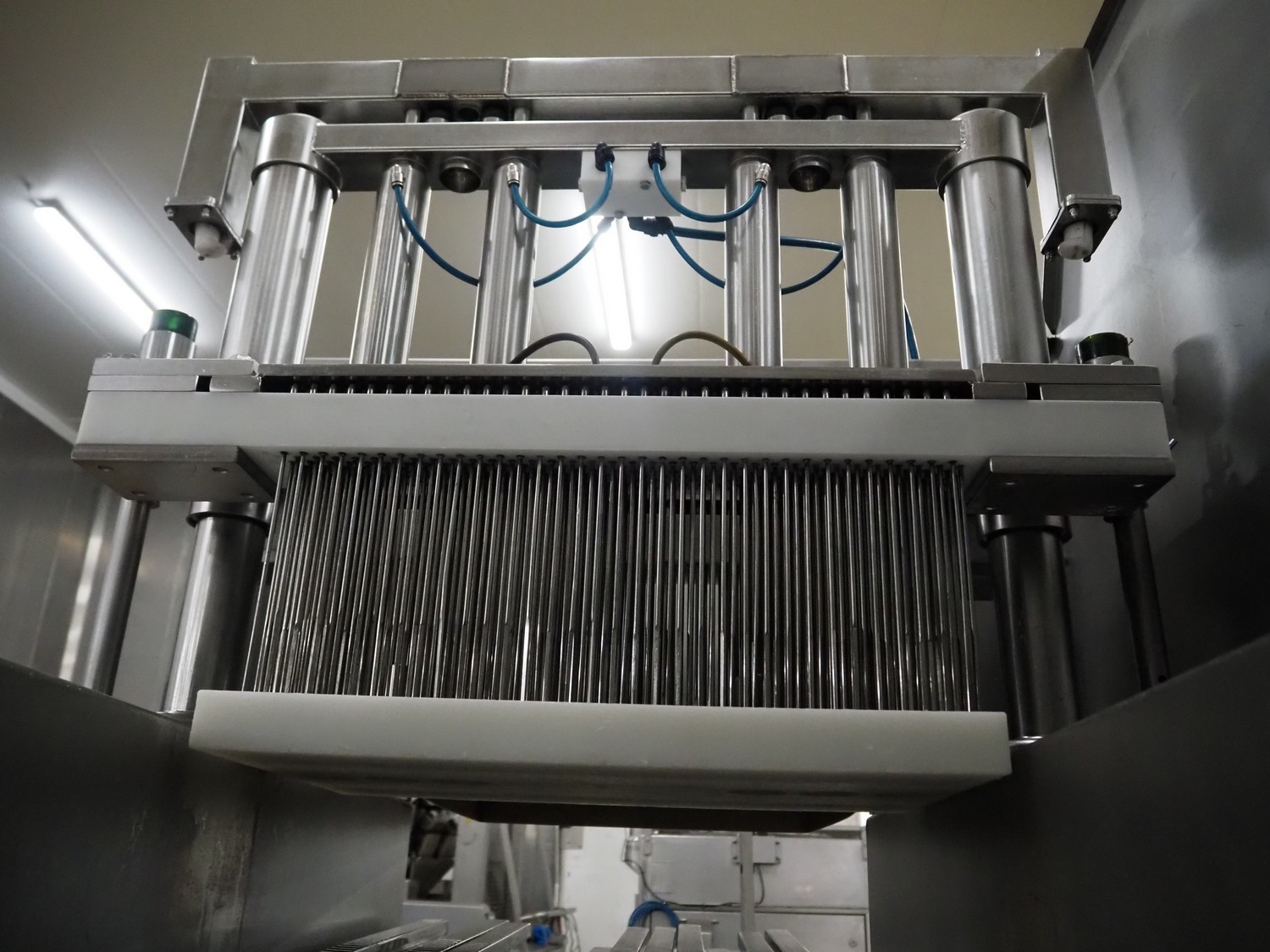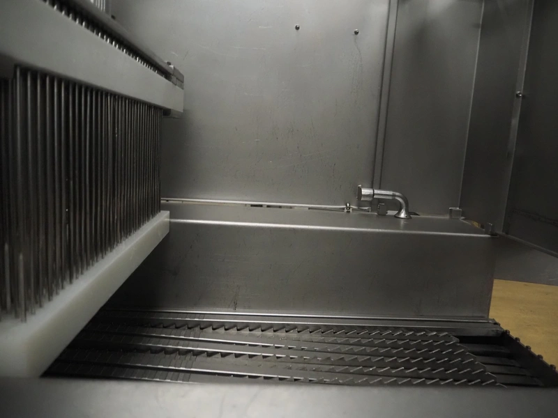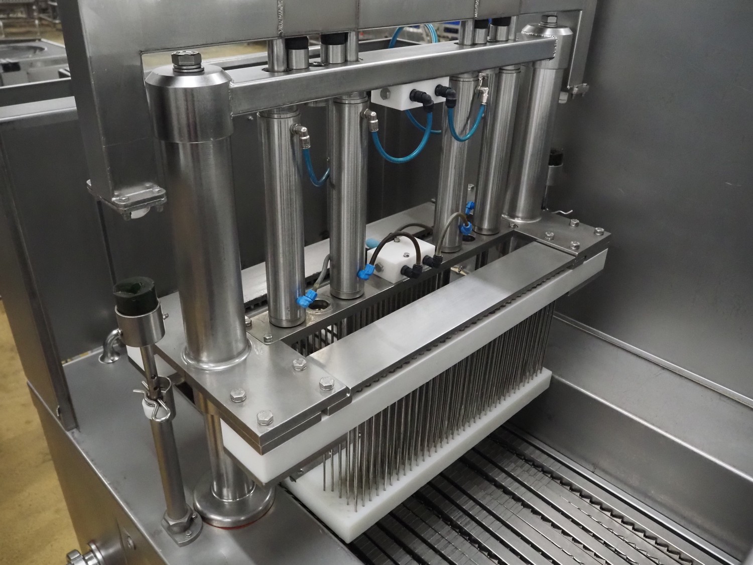 Schröder tenderiser, type: NT 350, number: 35028802, year of construction: 2000, 400 V, 50 Hz, 19 A, 5 kW, s/s walking beam, total belt width: 640 mm, 476 needles, total dimensions: 2050 mm x 1300 mm x 2100 mm.