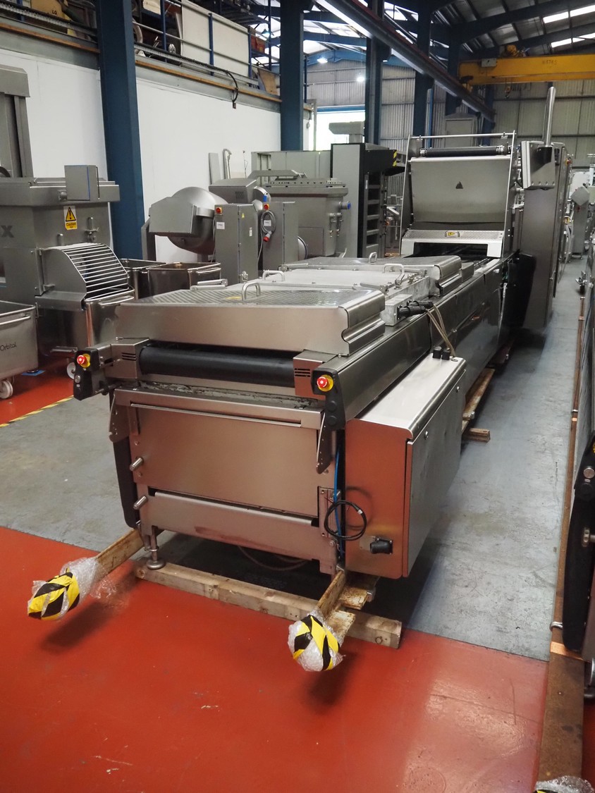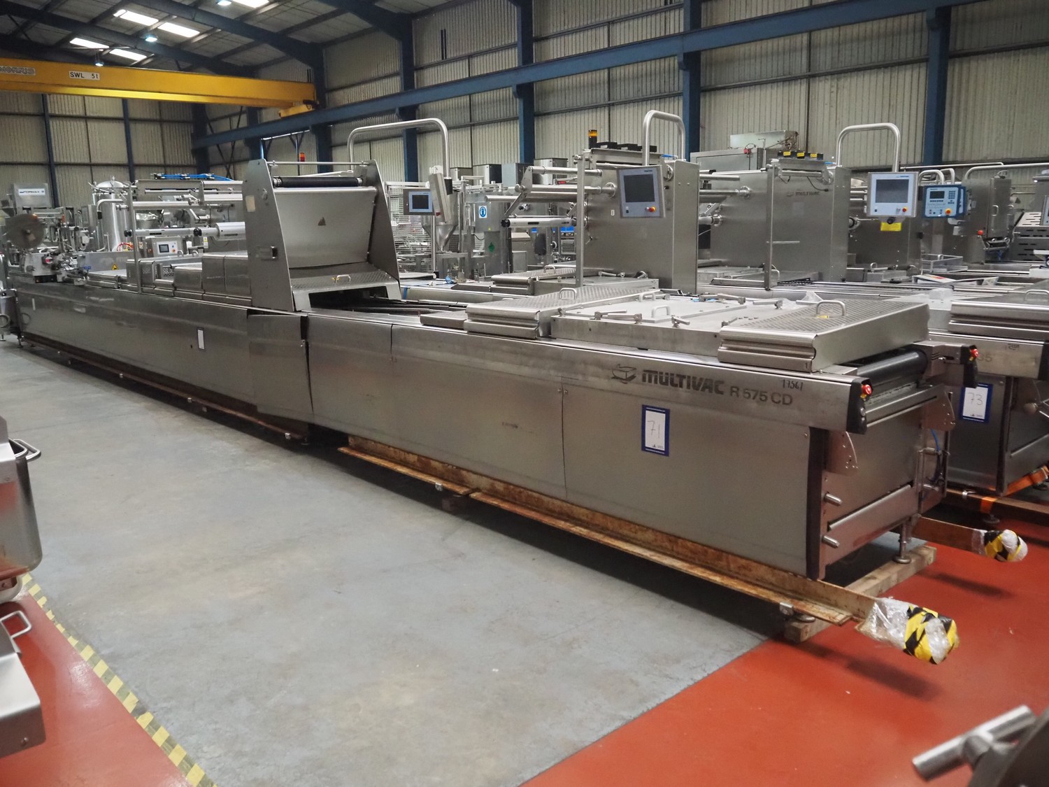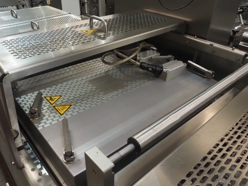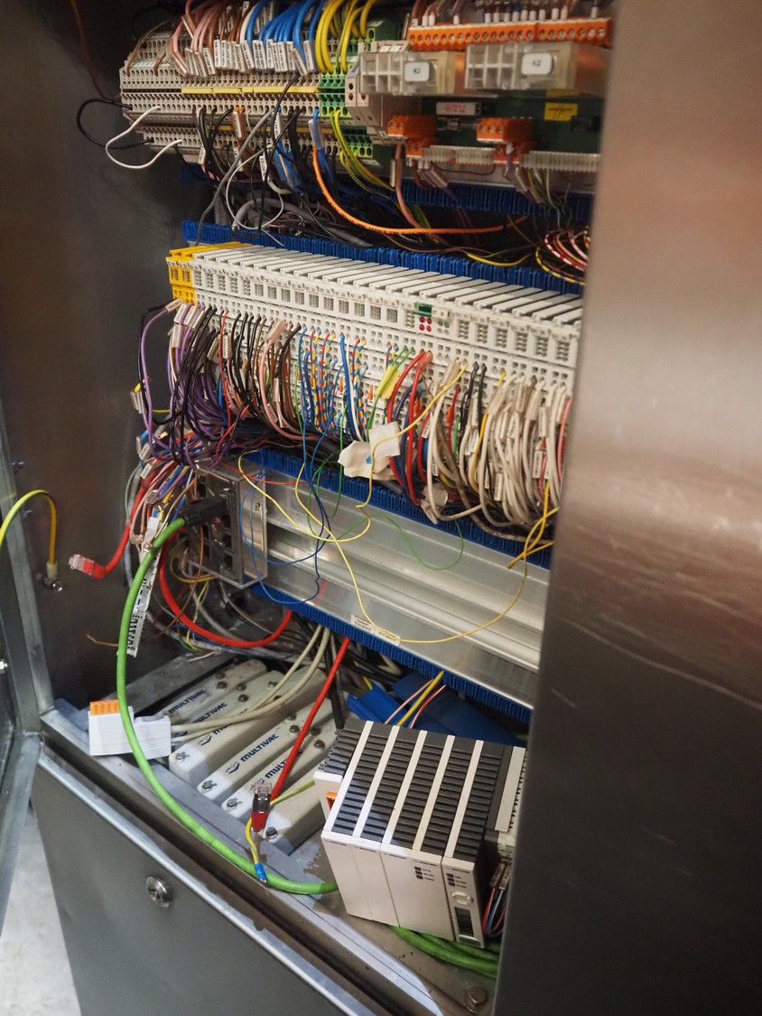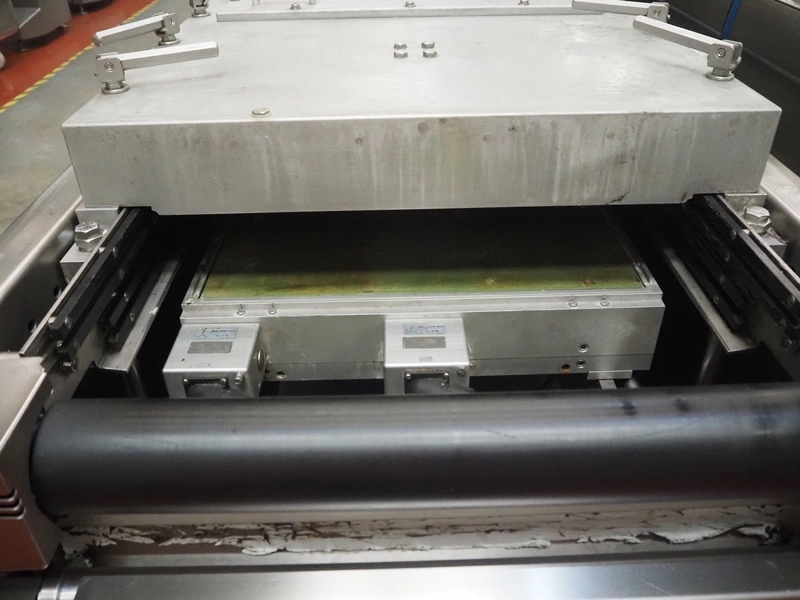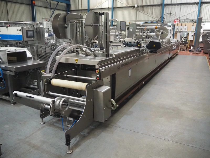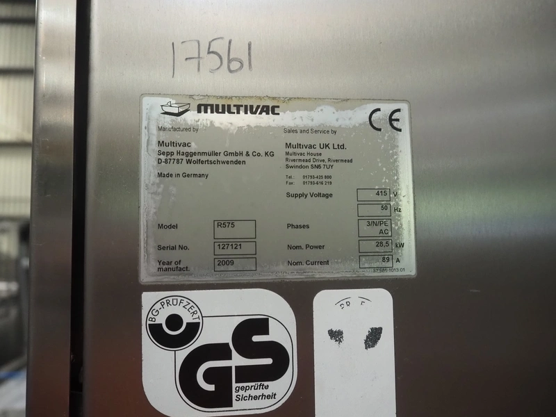 Multivac thermoformer, model: R575, serial number: 127121, year of construction: 2009, 415 V, 3 Ph, 50 Hz, 89 A, 28.5 kW, dimensions dye: (6x) 220 mm x 150 mm, dimensions: 12500 mm x 1800 mm x 2300 mm.