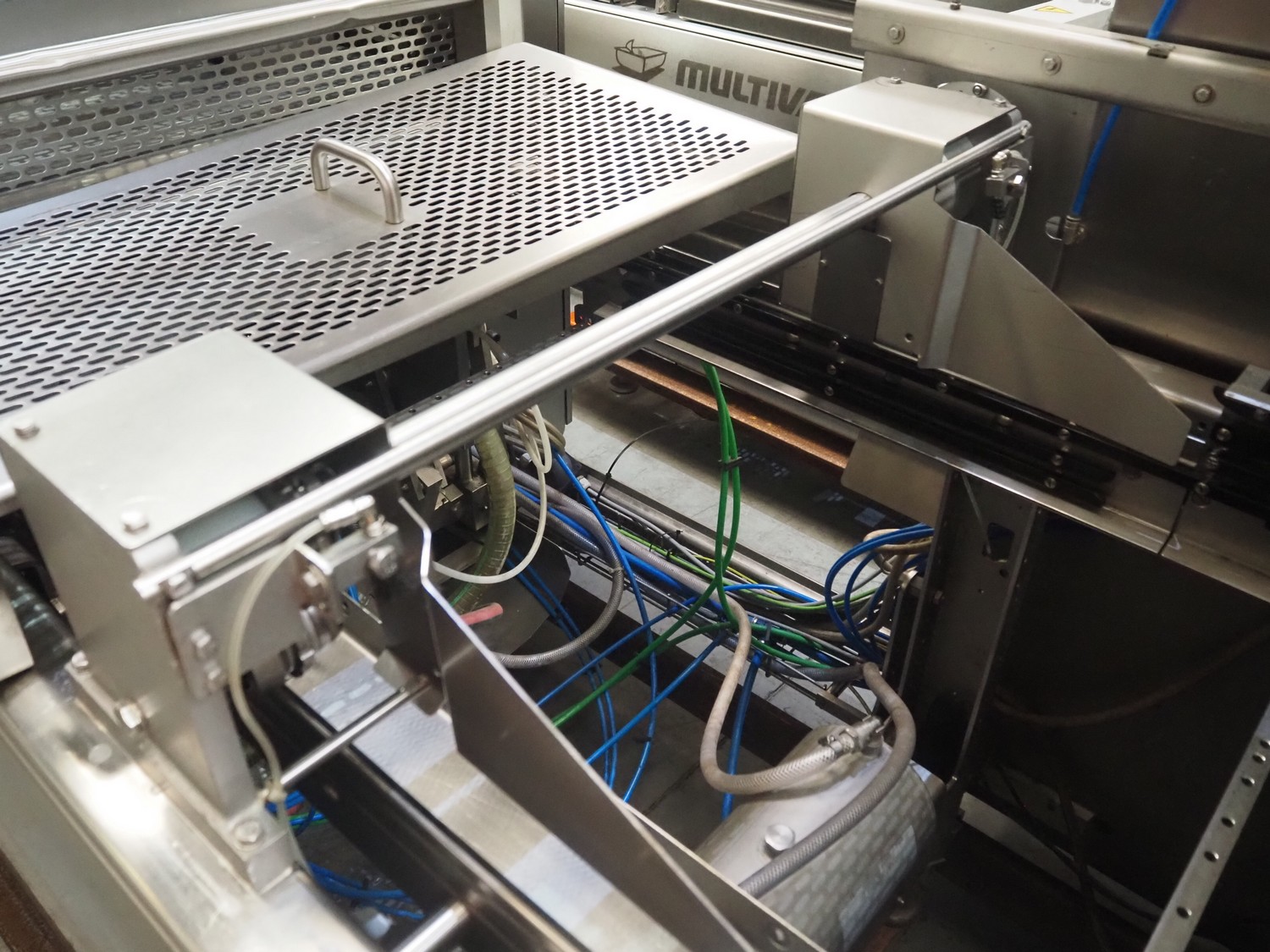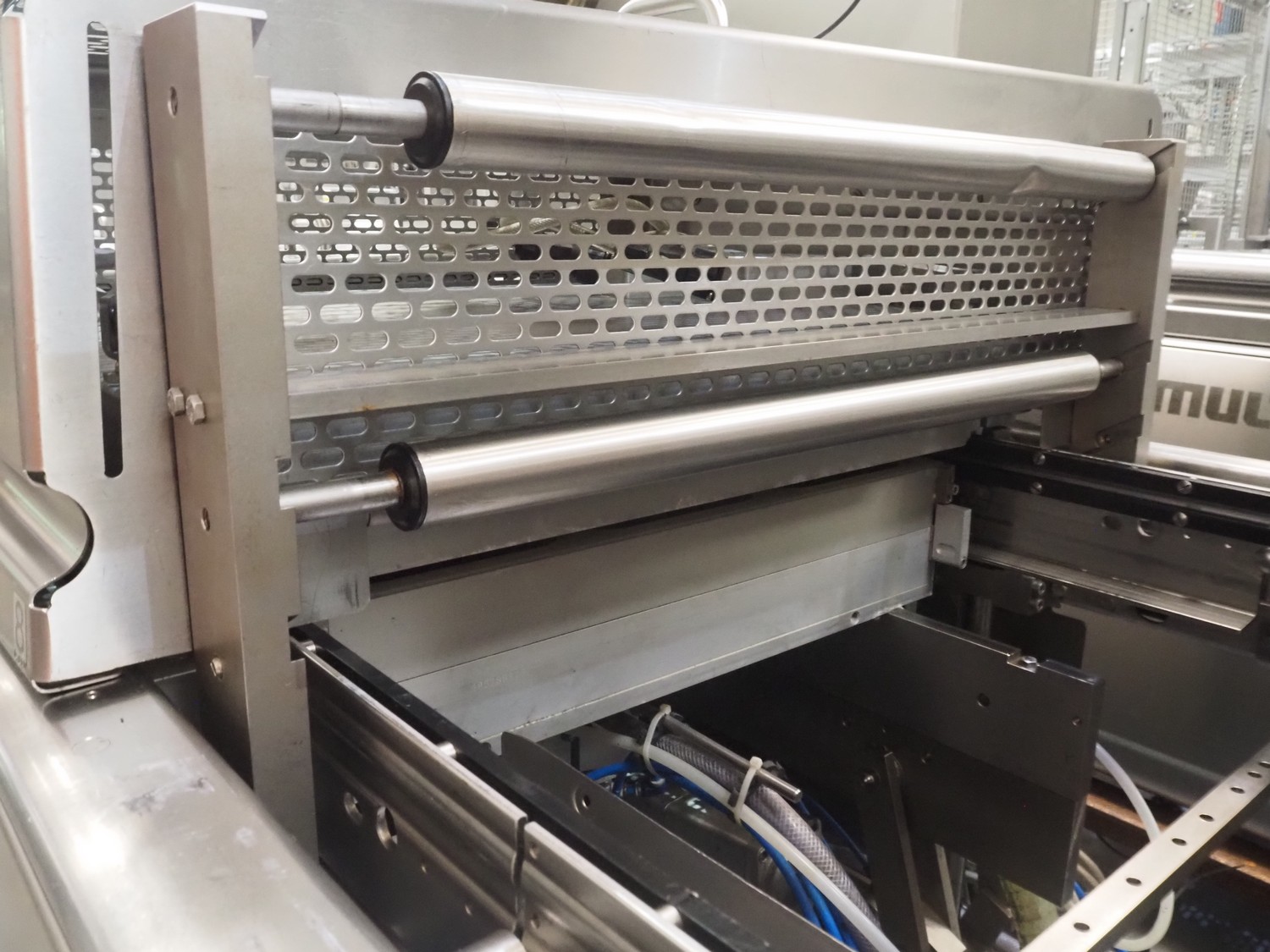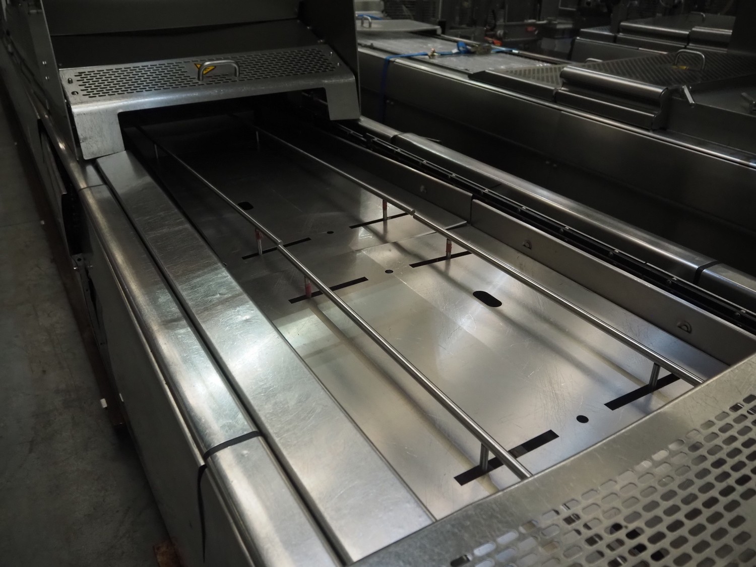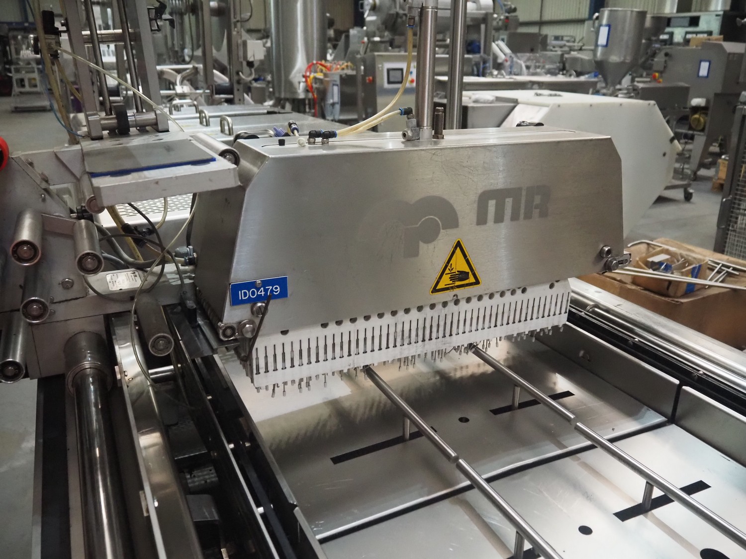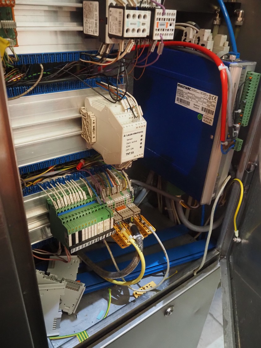 Multivac thermoformer, model: R575, serial number: 127121, year of construction: 2009, 415 V, 3 Ph, 50 Hz, 89 A, 28.5 kW, dimensions dye: (6x) 220 mm x 150 mm, dimensions: 12500 mm x 1800 mm x 2300 mm.
