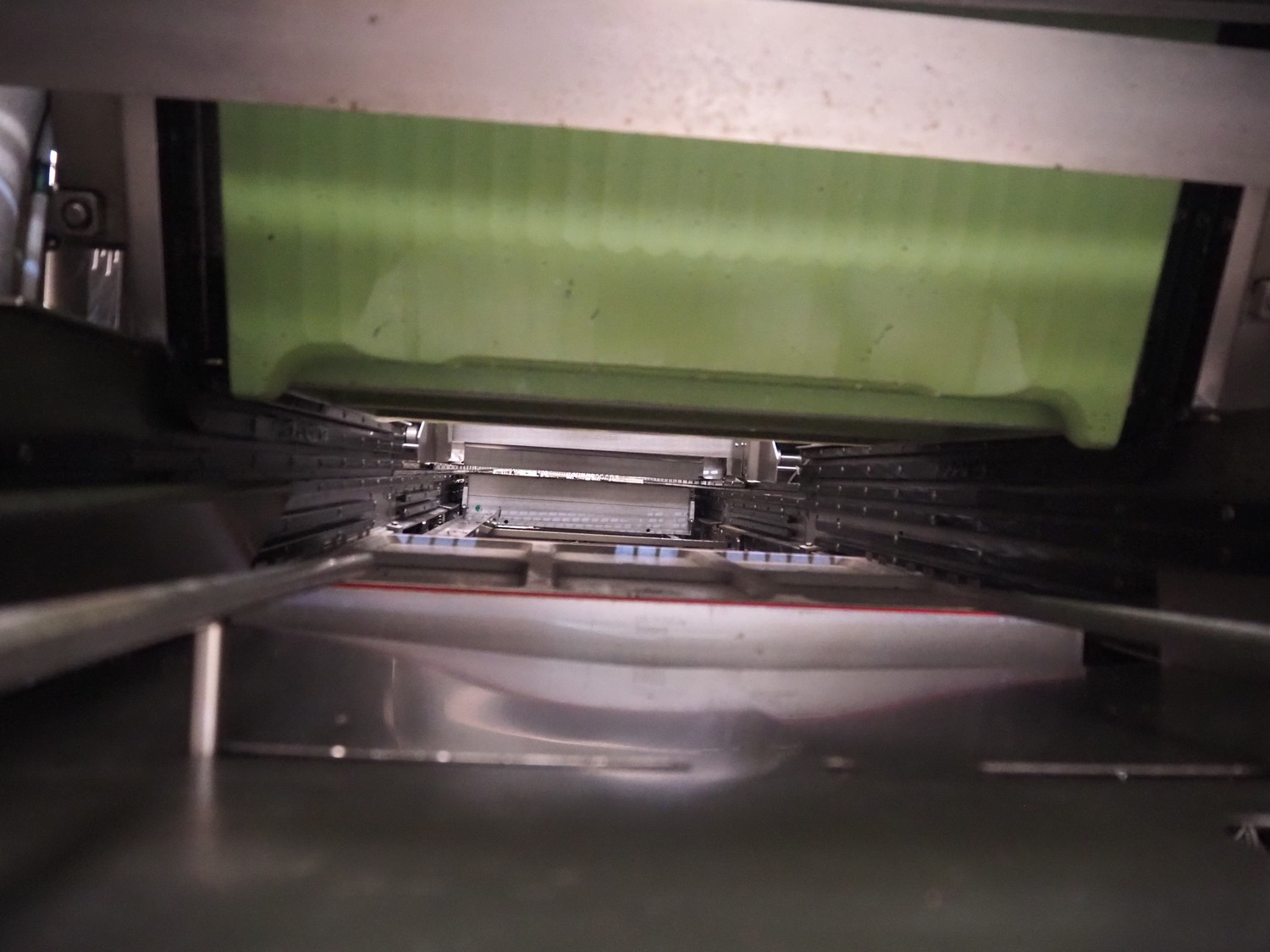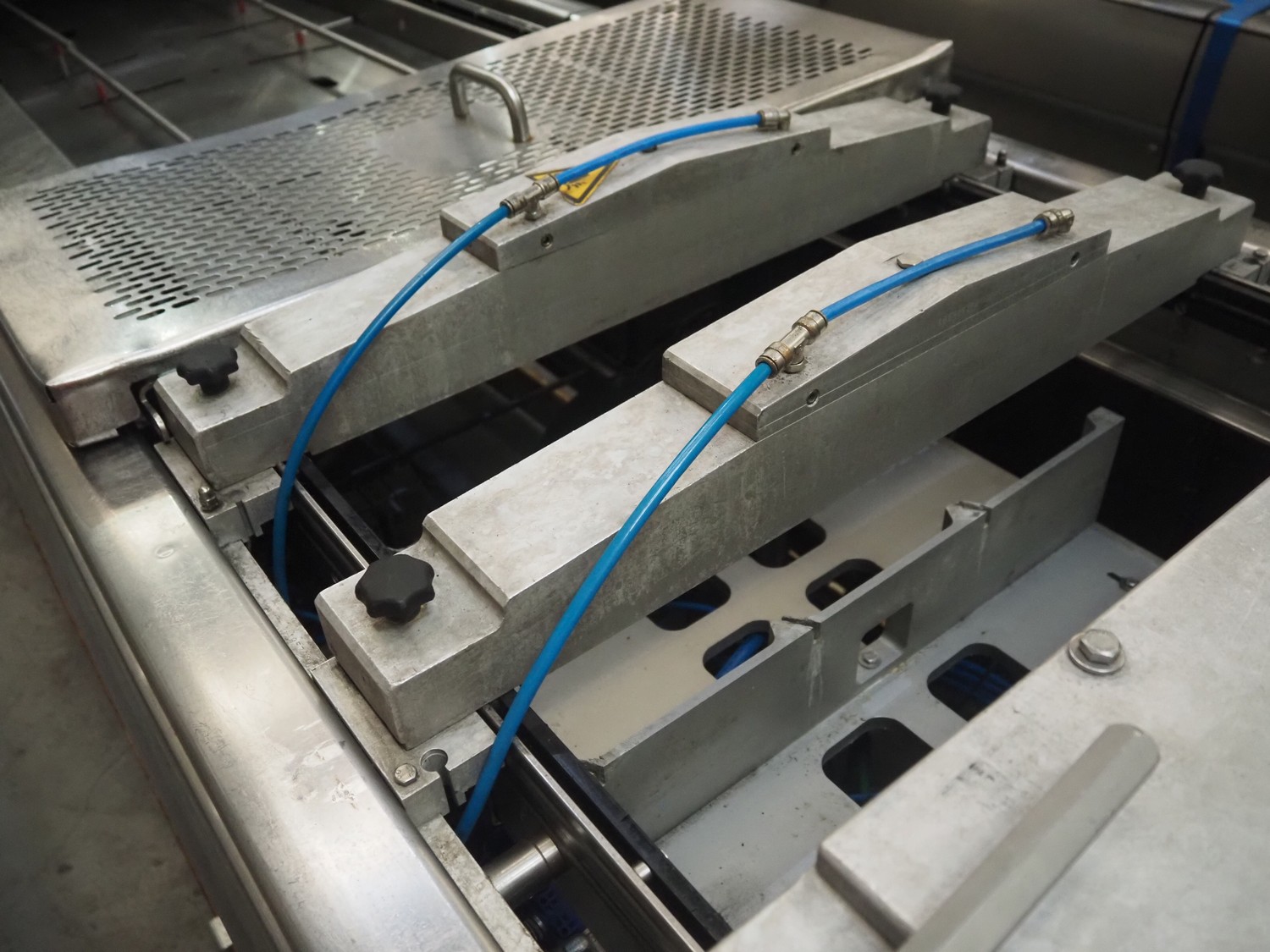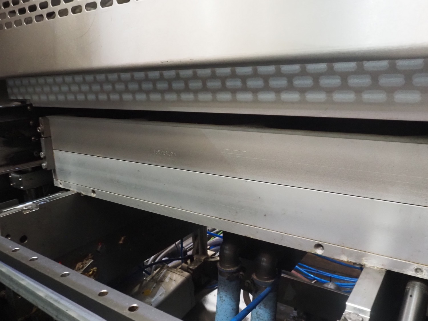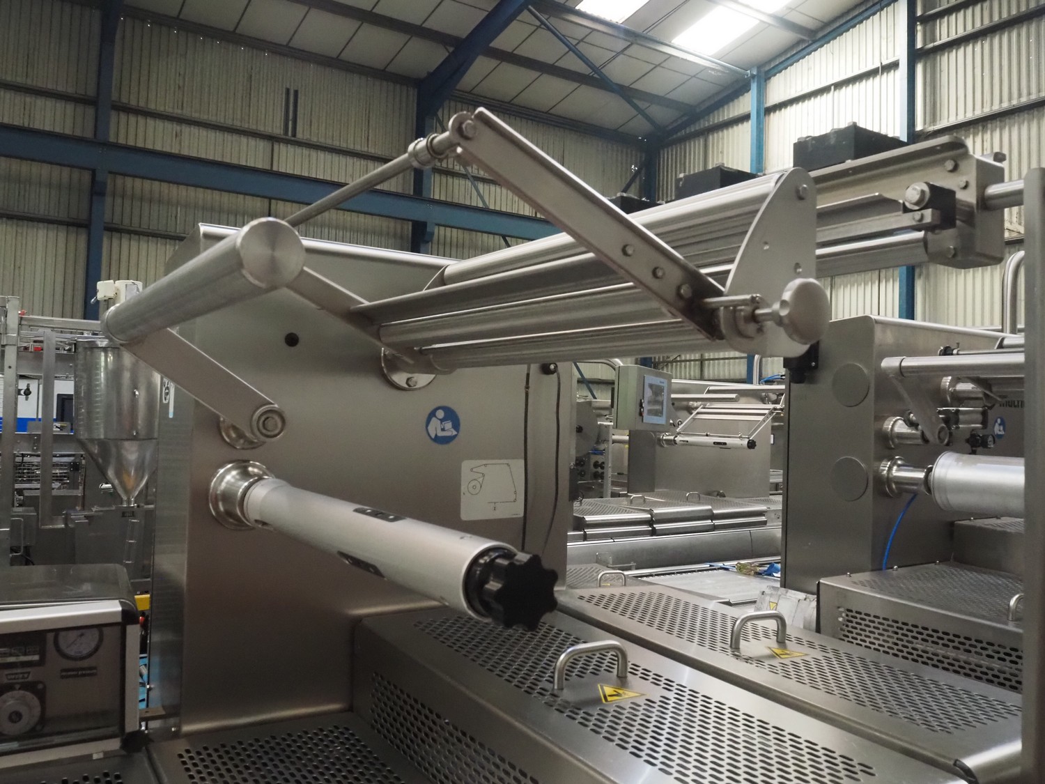 Multivac thermoformer, model: R575, serial number: 127121, year of construction: 2009, 415 V, 3 Ph, 50 Hz, 89 A, 28.5 kW, dimensions dye: (6x) 220 mm x 150 mm, dimensions: 12500 mm x 1800 mm x 2300 mm.