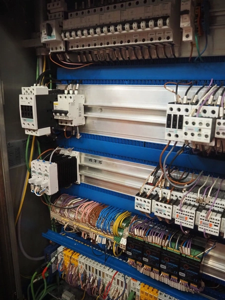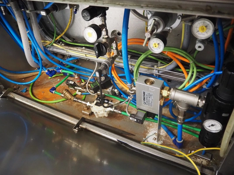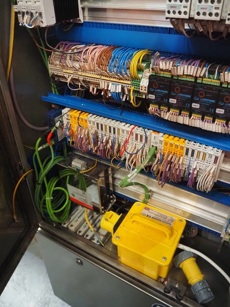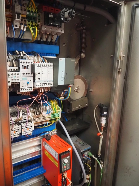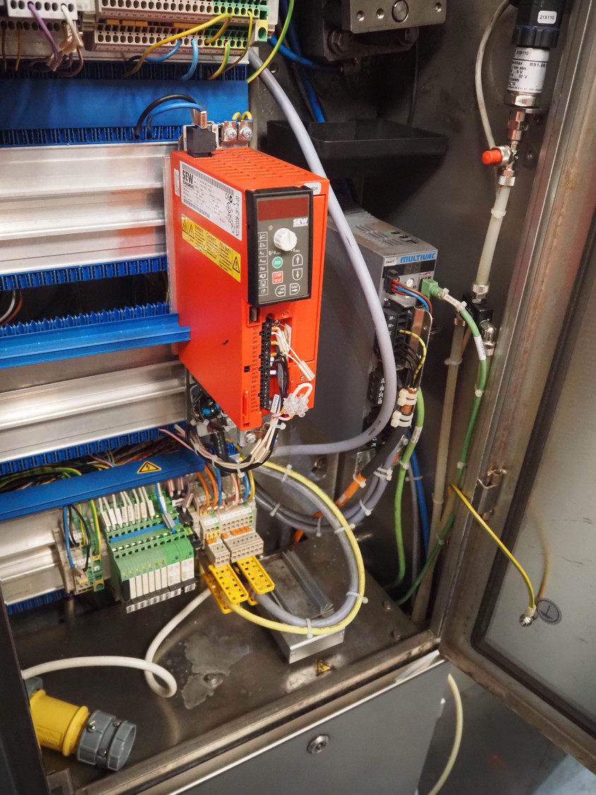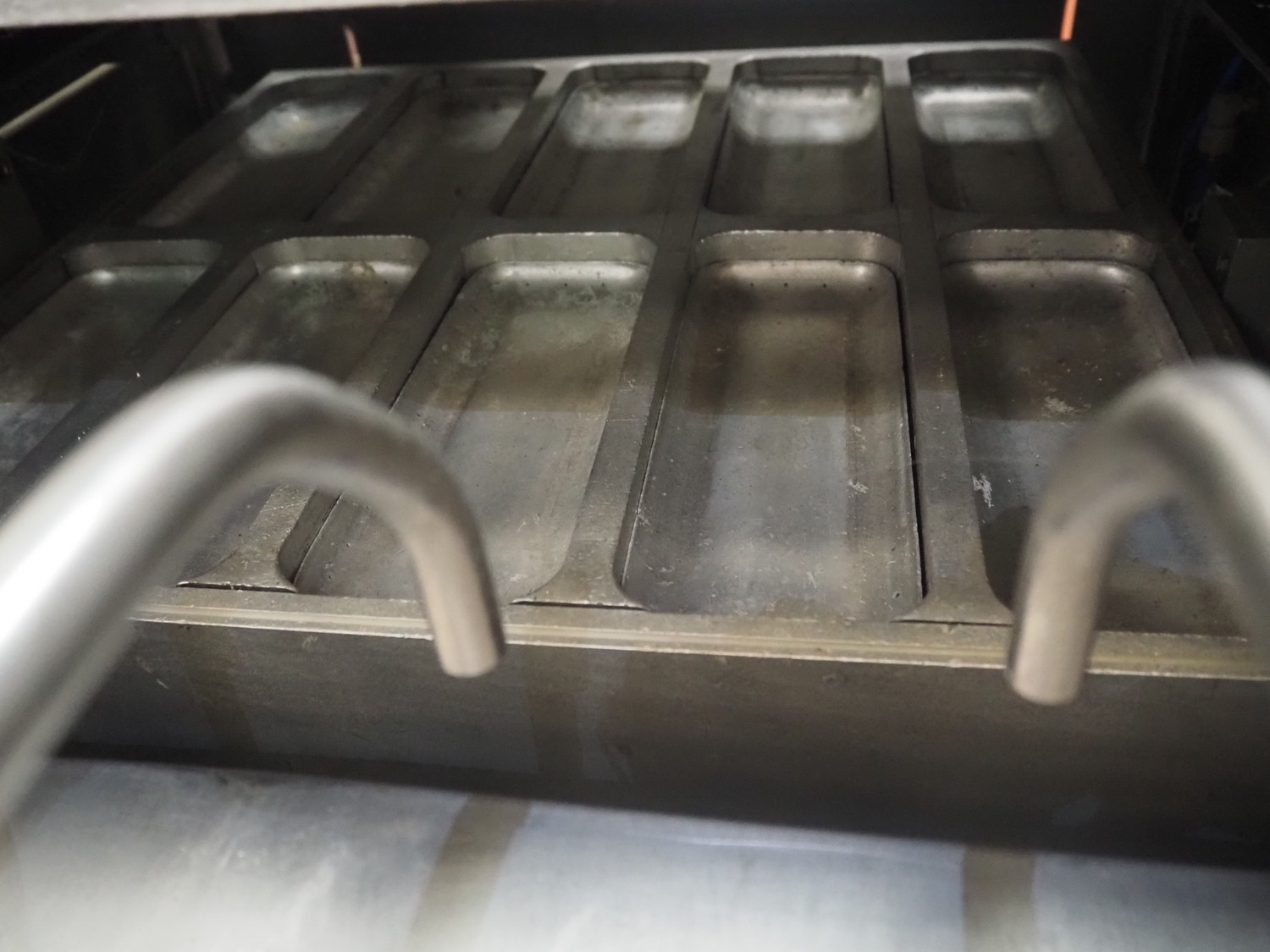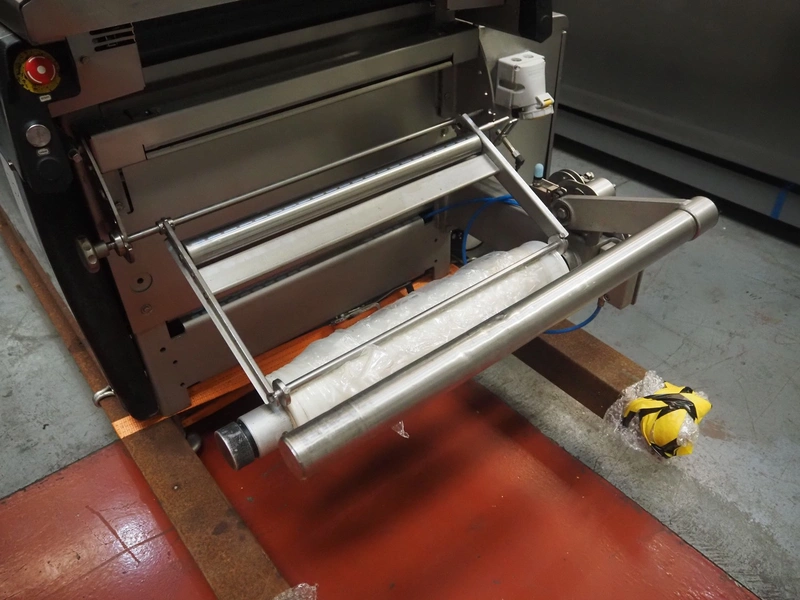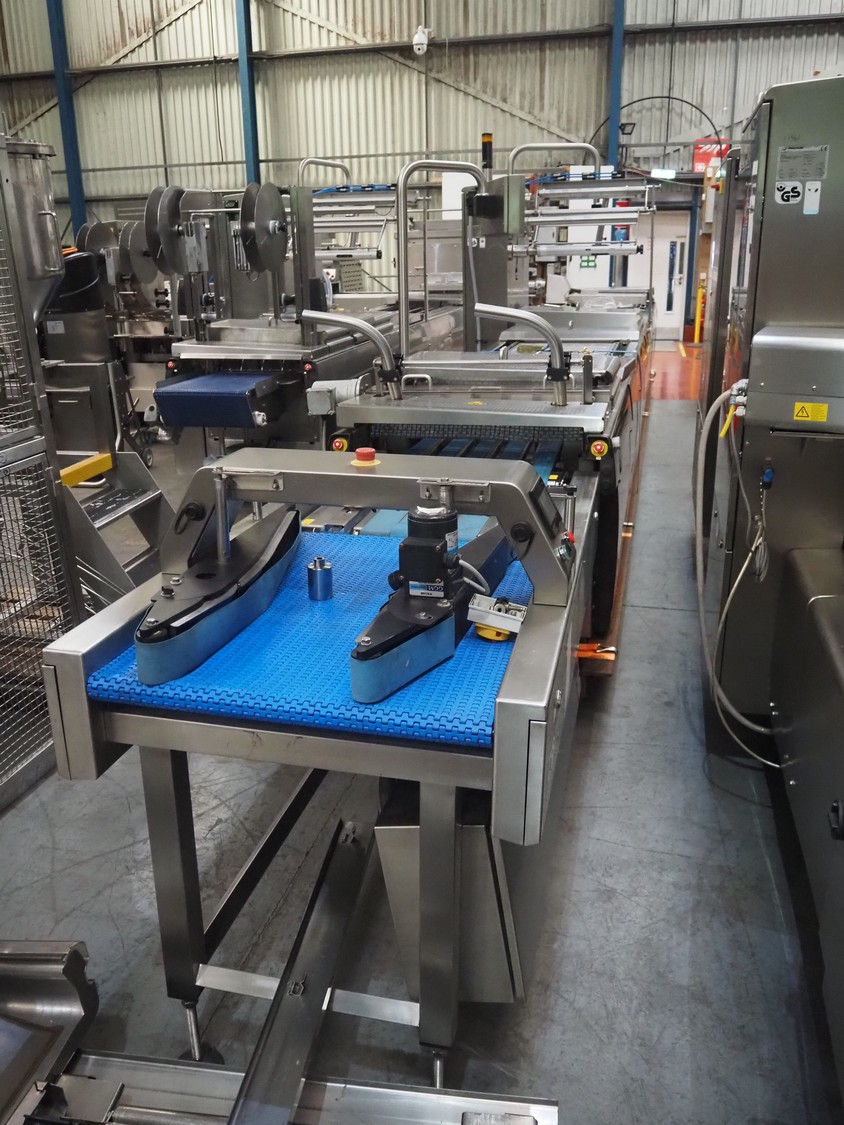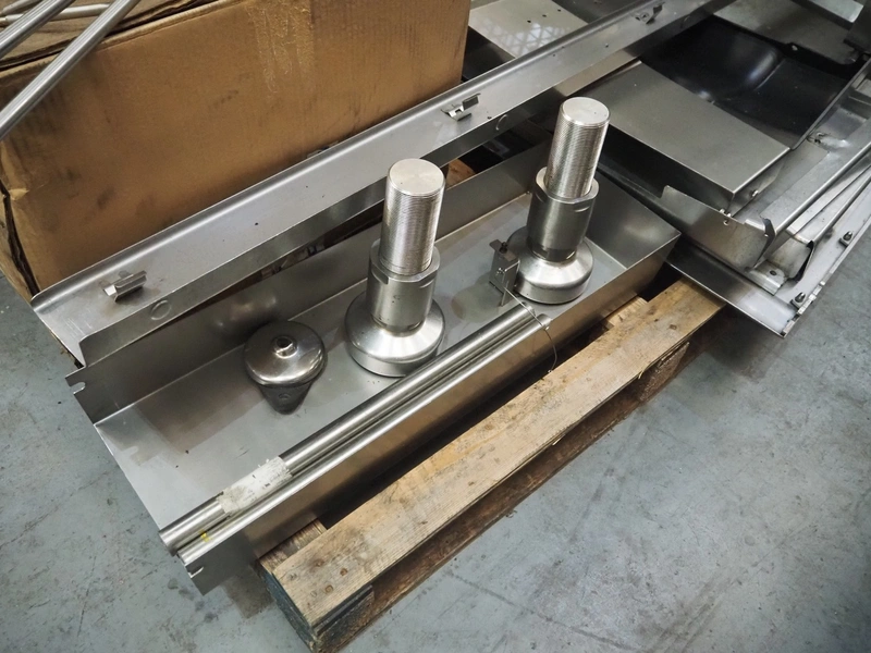 Multivac thermoformer with outfeed lane divider, type: R535, serial number: 146583, year of construction: 2011, 415 V, 3 Ph, 50 Hz, 50 A, 17.5 kW, film width: 570 mm, dimensions dye: (10x) 243 mm x 93 mm, with lane divider, plastic belt, belt width: (5x) 80 mm, 680 mm, dimensions thermoformer: 8200 mm x 1300 mm x 2300 mm, dimensions lane divider: 1500 mm x 1200 mm x 600 mm. Including pallet with parts.