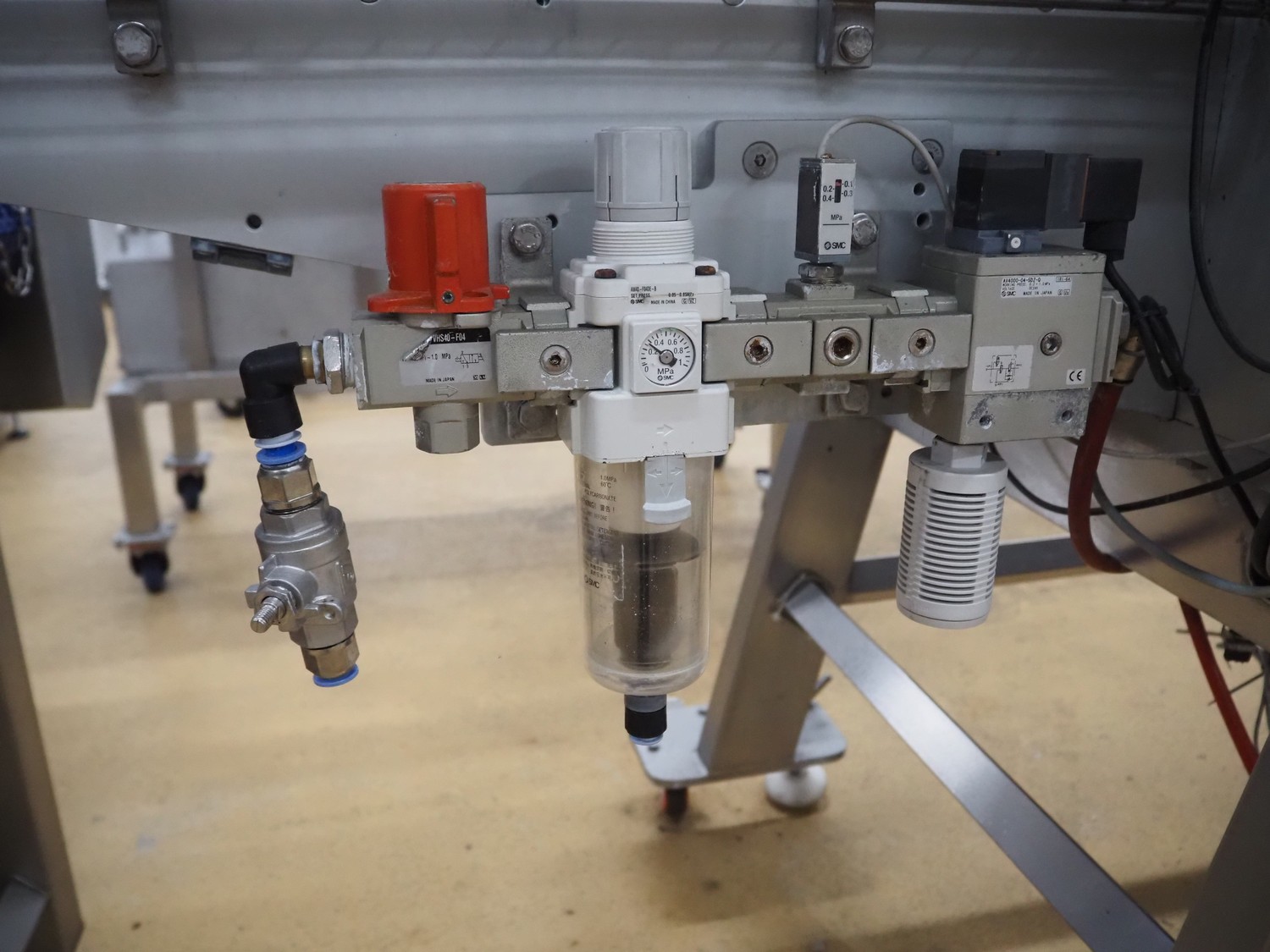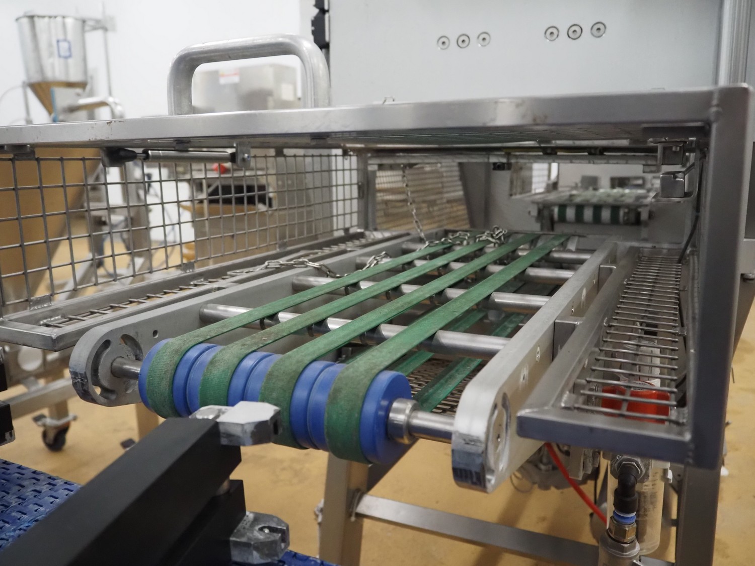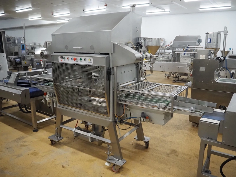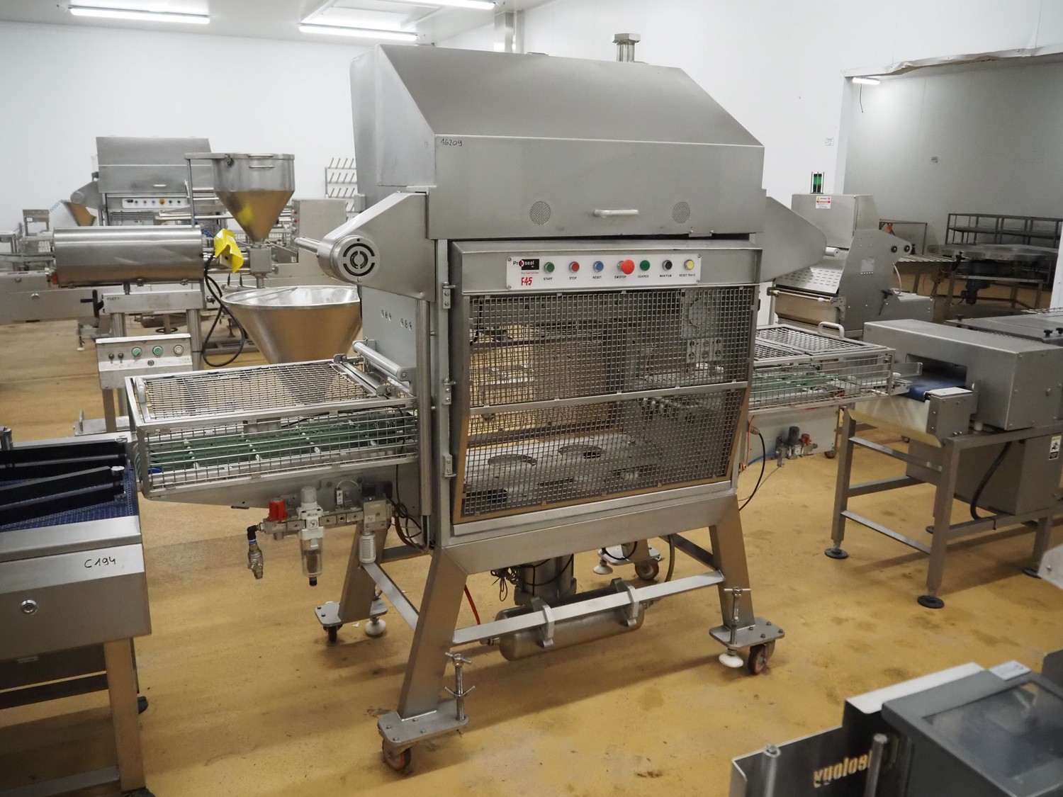 Proseal UK Ltd. mobile rotary traysealer, type: Fastpack F45, serial number: 1212, 415 V, 50 Hz, plastic wire belt, belt width: 180 mm, total dimensions: 1850 mm x 900 mm x 2150 mm. Without dye.