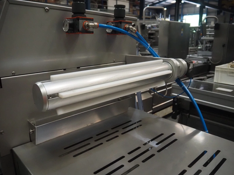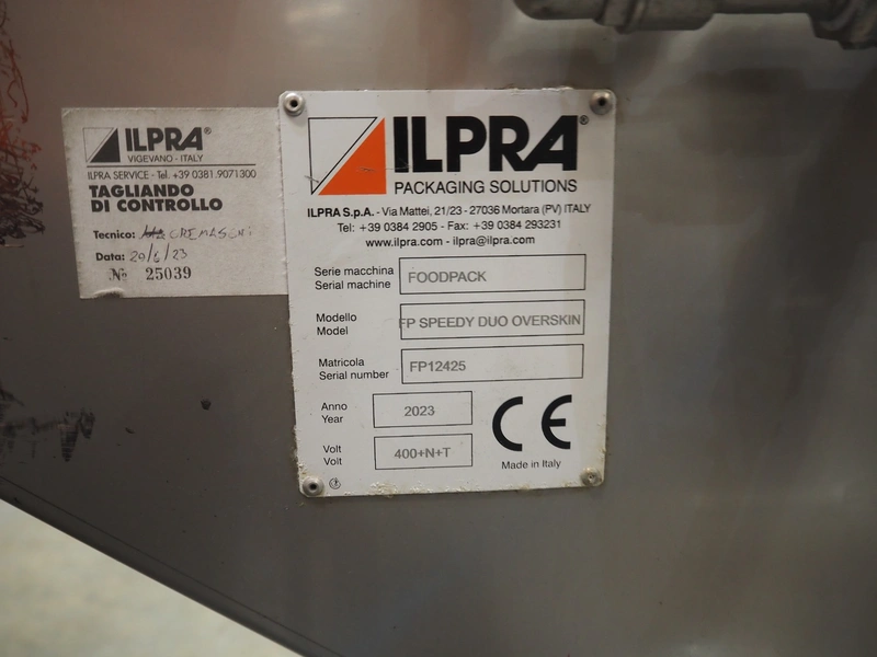 Ilpra S.p.A. traysealer, model: FP SPEEDY DUO OVERSKIN, serial number: 12425, year of construction: 2023, 400 V, distance between dividers: 340 mm, dimensions dye: (4x) 180 mm x 140 mm, Busch vacuum pump, total dimensions: 3230 mm x 1050 mm x 1620 mm, 1000 mm x 1000 mm x 850 mm.