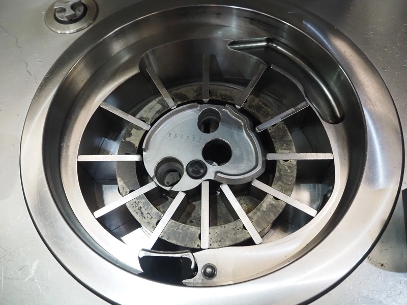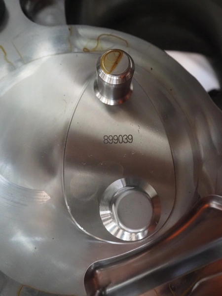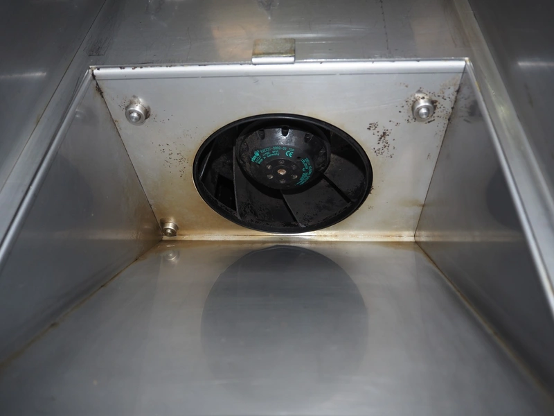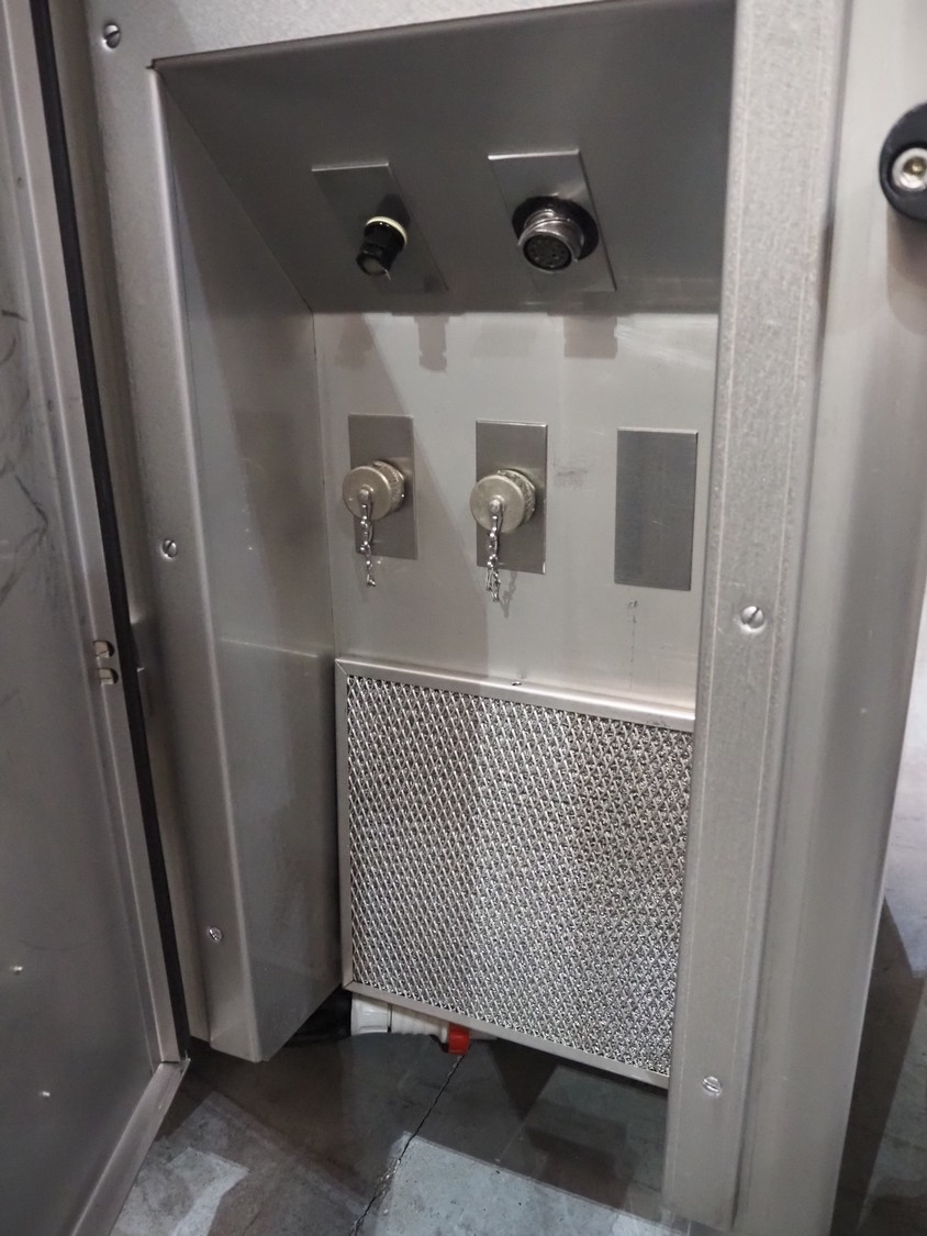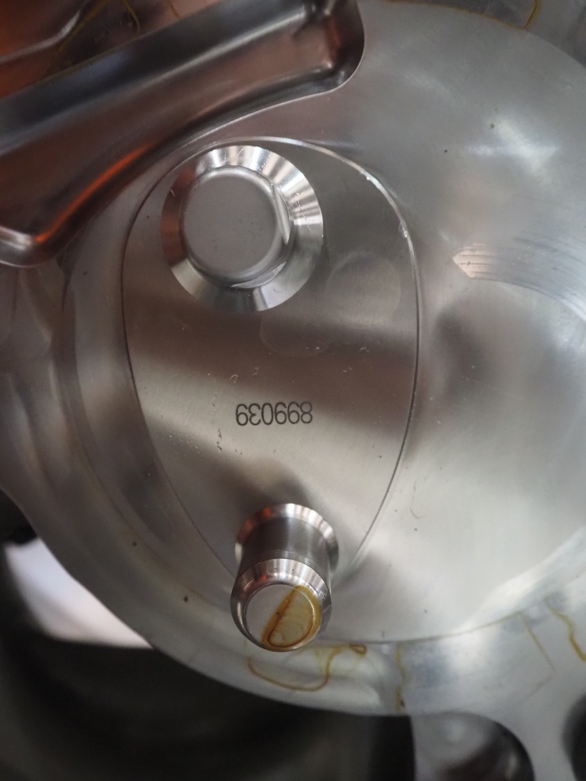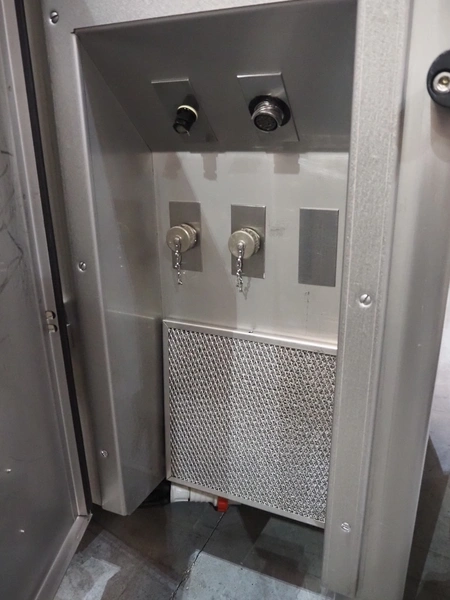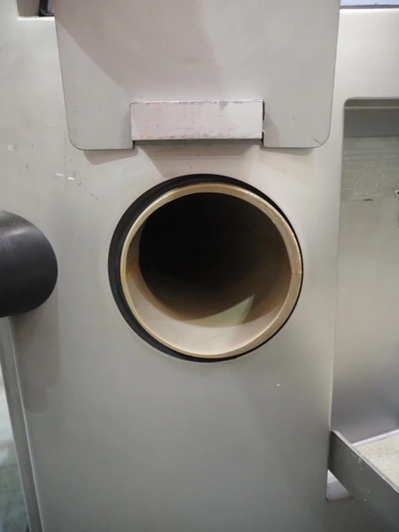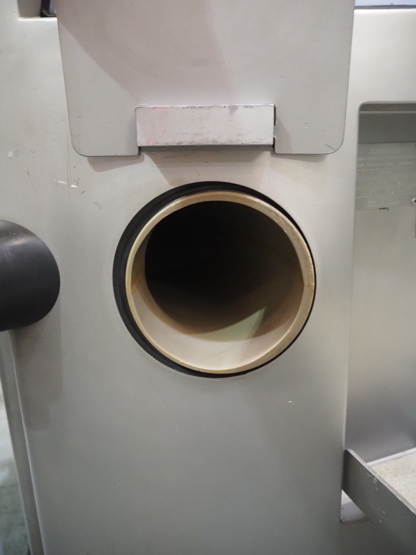Handtmann vacuum filling machine with lifter for 200 litre meat bins, type: VF628, number: 16380, year of construction: 2003, 420 V, 3 Ph, 50 Hz, 18.6 A, 13.5 kW, dimensions: 1750 mm x 1350 mm x 2100 mm.