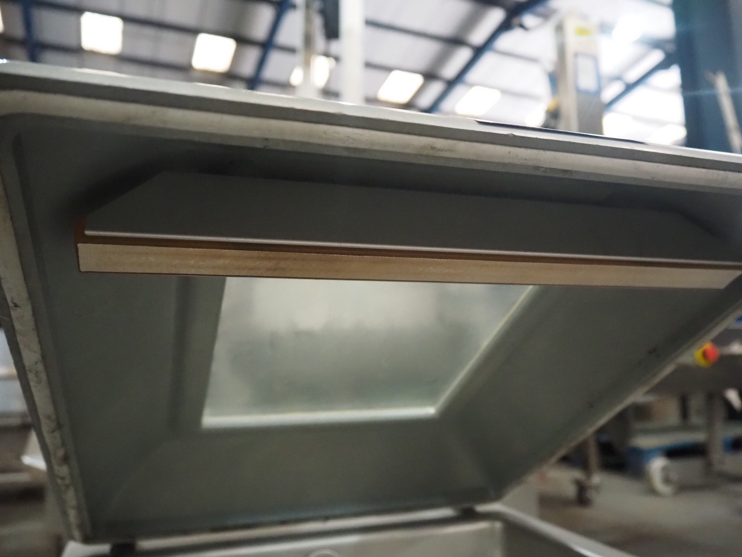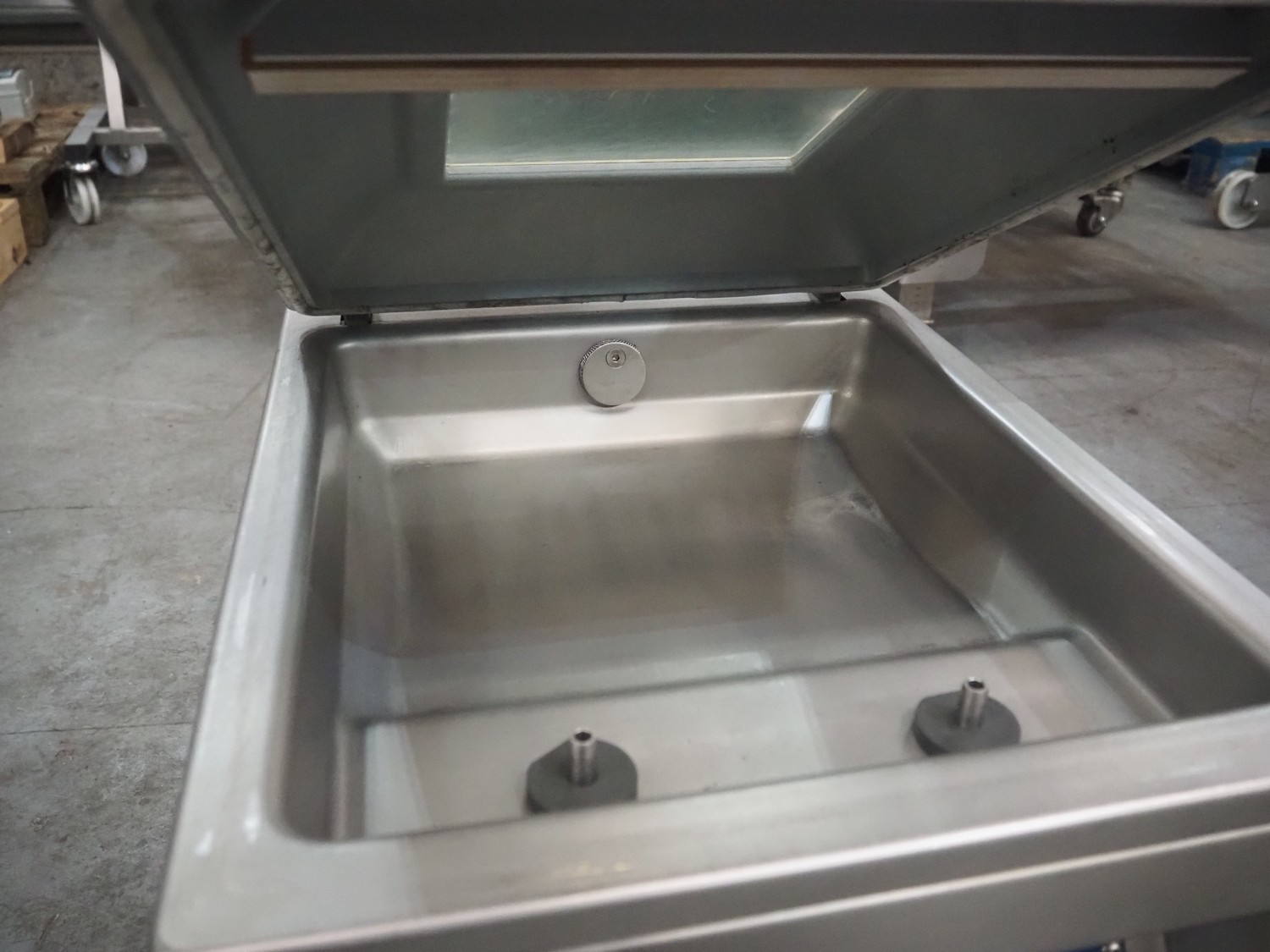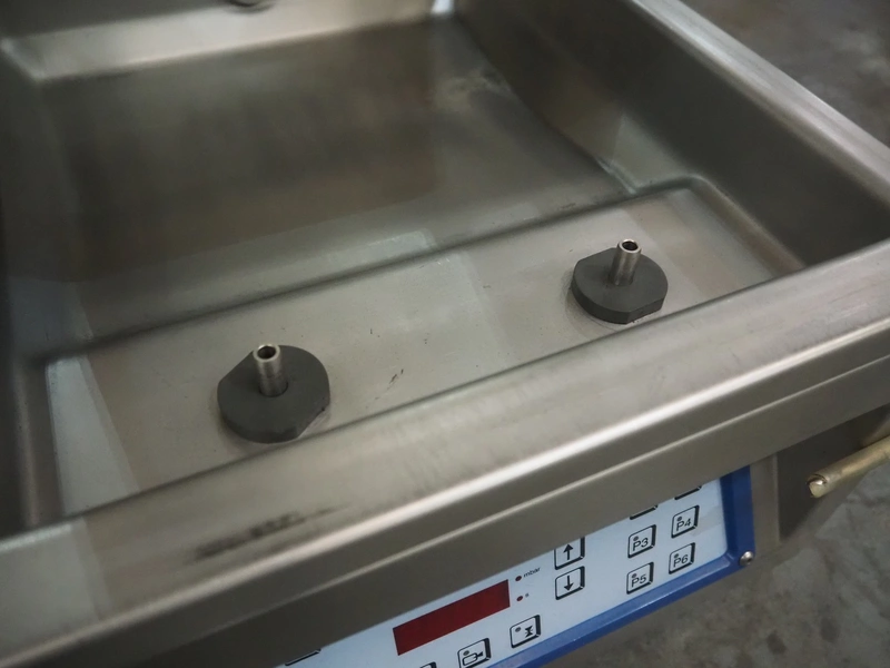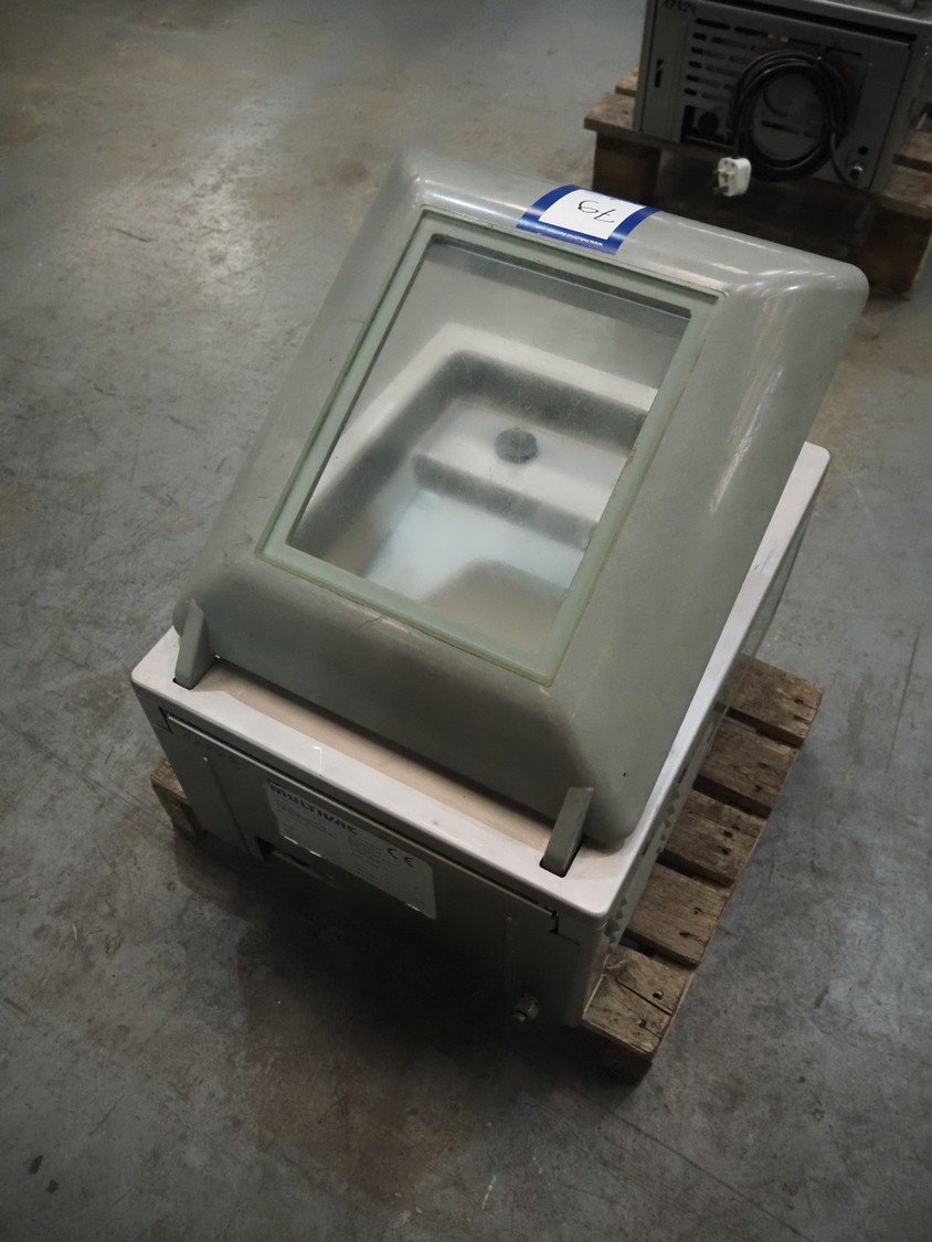 Multivac vacuum machine, type: C100, serial number: 1392, year of construction: 1997, 230 V, 1 Ph, 50 Hz, 3.5 A, 0.66 kW, seal length: 300 mm, dimensions chamber: 330 mm x 330 mm, Busch vacuum pump, total dimensions: 500 mm x 400 mm x 400 mm. Missing seal.