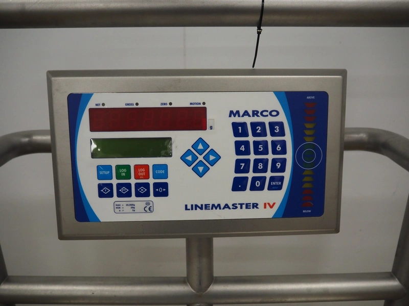 Marco weighing scale, type: LINEMASTER IV, weighing range: 20 g - 20000 g, e= 1 g, dimensions scale: 600 mm x 500 mm, total dimensions: 700 mm x 750 mm x 1370 mm.