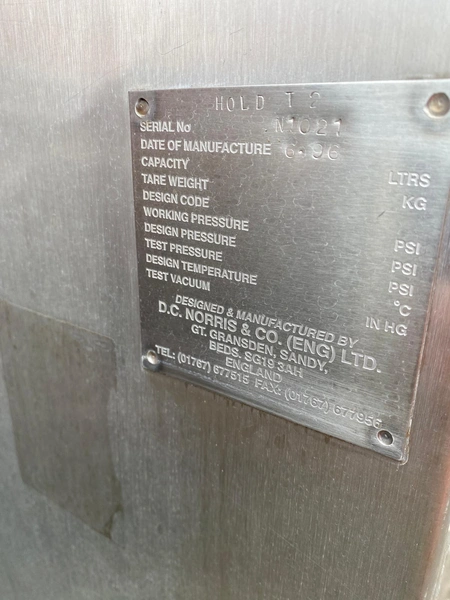 D.C. Norris settling tank, serial number: N1021, year of construction: 06-1996, dimensions: 4500 mm x 1550 mm x 1580 mm.