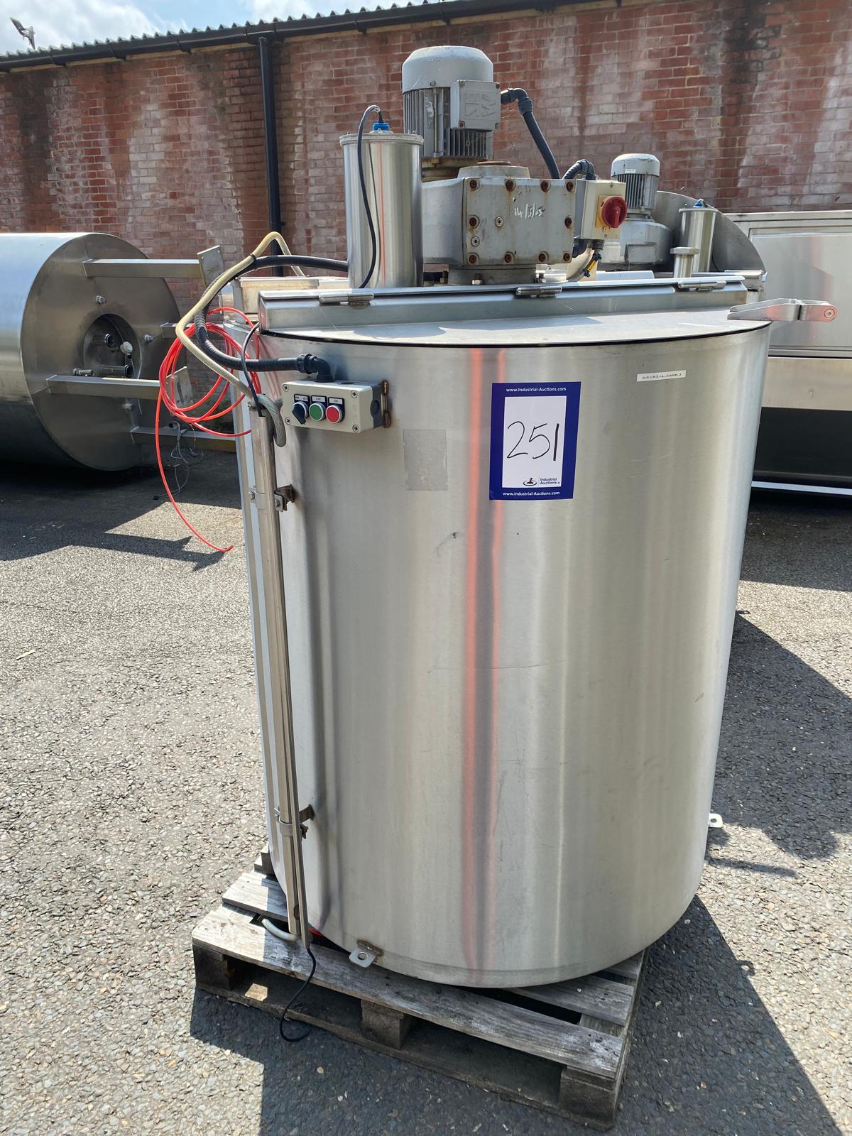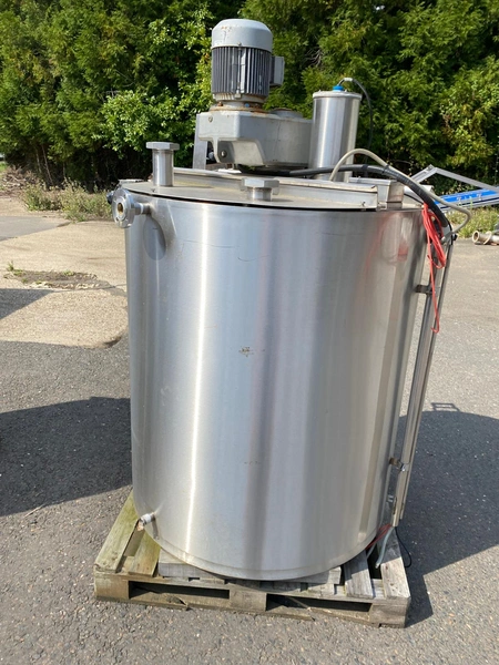 S/s tank with agitator, dimensions: 1130 mm x 1130 mm x 1900 mm.