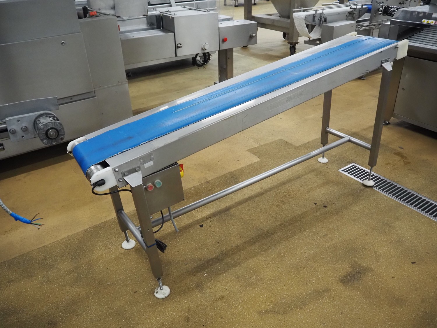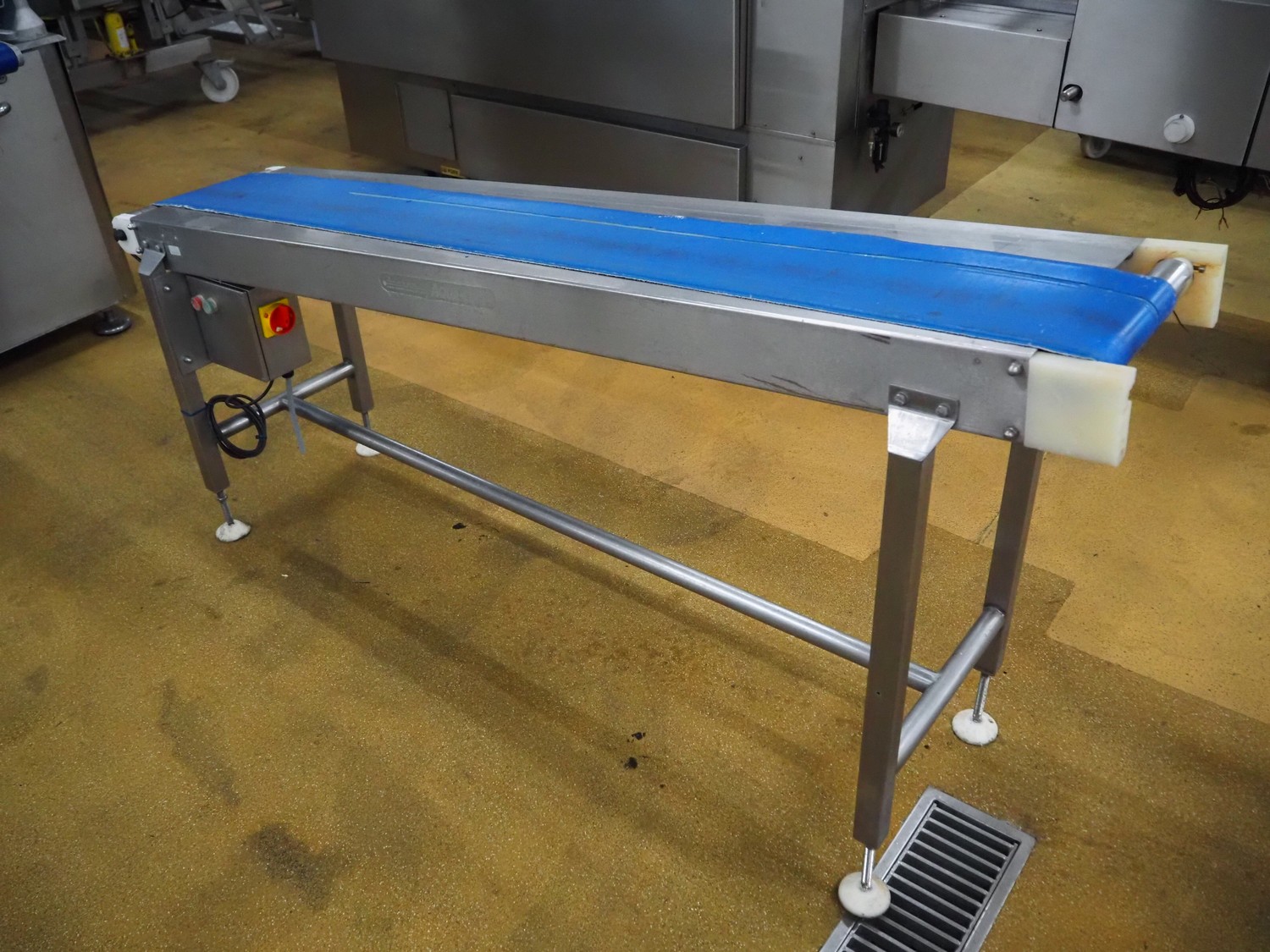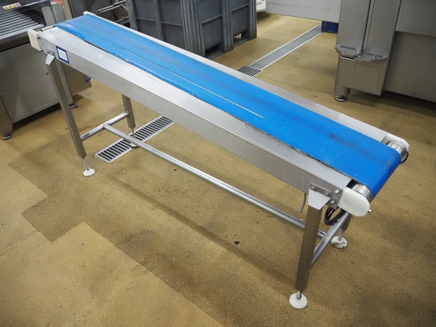 Crown conveyors elevating belt, serial number: 8371, plastic belt, belt width: 245 mm, elevating height: 970 mm, total dimensions: 2000 mm x 500 mm x 970 mm.