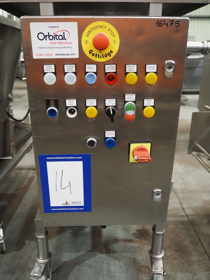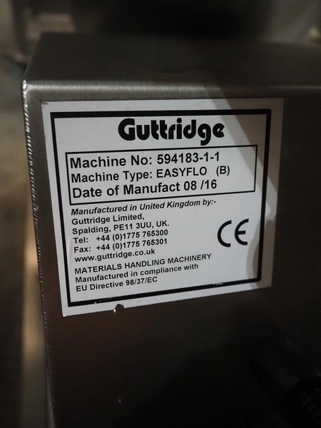 Mobile Guttridge EasyFlow elevating screw for dry products, machine type: EASYFLOW (B), machine number: 594183-1-1, date of manufacturing: 08/16, diameter screw: 70 mm, elevating height: 2400 mm, total dimensions: 700 mm x 1900 mm x 2550 mm.