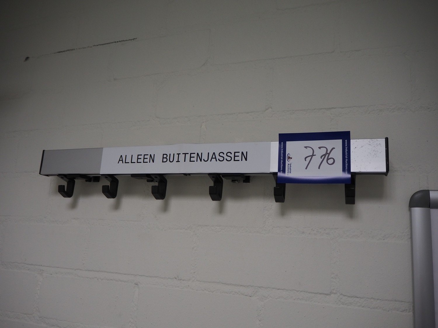 Steel coat rack, dimensions: 600 mm x 60 mm x 100 mm.