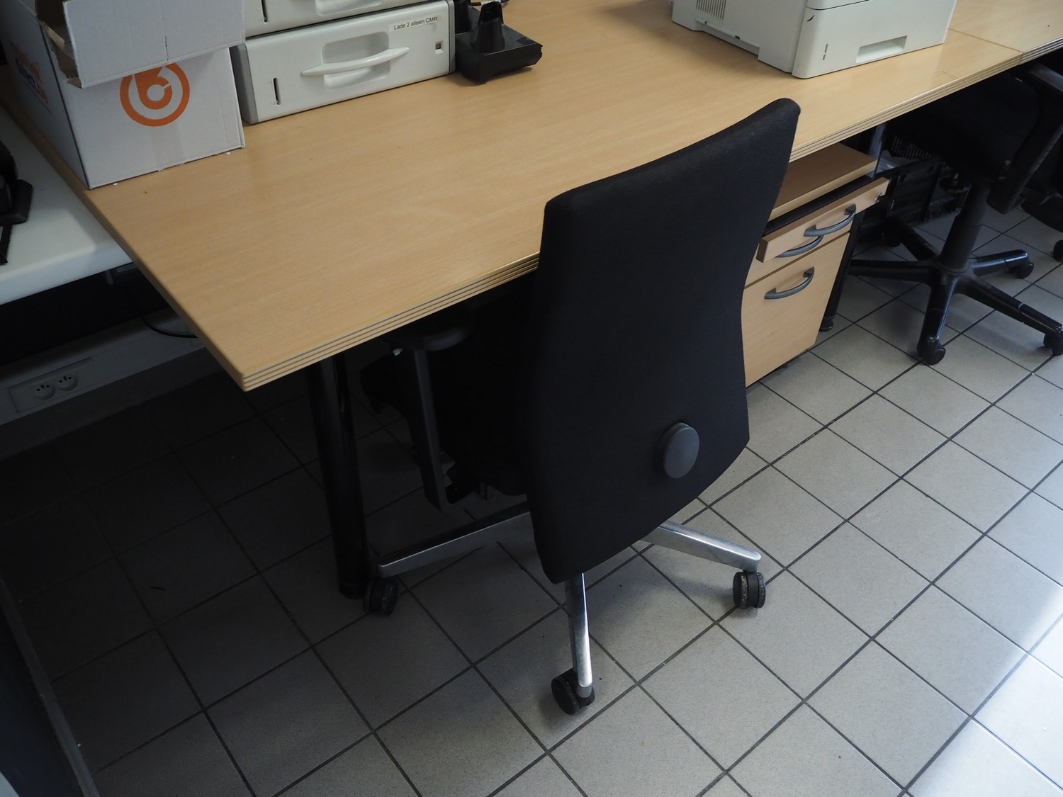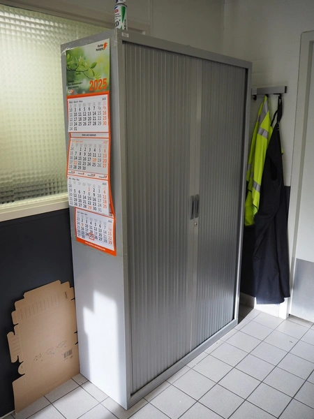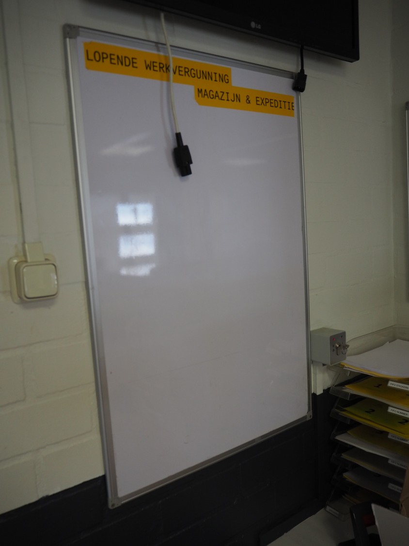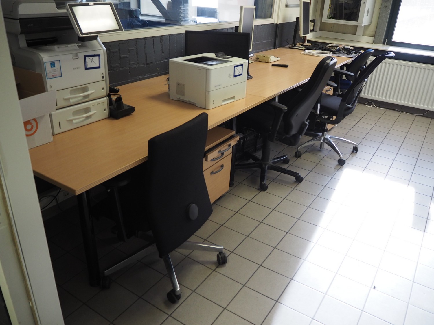 Office inventory consisting of: 3 office desks, dimensions: 1000 mm x 1580 mm x 790 mm, 2 drawers, dimensions: (2x) 900 mm x 4010 mm x 500 mm, steel cabinet, dimensions: 1200 mm x 950 mm x 21050 mm, 4 chairs, white board. Computer equipment is not included.