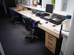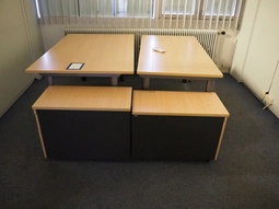 Office inventory consisting of: 4 desks, dimensions: (2x) 2300 mm x 1300 mm x 770 mm, (2x) 1750 mm x 950 mm x 770 mm, 5 cabinets, d…0 bidsLot is closed -