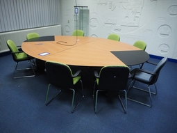 Office inventory consisting of: table, dimensions: 3200 mm x 2400 mm x 760 mm, 8 chairs, dimensions: (8x) 600 mm x 500 mm x 900 mm,…1 bidLot is closed -