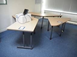 Office inventory consisting of: 4 desks, dimensions: (2x) 1600 mm x 800 mm x 740 mm, 2450 mm x 1500 mm x 740 mm, 1600 mm x 1000 mm…0 bidsLot is closed -