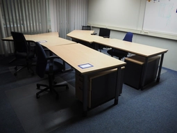 Office inventory consisting of: 2 desks, dimensions: 2800 mm x 2000 mm x 740, 1600 mm x 800 mm x 750 mm, 4 chairs, dimensions (4x) …0 bidsLot is closed -