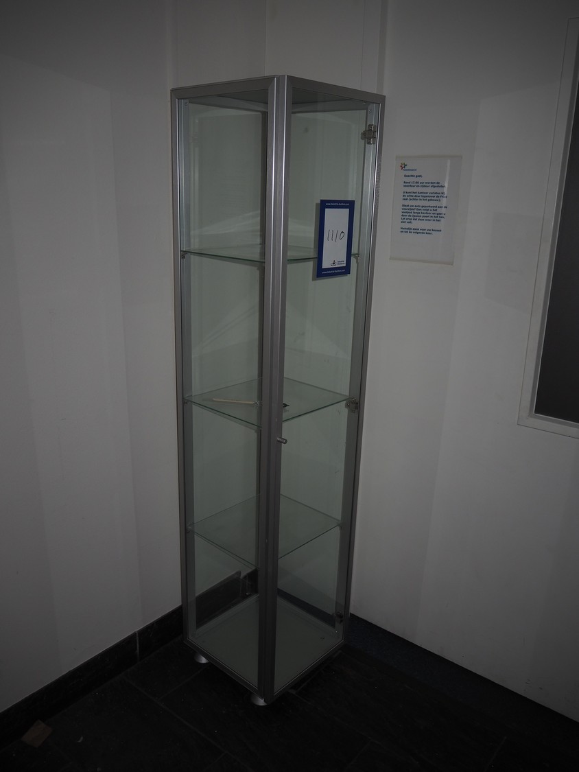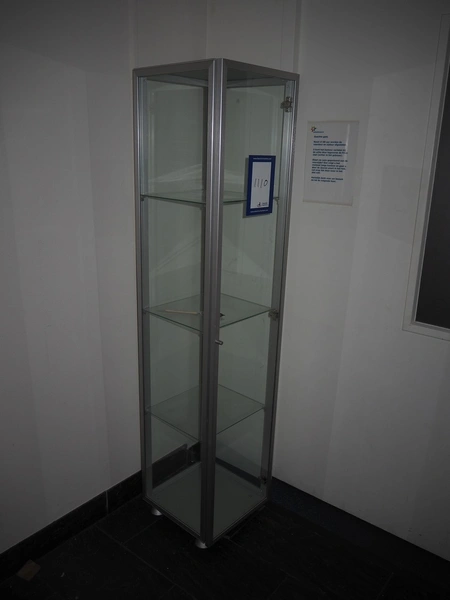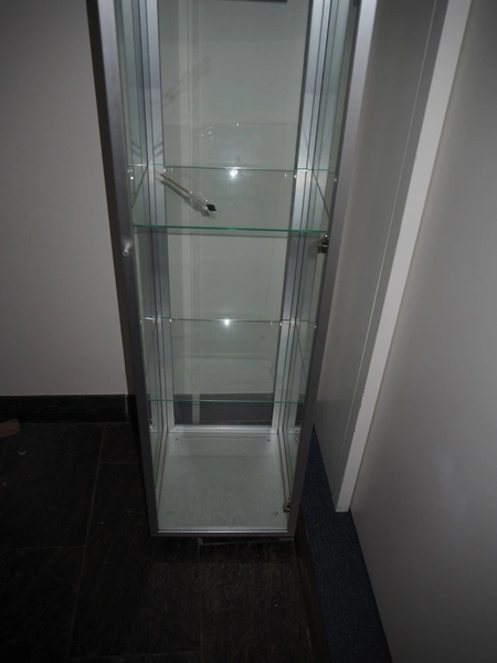 Glass cabinet, dimensions: 400 mm x 400 mm x 1800 mm.