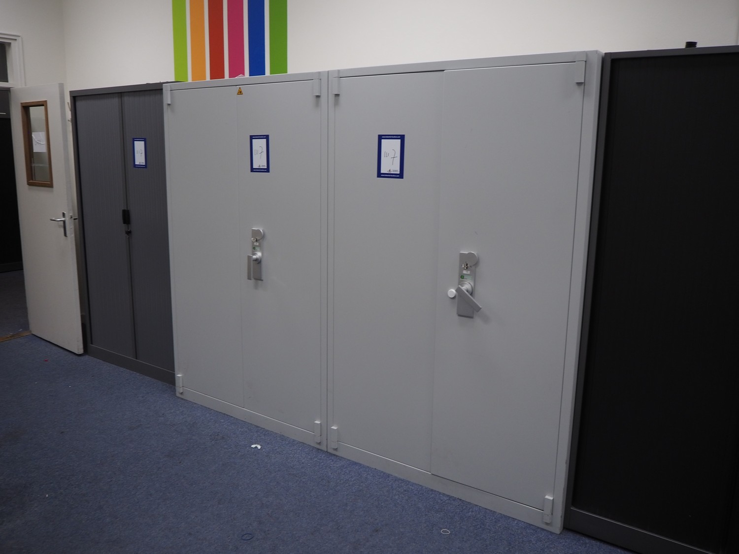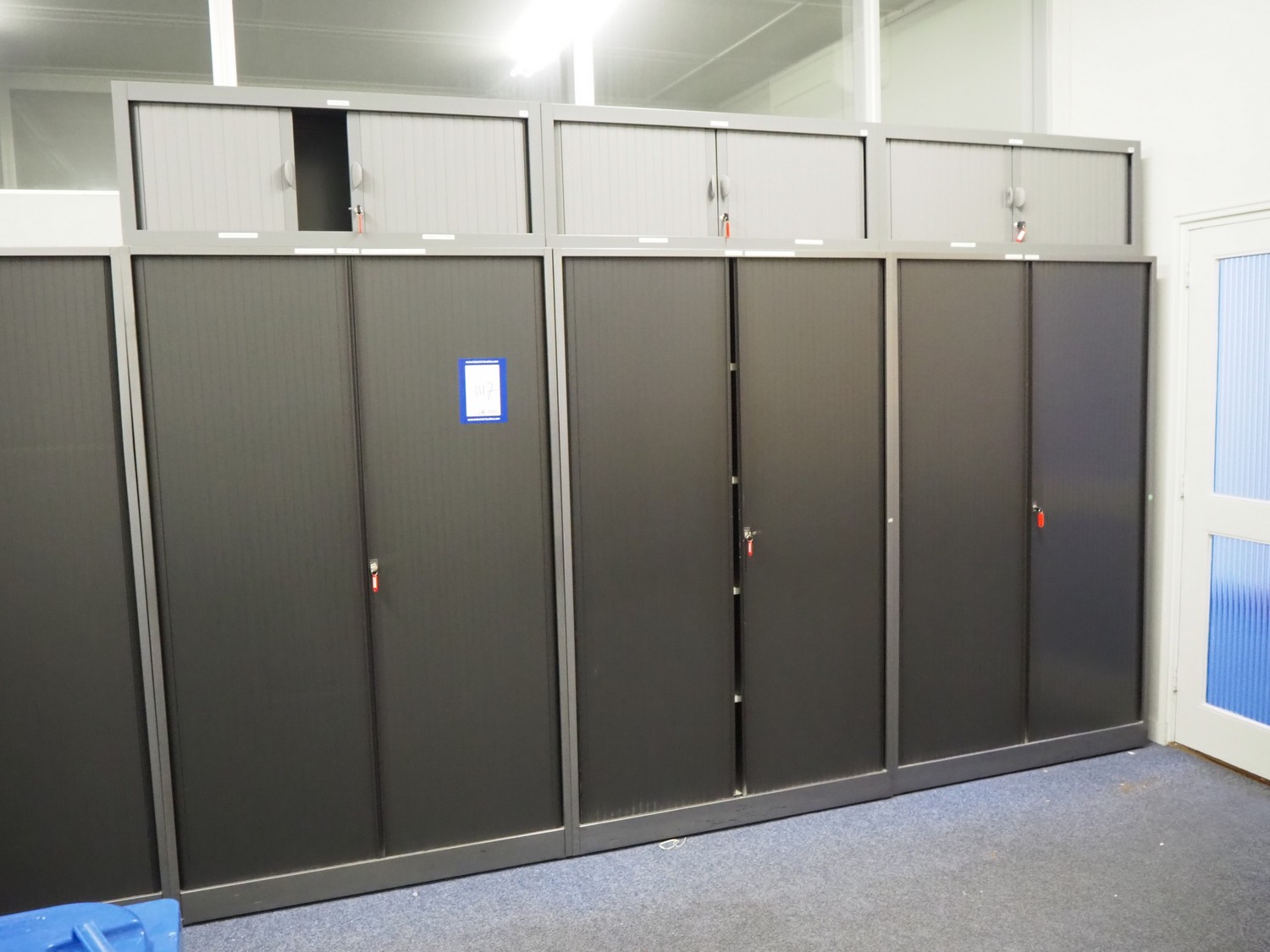 Office inventory consisting of 10 cabinets, dimensions: (5x) 1250 mm x 450 mm x 1950 mm, (3x) 1200 mm x 450 mm x 450 mm, 1210 mm x 450 mm x 710 mm, 1200 mm x 450 mm x 1100 mm. Without computer equipment.