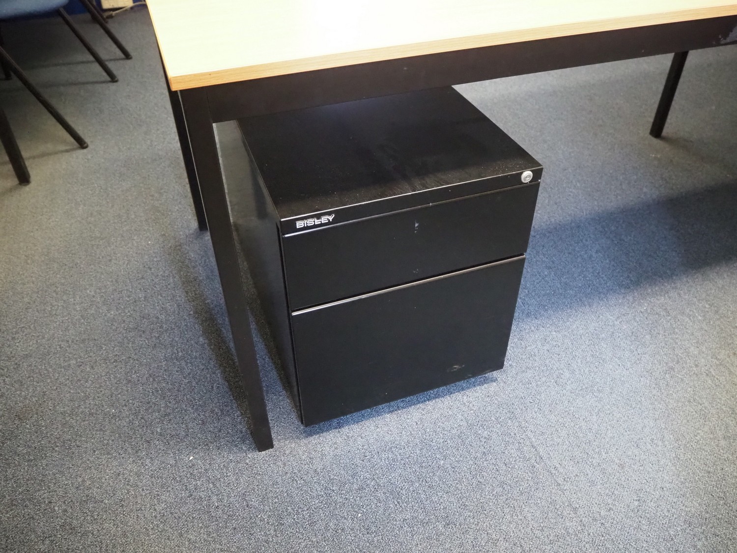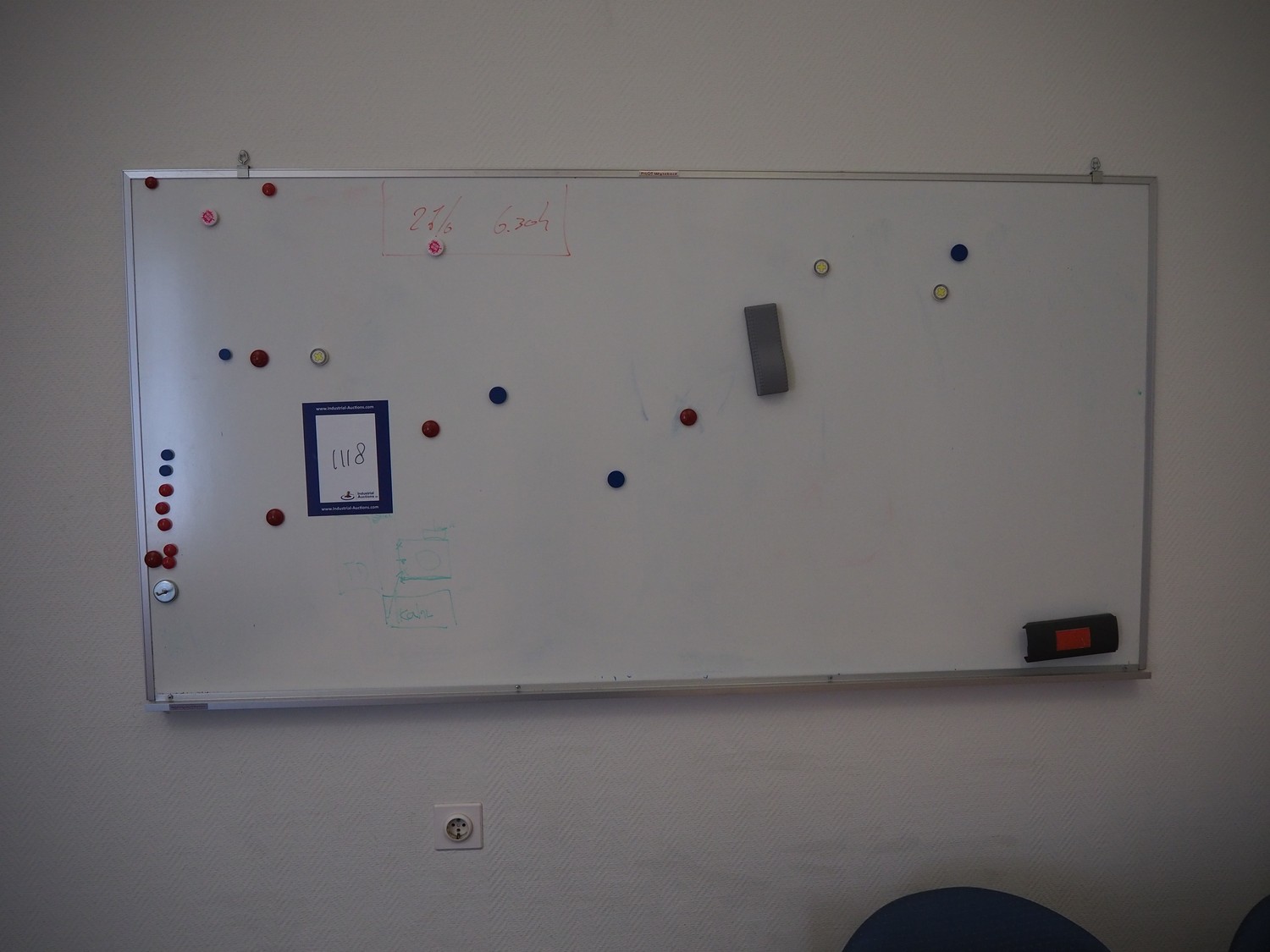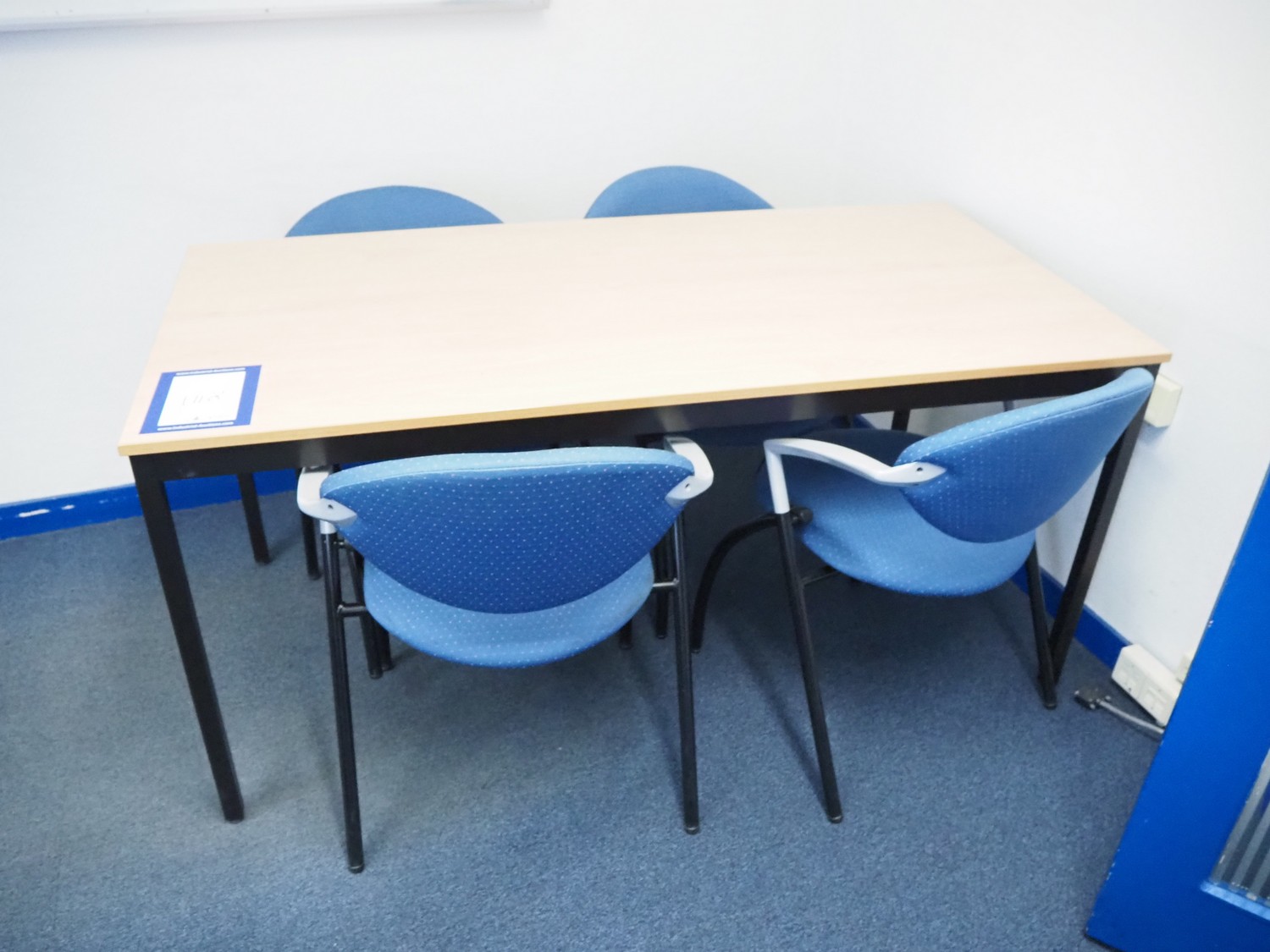 Office inventory consisting of: 2 desks, dimensions: 2800 mm x 2000 mm x 740, 1600 mm x 800 mm x 750 mm, 4 chairs, dimensions (4x) 600 mm x 600 mm x 800 mm, cabinet, dimensions: 1200 mm x 450 mm x 1950 mm, white board. Without computer equipment.