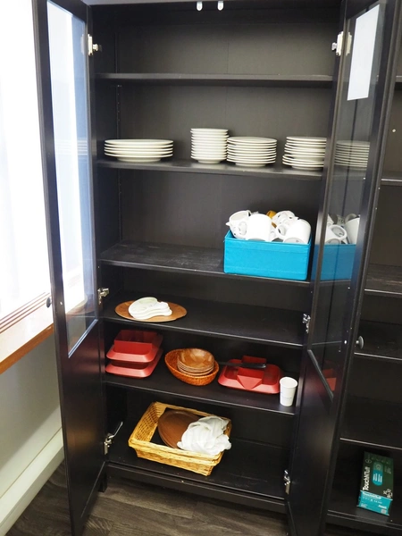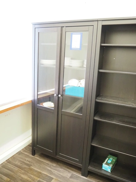 2 wooden cabinets, dimensions: (2x) 890 mm x 340 mm x 1980 mm.