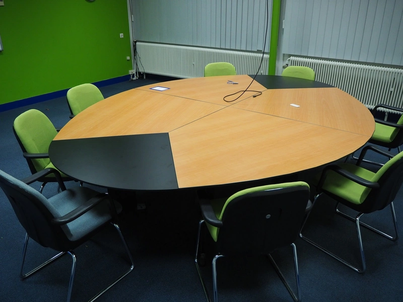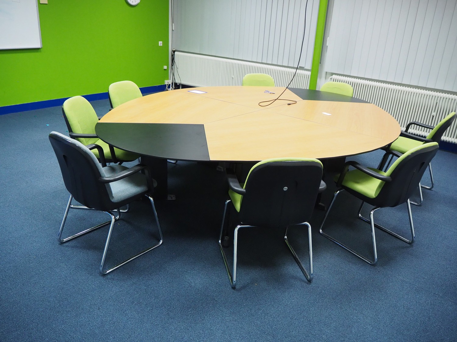 Office inventory consisting of: table, dimensions: 3200 mm x 2400 mm x 760 mm, 8 chairs, dimensions: (8x) 600 mm x 500 mm x 900 mm, 2 cabinets, dimensions: 1200 mm, 440 mm x 1600 mm, 430 mm x 370 mm x 1640 mm, 2 white boards. Without computer equipment.