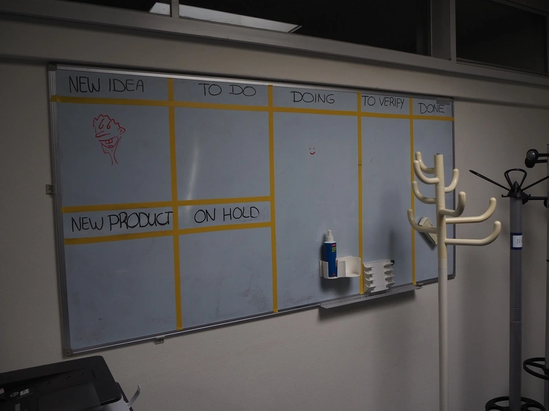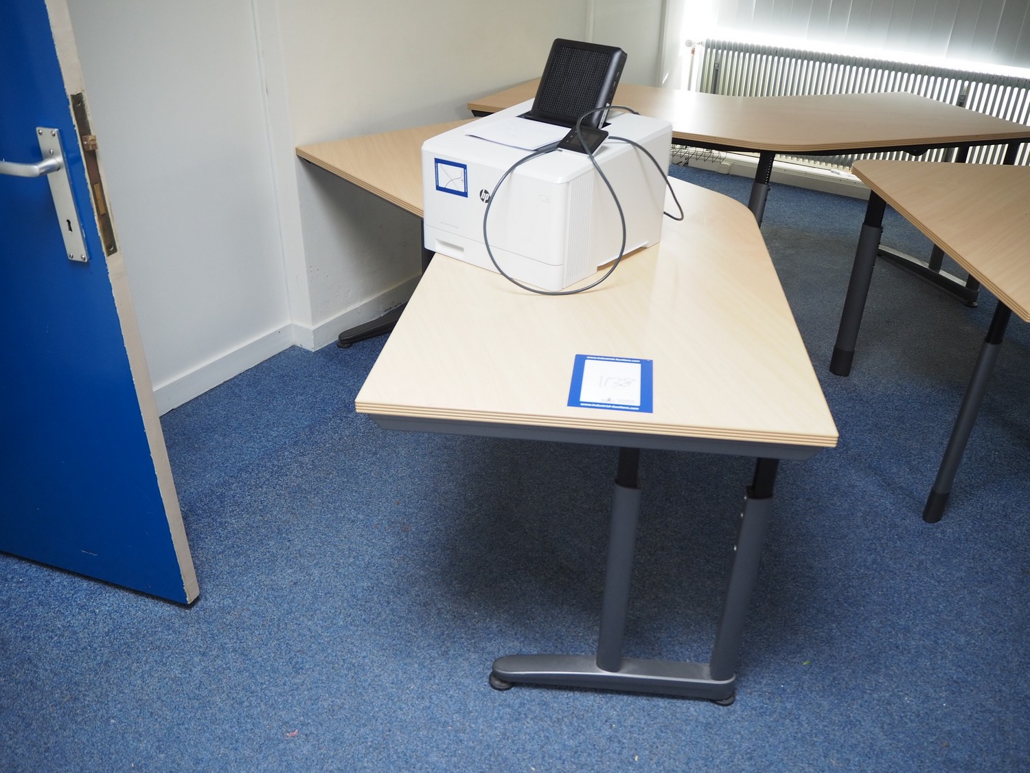 Office inventory consisting of: 4 desks, dimensions: (2x) 2300 mm x 1300 mm x 770 mm, (2x) 1750 mm x 950 mm x 770 mm, 5 cabinets, dimensions: (3x) 800 mm x 420 mm x 600 mm, (2x) 1200 mm x 440 mm x 2000 mm, 2 white boards. Without computer equipment.