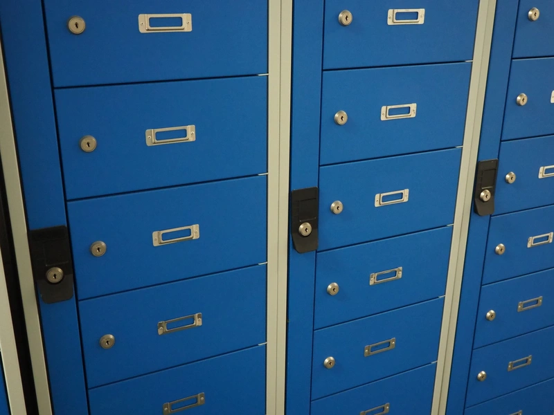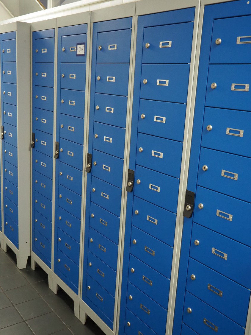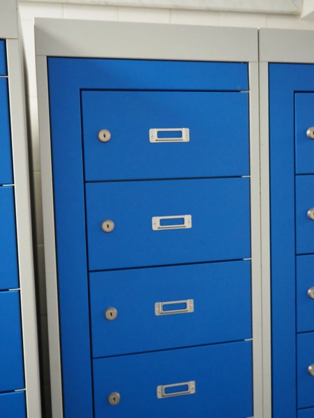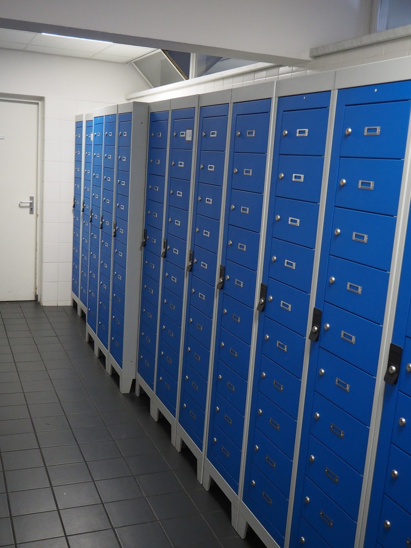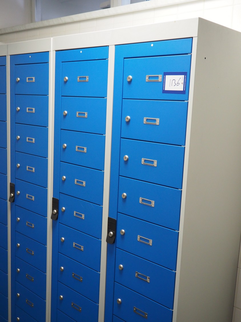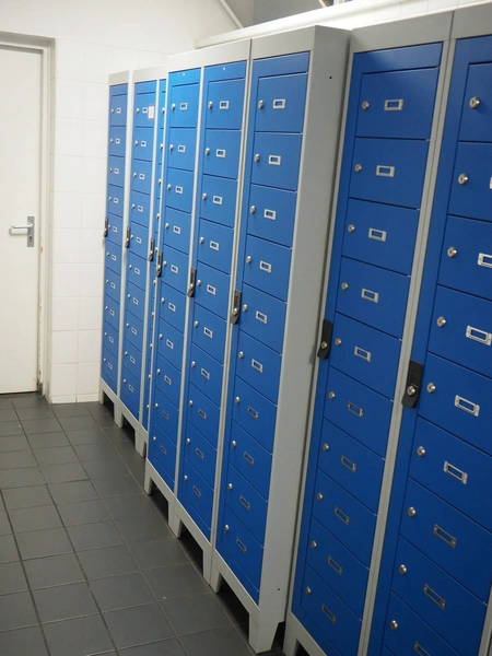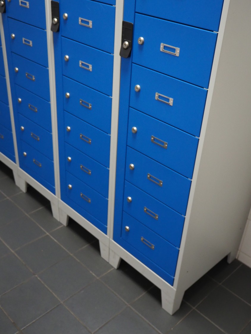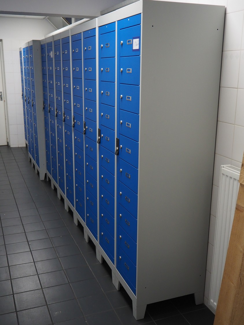 14 steel lockers, dimensions: (14x) 400 mm x 500 mm x 1900 mm.