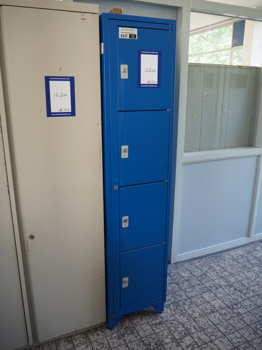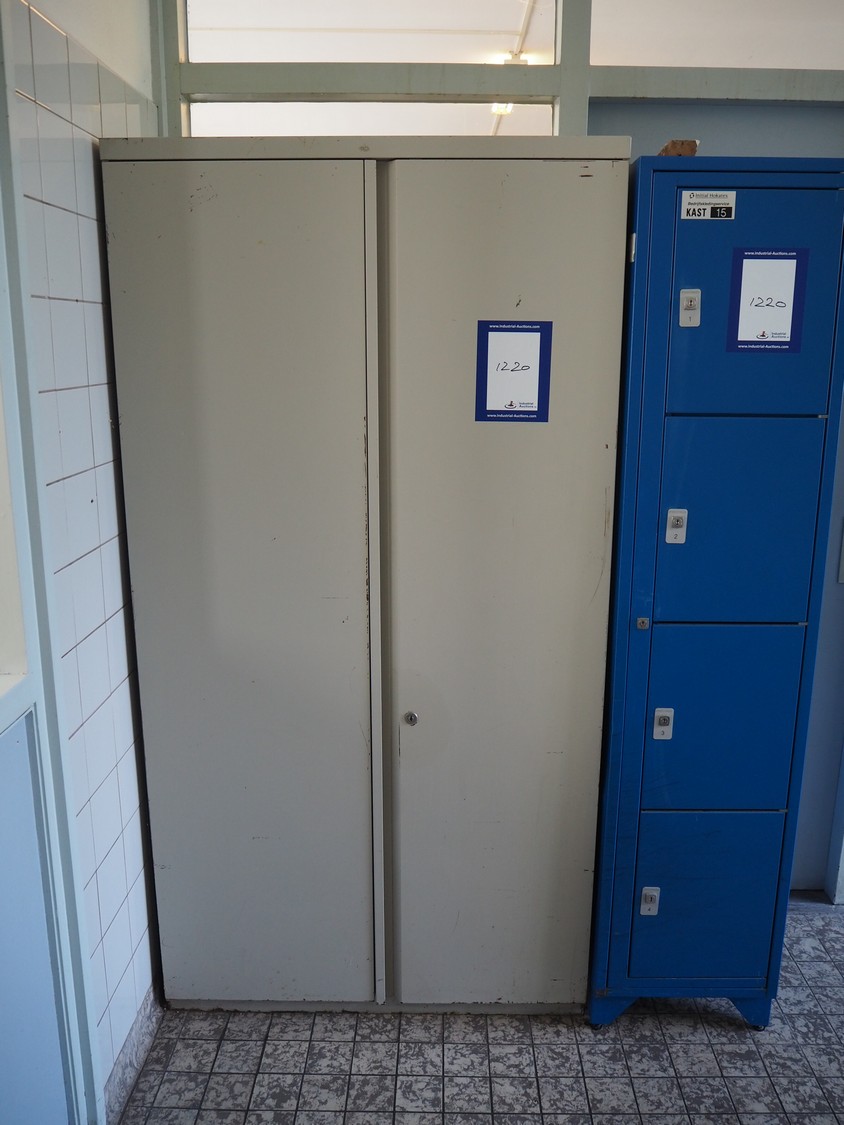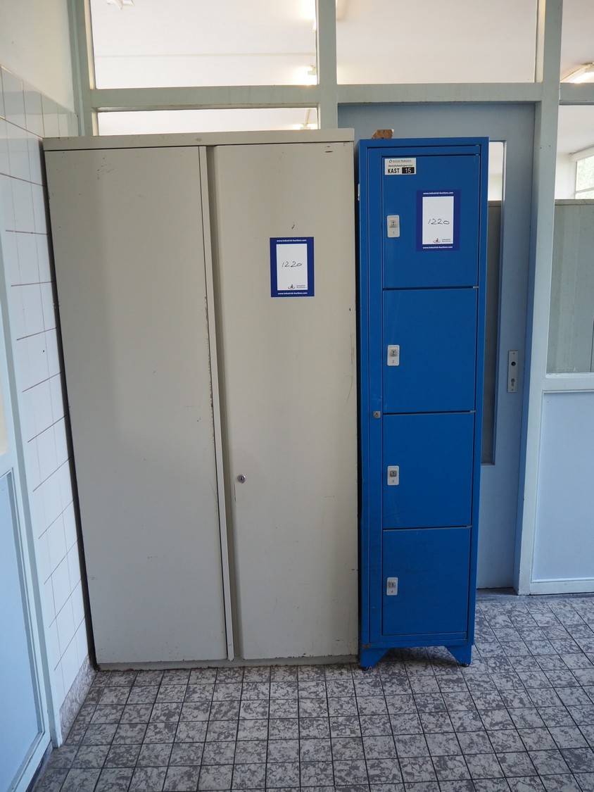 Steel cabinet and steel locker, cabinet dimensions: 1000 mm x 450 mm x 1950 mm, locker dimensions: 420 mm x 500 mm x 1900 mm.