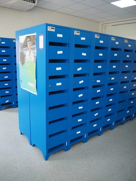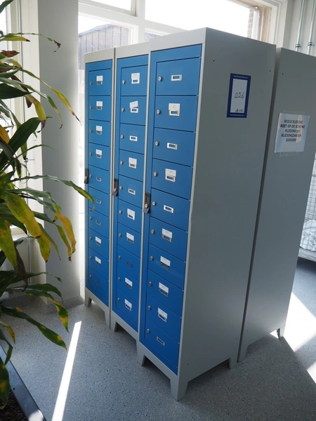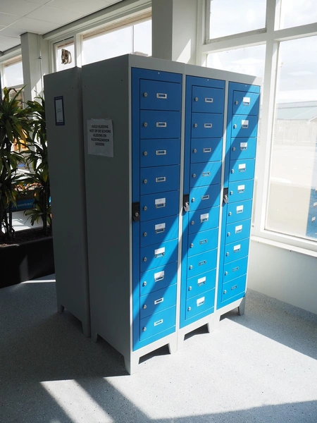 30 steel clothing cabinets, clearance: 300 mm x 500 mm x 40 mm, total dimensions: (30x) 420 mm x 500 mm x 1900 mm, 6 lockers, locker dimensions: (6x) 400 mm x 500 mm x 1900 mm.