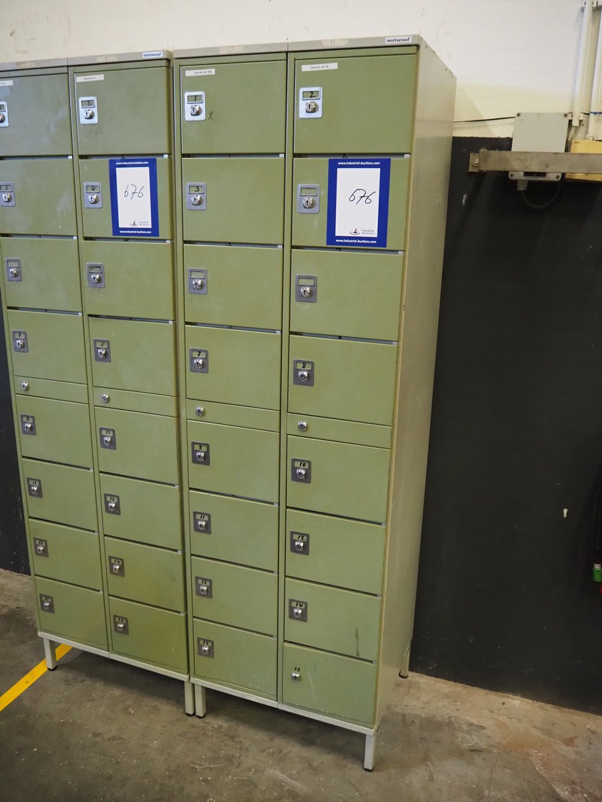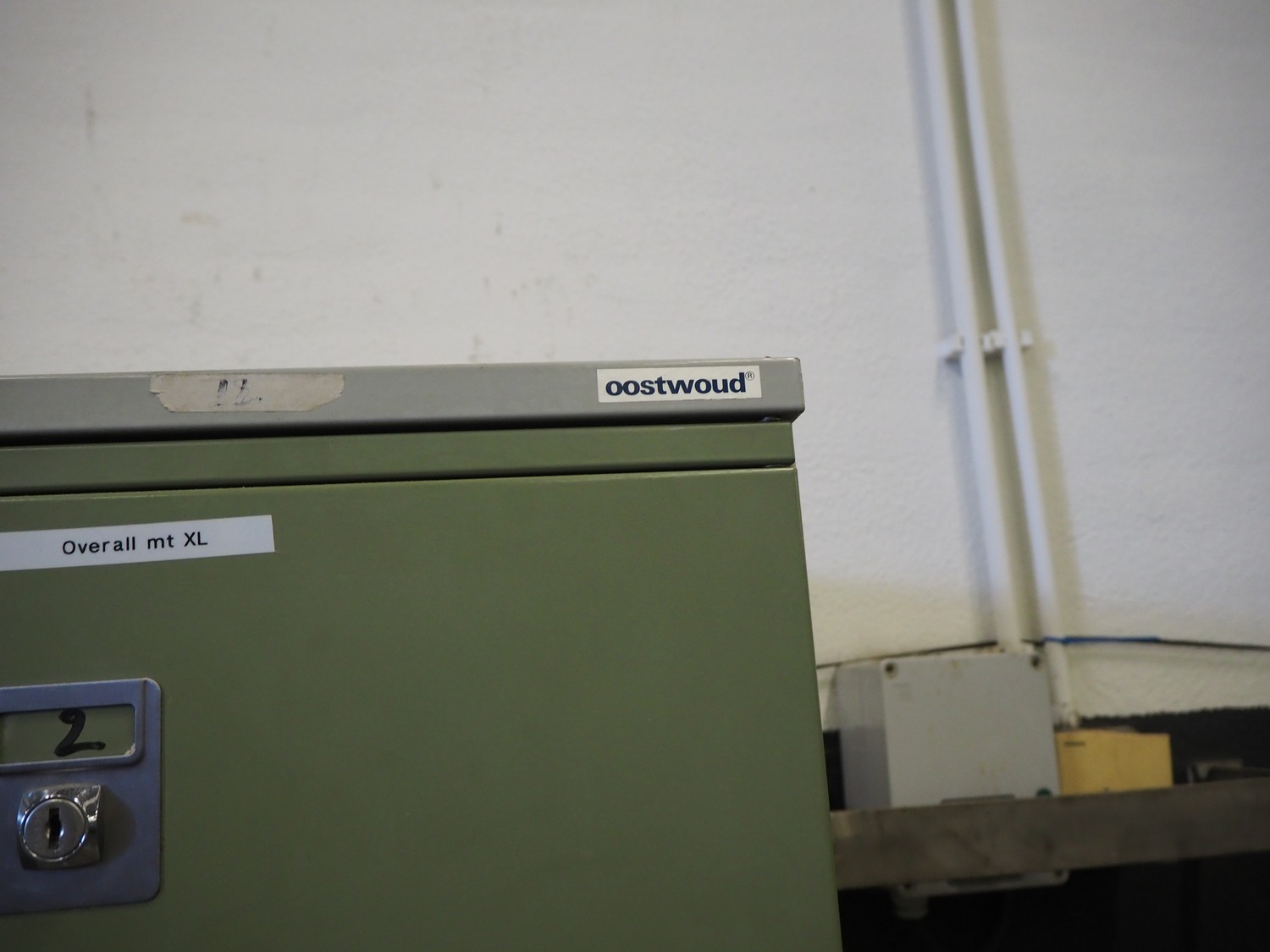 2 steel Oostwoud 16-doors lockers, dimensions: (2x) 600 mm x 500 mm x 1950 mm.