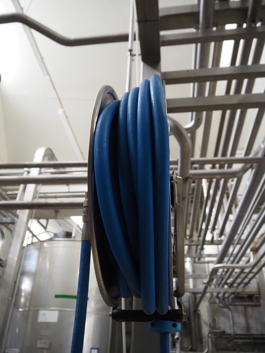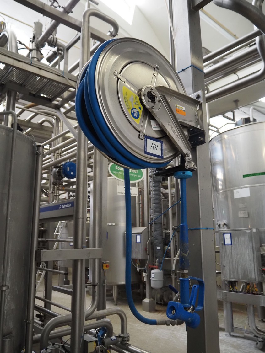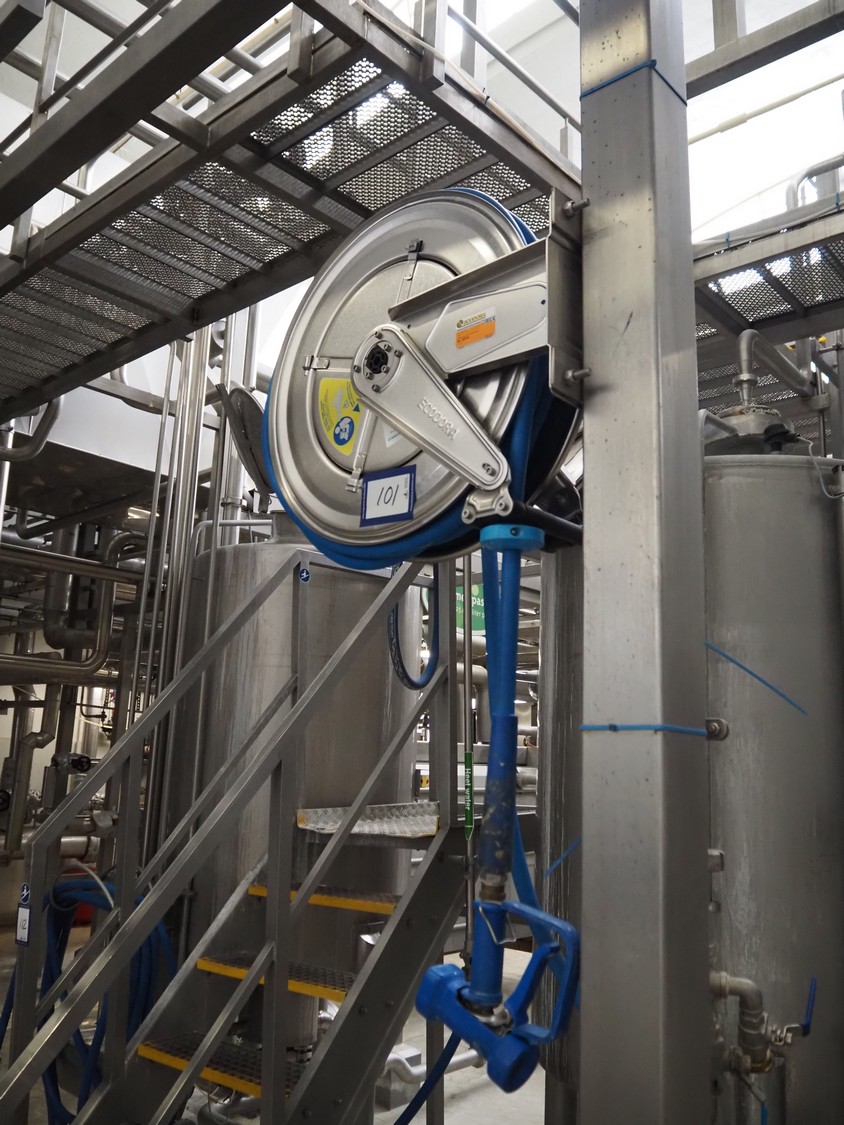 Ecodora s/s hose reel with plastic hose and spray pistol, model: 532, dimensions: 650 mm x 250 mm x 500 mm.