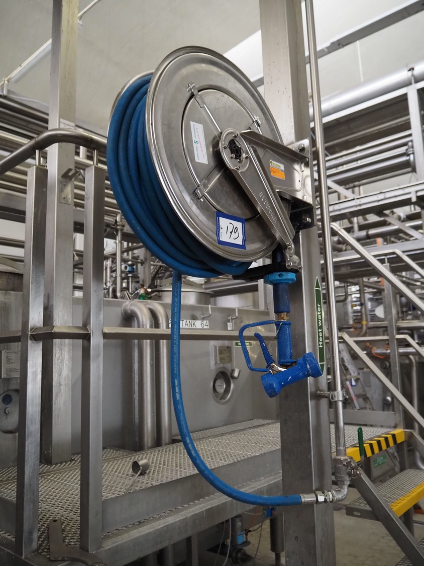 Ecodora S.r.l. s/s hose reel with plastic hose and spray pistol, model: 532, dimensions: 550 mm x 250 mm x 500 mm.