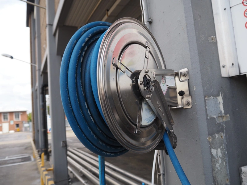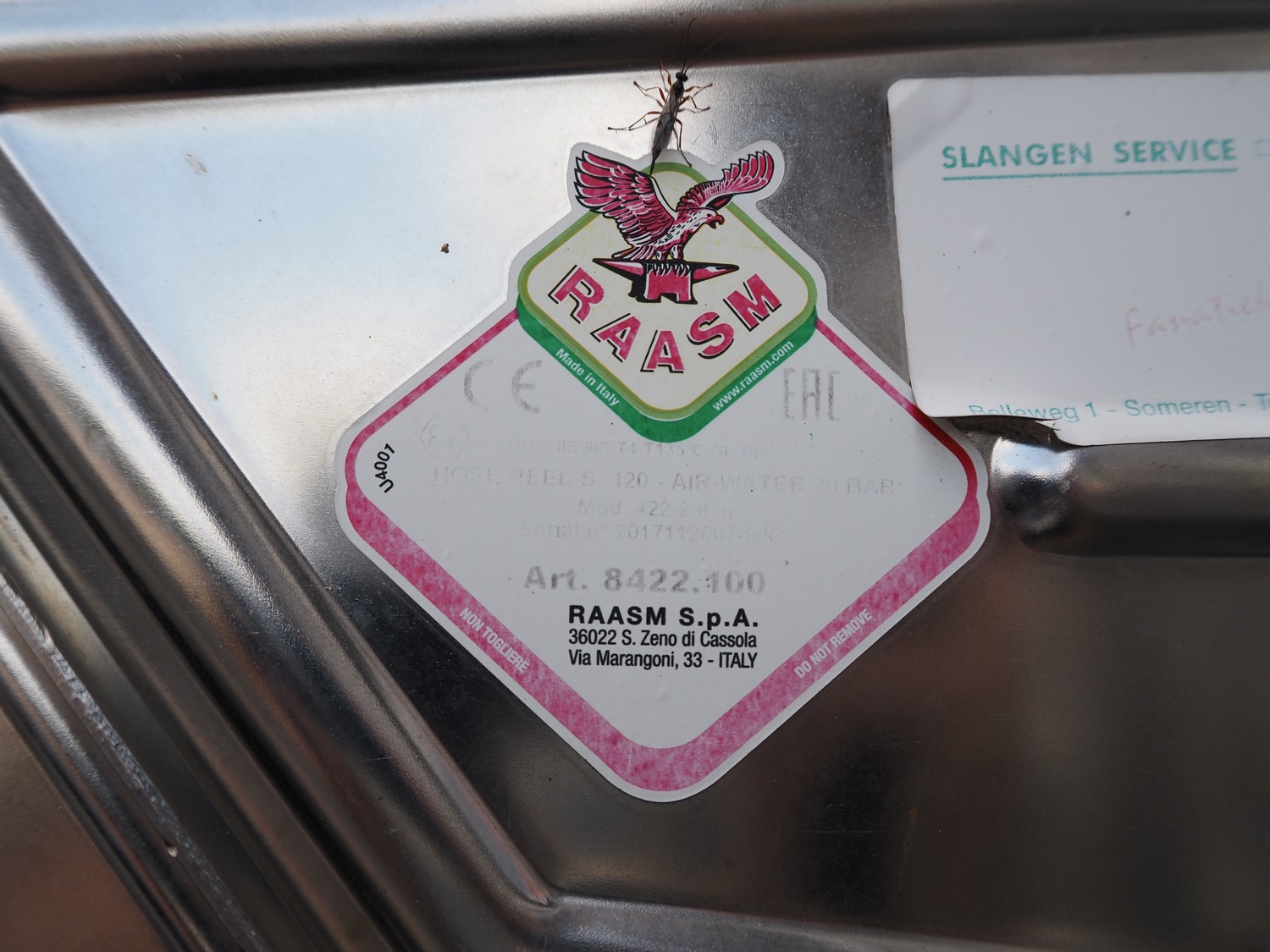 Raasm S.p.A. s/s hose reel with plastic hose, model: S420, dimensions: 560 mm x 300 mm x 500 mm.