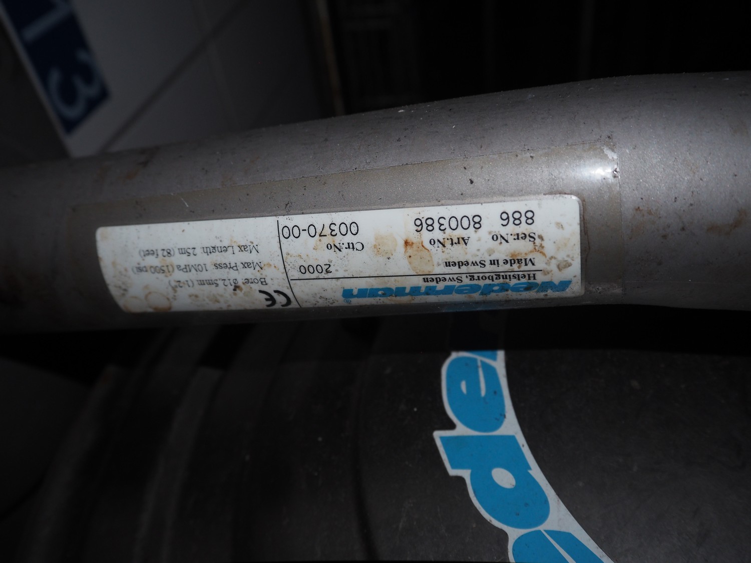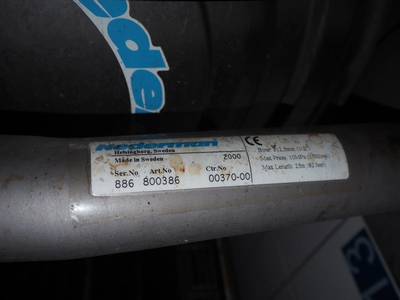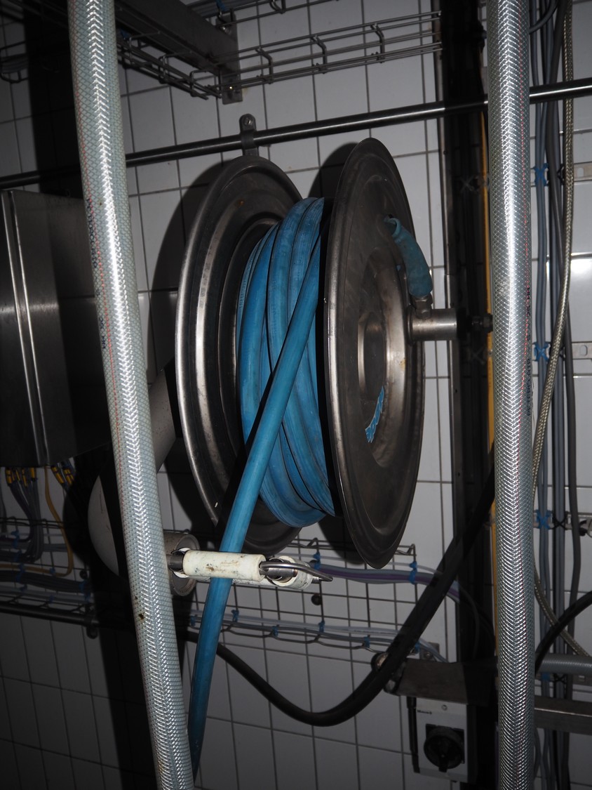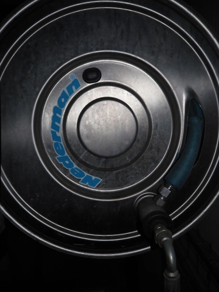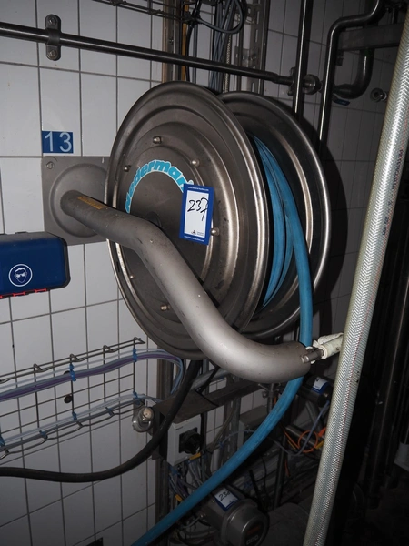 Nederman s/s hose reel with plastic hose, serial number: 886, year of construction: 2000, dimensions: 750 mm x 400 mm x 600 mm.