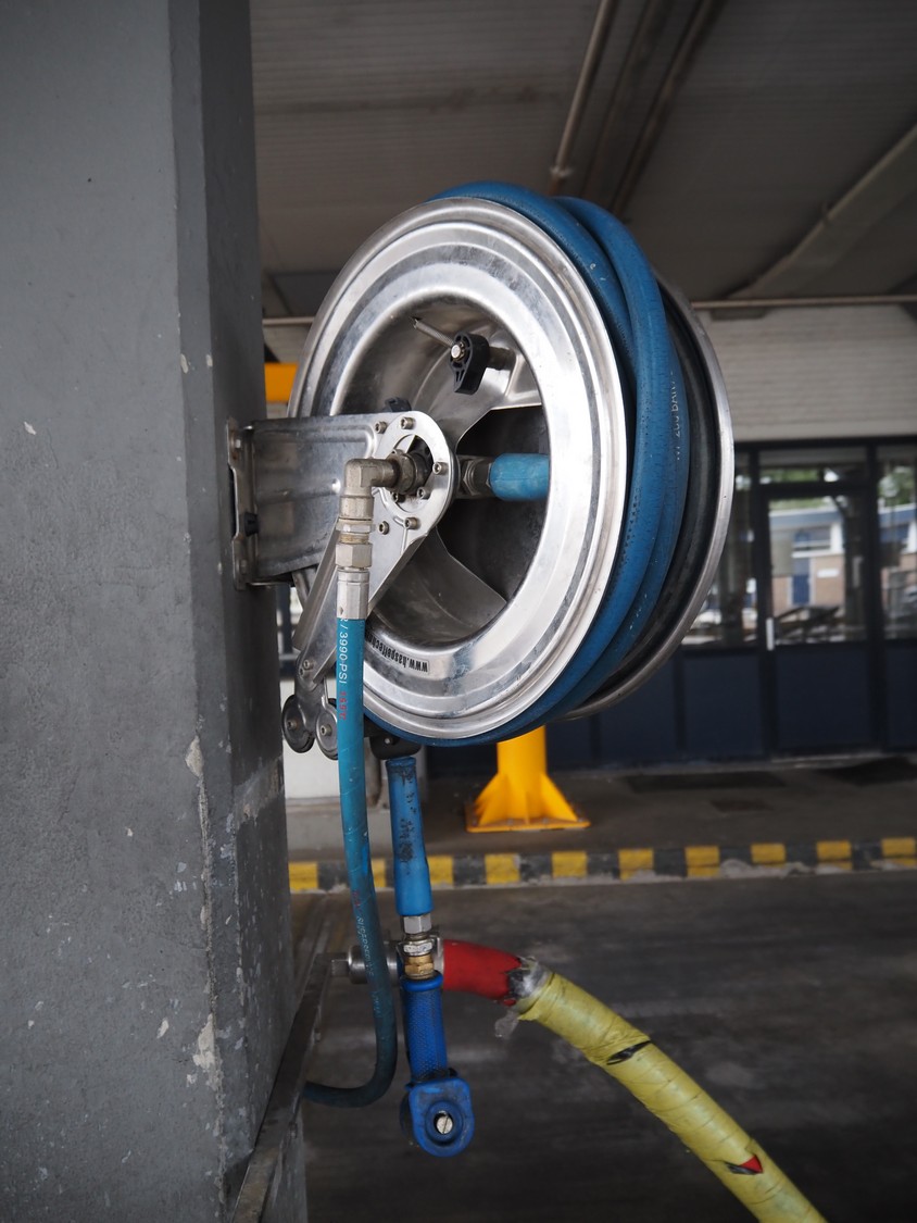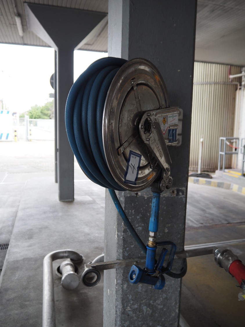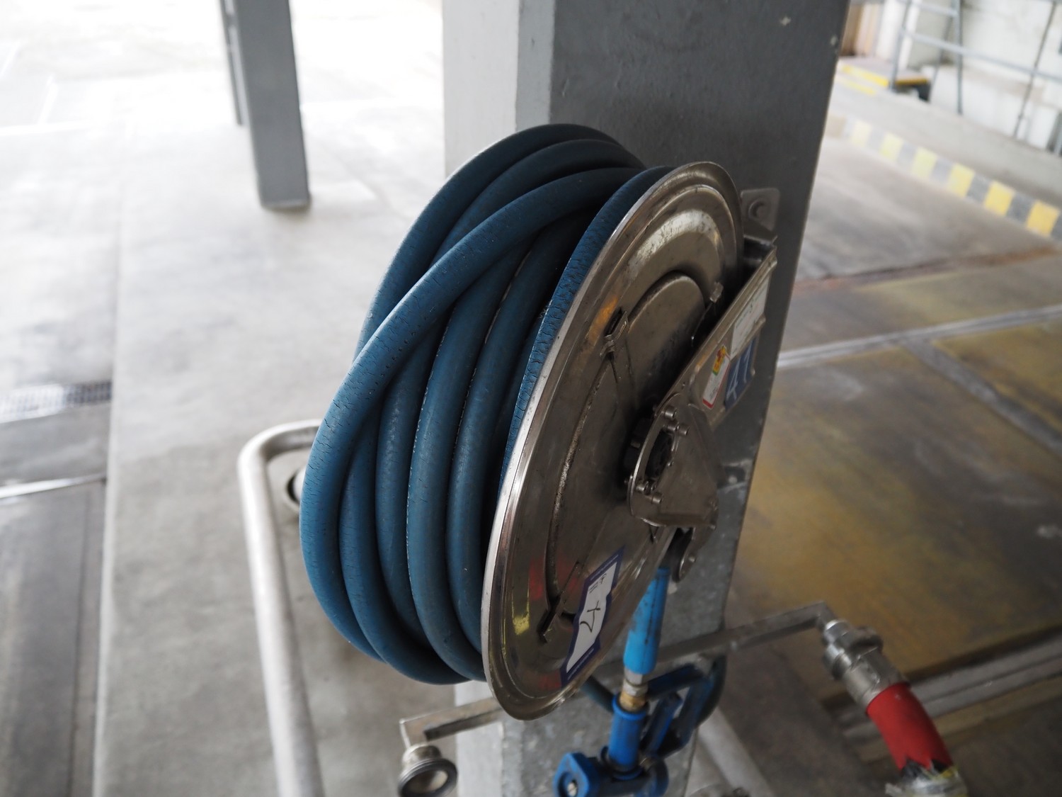 Raasm S.p.A. s/s hose reel with plastic hose and spray pistol, model: S420, serial number: 2017112007-0002, dimensions: 560 mm x 300 mm x 500 mm.