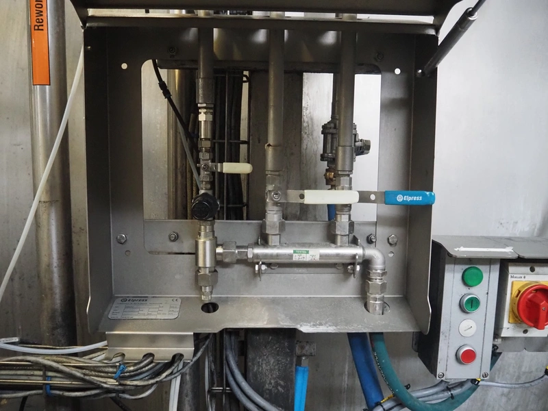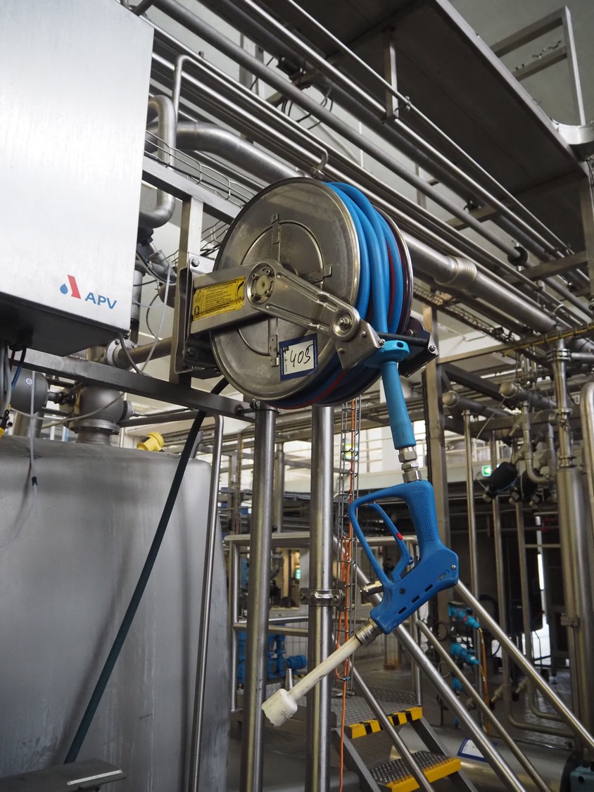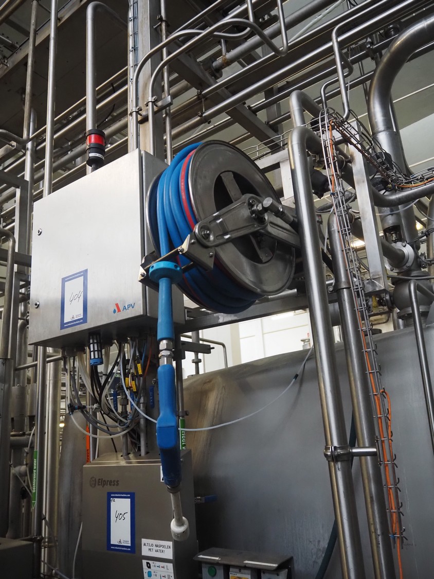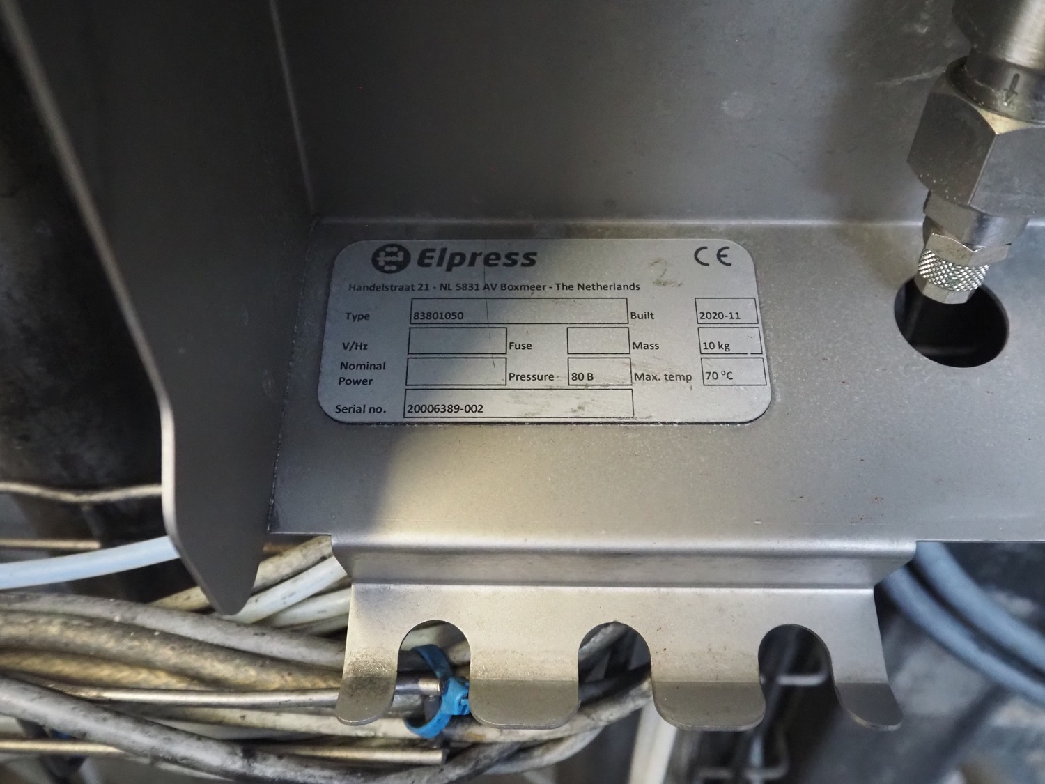 Elpress s/s hose reel with soap mixing station, type soap mixing station: 83801050, serial number: 20006389-002, year of construction: 11/2020, dimensions: 470 mm x 130 mm x 470 mm, hose reel dimensions: 650 mm x 250 mm x 500 mm.