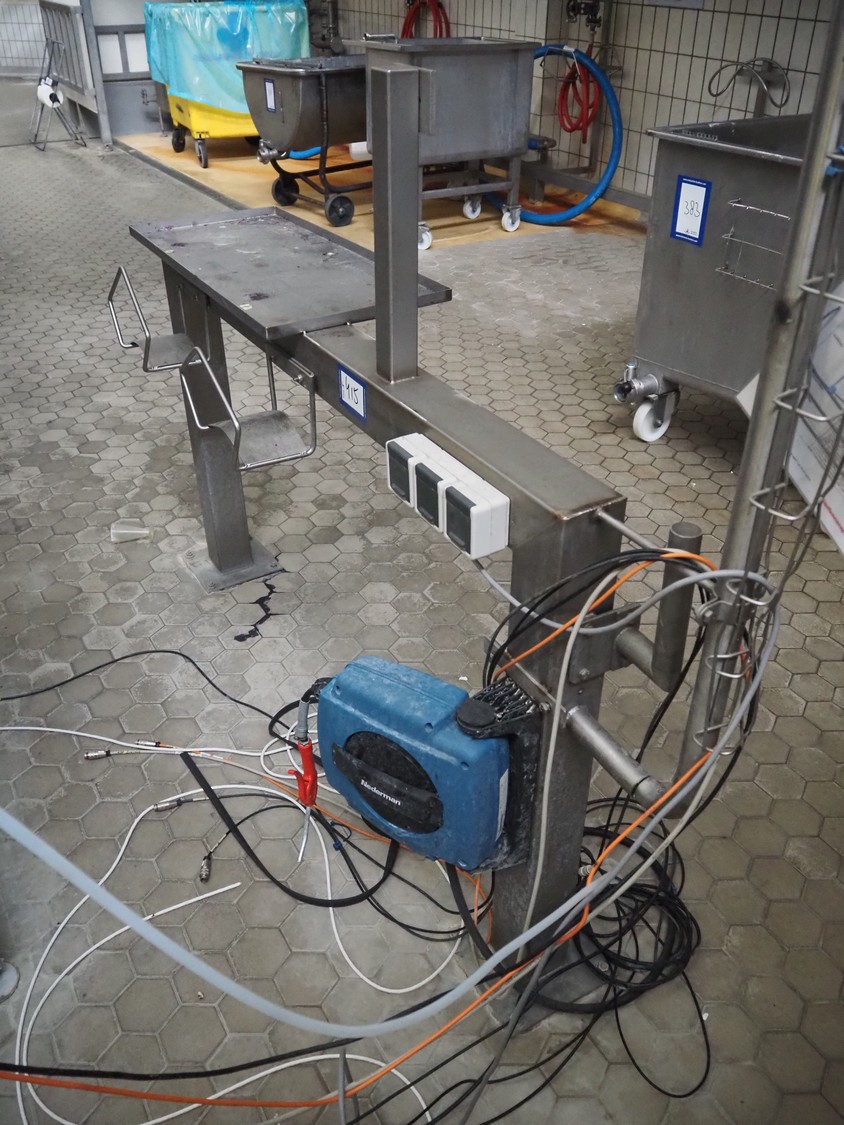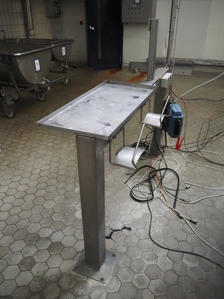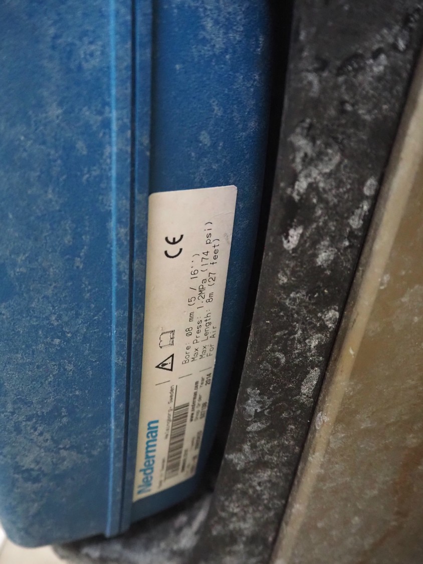 S/s frame with Nederman air hose reel, dimensions: 1750 mm x 500 mm x 1400 mm.