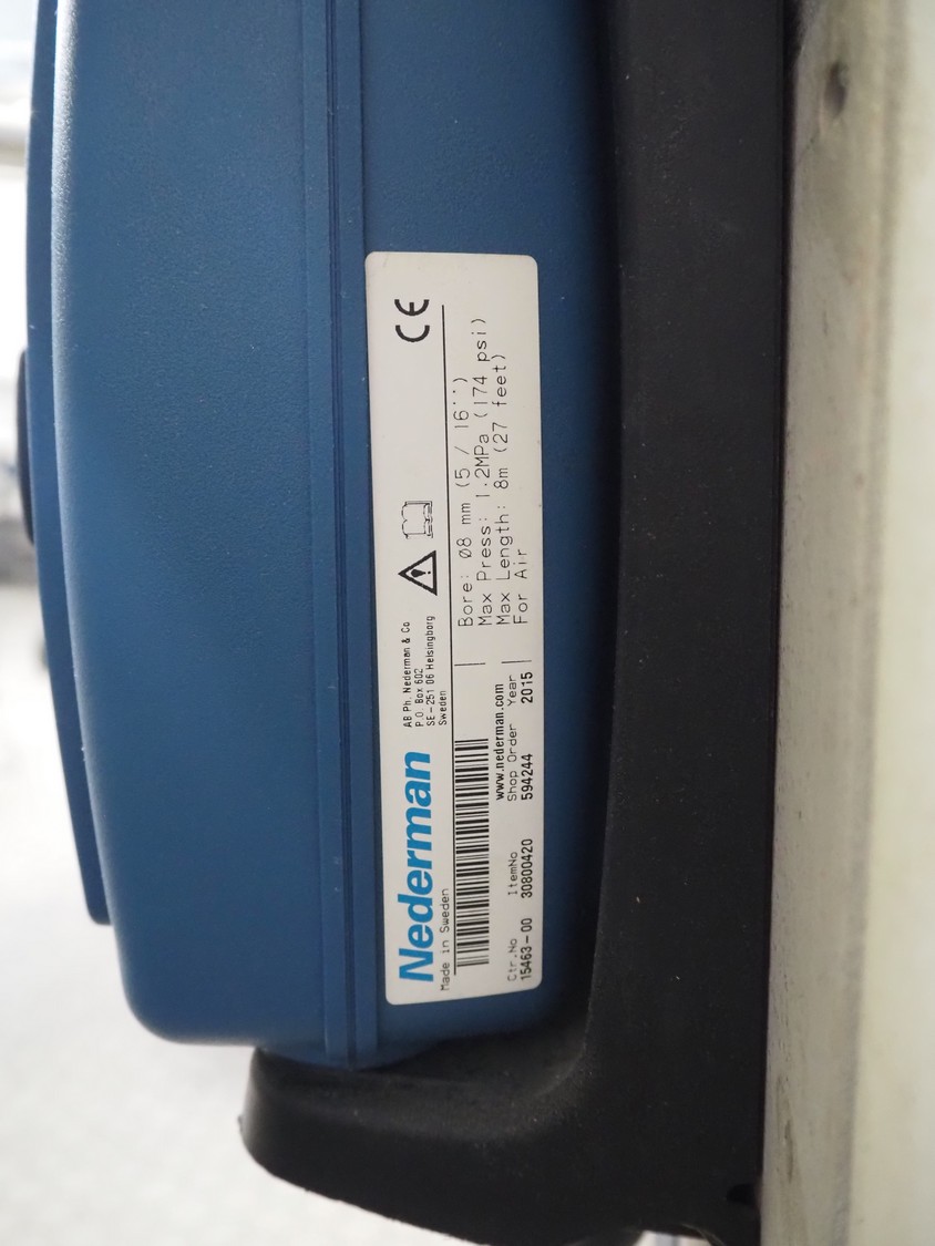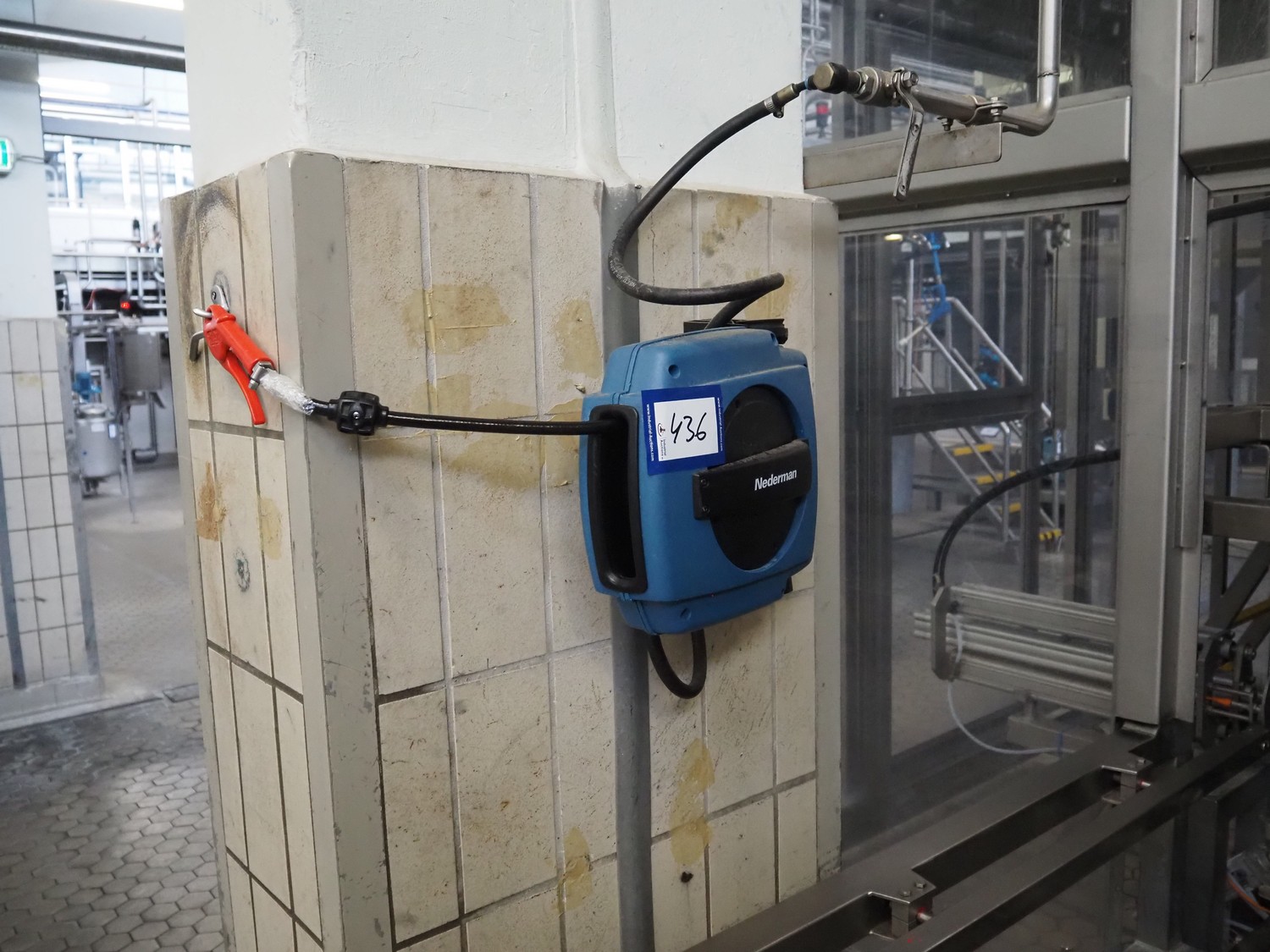 Nederman hose reel with plastic air hose and pistol, dimensions: 370 mm x 180 mm x 320 mm.