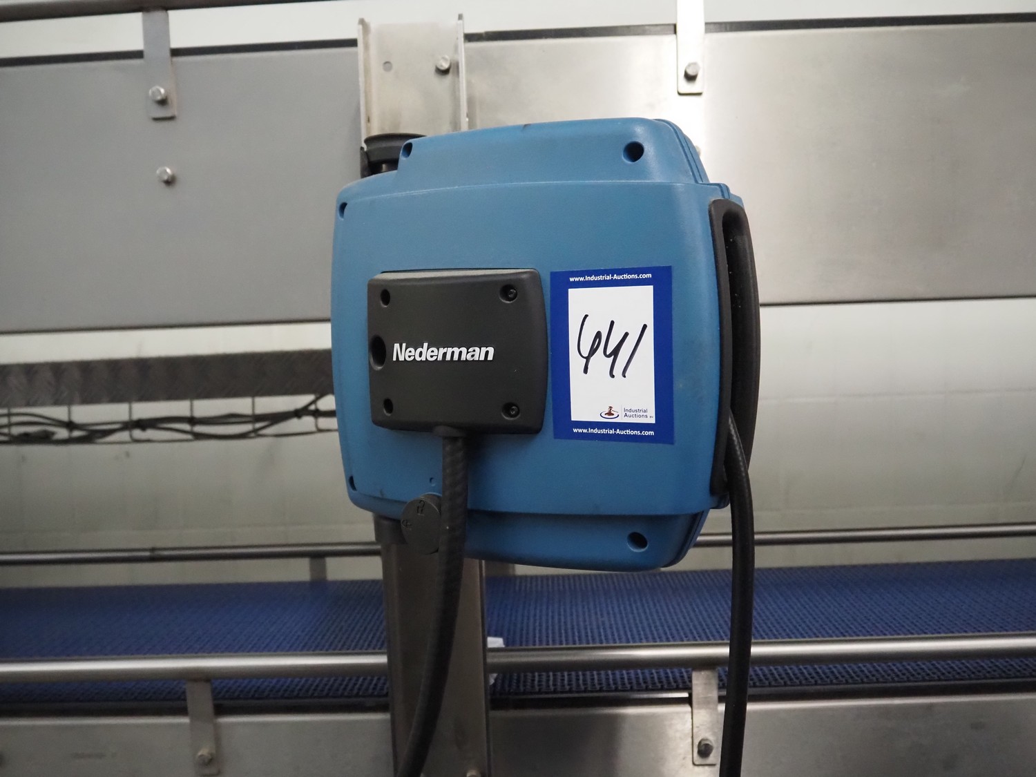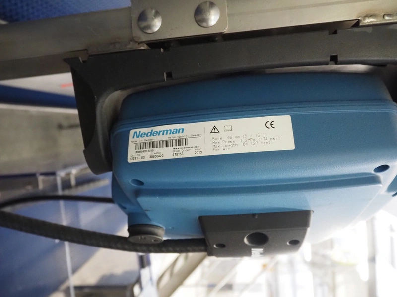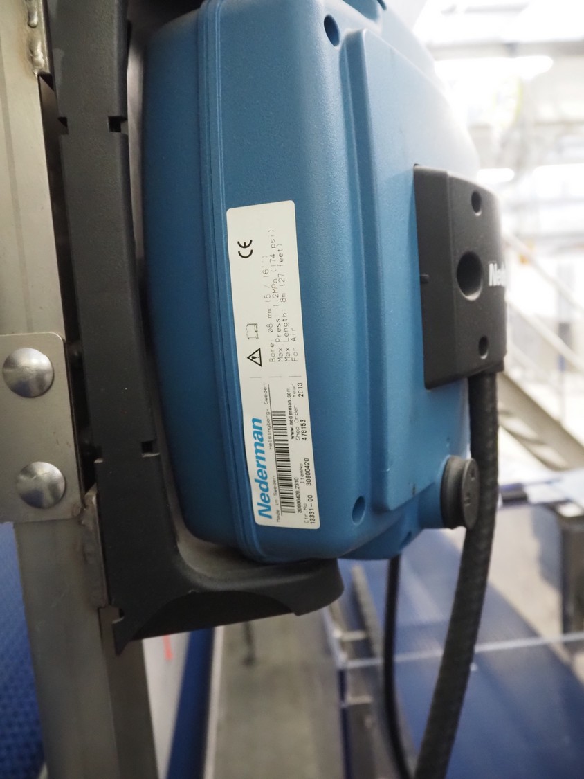Nederman hose reel with plastic air hose and pistol, dimensions: 370 mm x 180 mm x 320 mm.