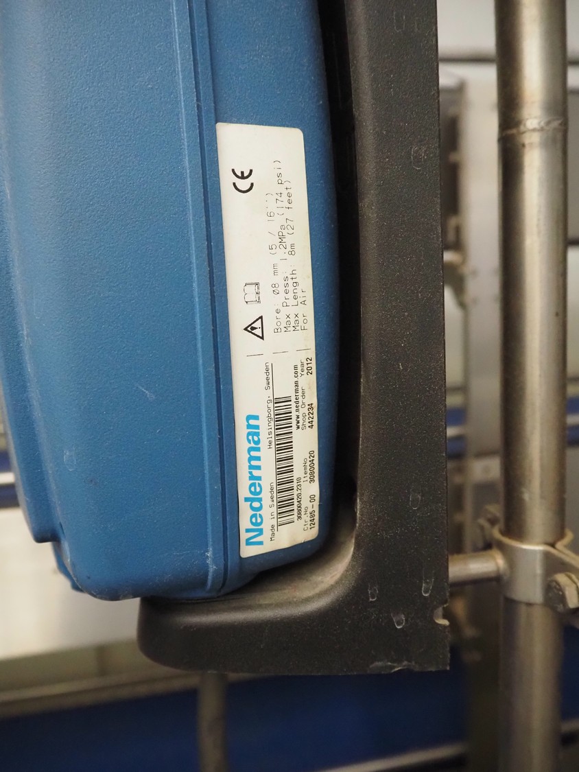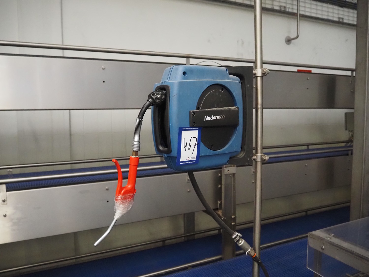 Nederman hose reel with plastic air hose and pistol, dimensions: 370 mm x 180 mm x 320 mm.